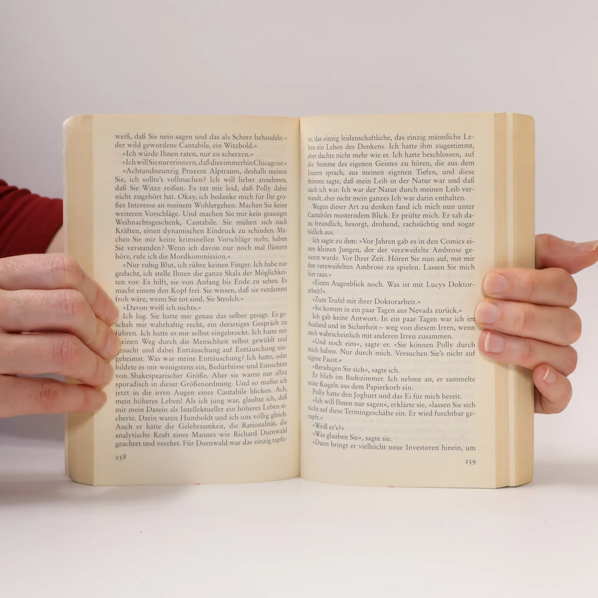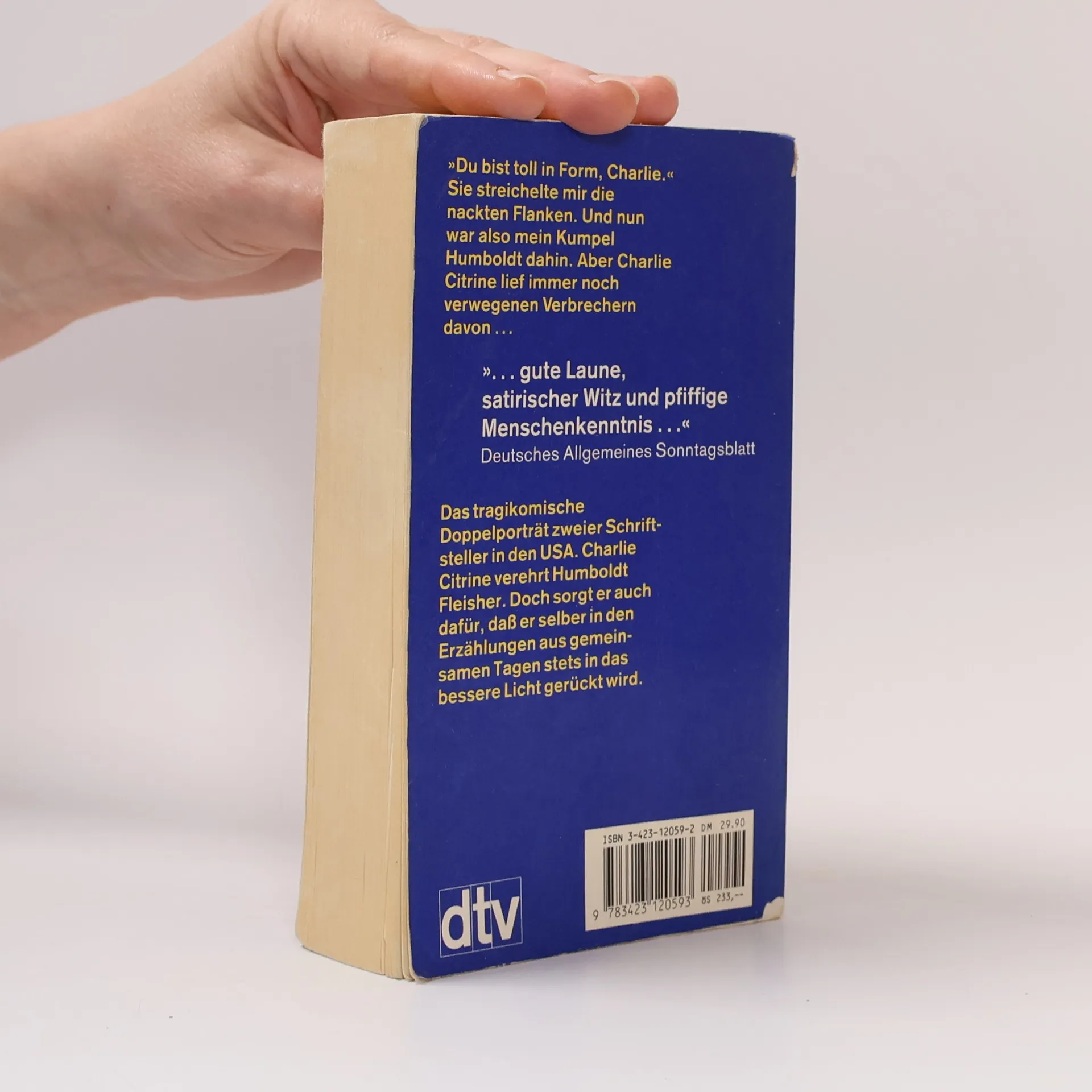 . gute Laune, satirische Witz und pfiffige Menschenkenntnis. Deutsches Allgemeines Sonntagsblatt Ich habe, ein einziges Mal, Humboldts Mutter in ihrer dunklen Wohnung in der West End Avenue gesehen. Ihr Gesicht glich dem ihres Sohnes. Sie war stumm, dick, hatte breite Lippen und war in einen Bademantel geschnürt. Ihr Haar war weiß, buschig, im Fidschi-Stil. Humboldt war bedrückt, als wir das Haus verließen, und sagte: Sie ließ mich früher nach Chicago fahren, aber dort sollte ich meinem alten Herrn nachspionieren, Bankauszüge und Kontonummern kopieren und die Namen seiner Nutten aufschreiben. Sie wollte ihn verklagen. Sie ist verrückt, verstehst du? Aber dann hat er in der großen Krise alles verloren. Ist unten in Florida an Herzschlag gestorben. Jahre nach seinem Tod wird Humboldt Fleisher in der Erinnerung des erzählenden Citrine erneut befragt, zum Leben erweckt, bewundert, bezweifelt und neu begraben. Die Verflechtung beider Lebenswege, die Darstellung ihrer Beziehung zur erfolgbesessenen amerikanischen Gesellschaft, der Neid des Älteren auf den Jüngeren, Ehegeschichten, Bettgeschichten, Geschichten von Mafiosi, von Gebildeten und Ungebildeten verbinden sich zu einem intellektuellen Unterhaltungsroman höchsten Ranges, zum tragikomischen Doppelporträt zweier Schriftsteller.