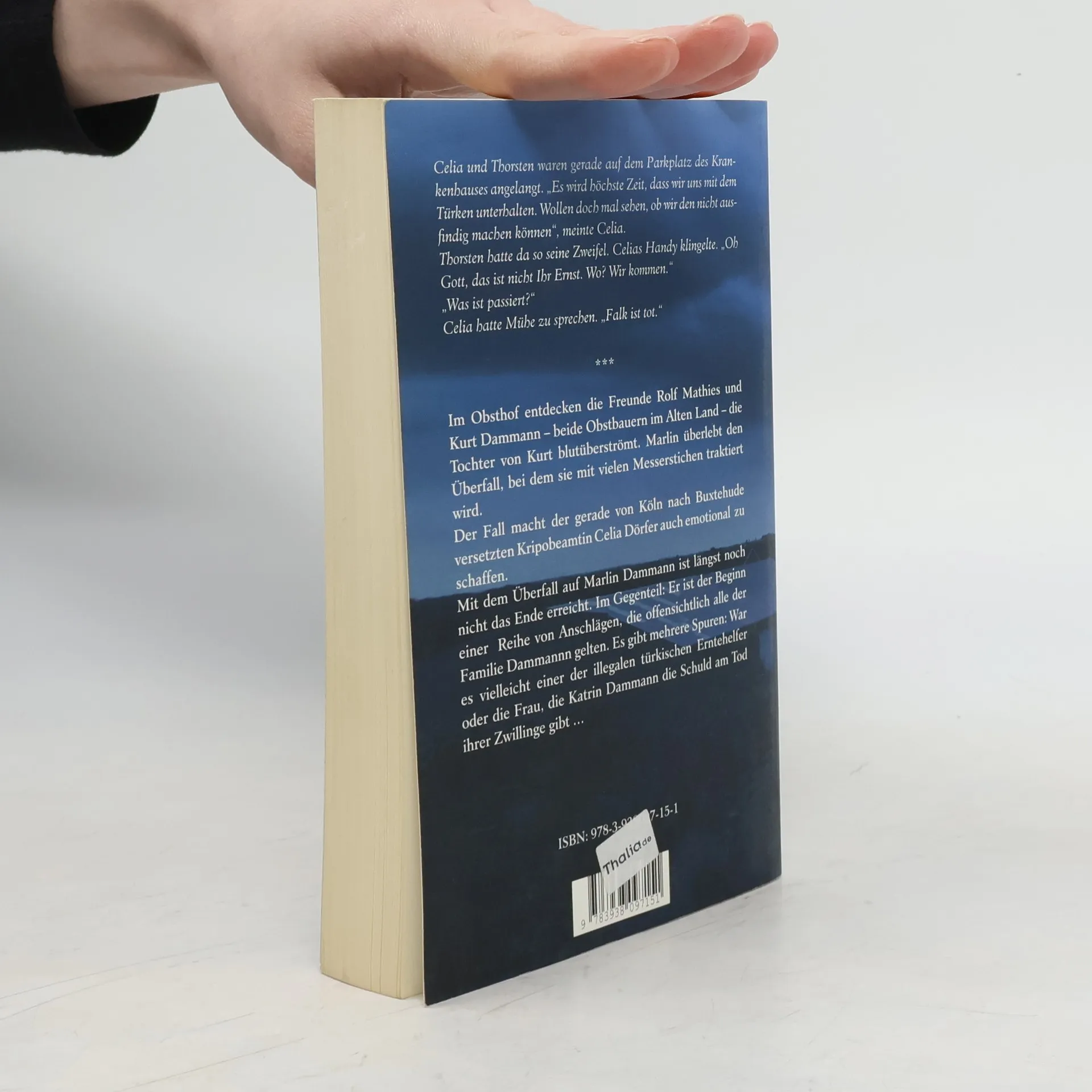 Im Obsthof entdecken die beiden Freunde Rolf Mathies und Kurt Dammann beide sind Obstbauern im Alten Land die Tochter von Kurt bewusstlos und blutüberströmt. Marlin überlebt den Überfall, bei dem sie mit vielen Messerstichen traktiert wird. Die Eltern, aber auch die Polizei tappen im Dunkeln. Der Fall macht der gerade von Köln nach Buxtehude versetzten Hauptkommissarin Celia Dörfer und ihrem Lebensgefährten, Staatsanwalt Jaron Karloff, auch emotional kräftig zu schaffen. Mit dem Überfall auf Marlin Dammann ist längst noch nicht das Ende erreicht. Im Gegenteil: Er ist der Beginn einer Reihe von Anschlägen, die offensichtlich alle der Familie Dammannn gelten. Es gibt mehrere Spuren: War es vielleicht einer der illegalen türkischen Erntehelfer oder die Frau, die Katrin Dammann die Schuld am Tod ihrer Zwilling gibt ...