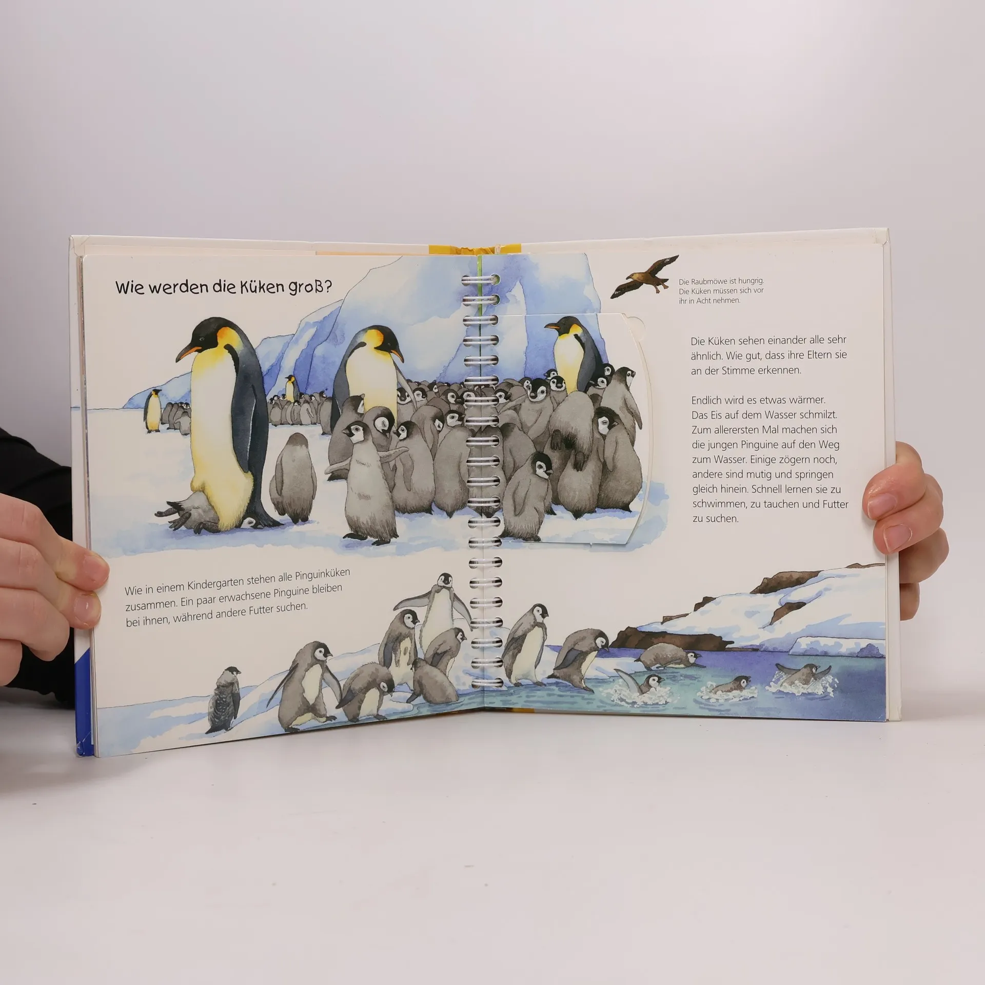 Wo leben Pinguine? Was ist ein Pinguin-Kindergarten? Eindrucksvolle Bilder und tolle Bewegungsklappen, die Spaß machen, bringen den Kleinsten die watschelnden Sympathieträger im Frack näher.