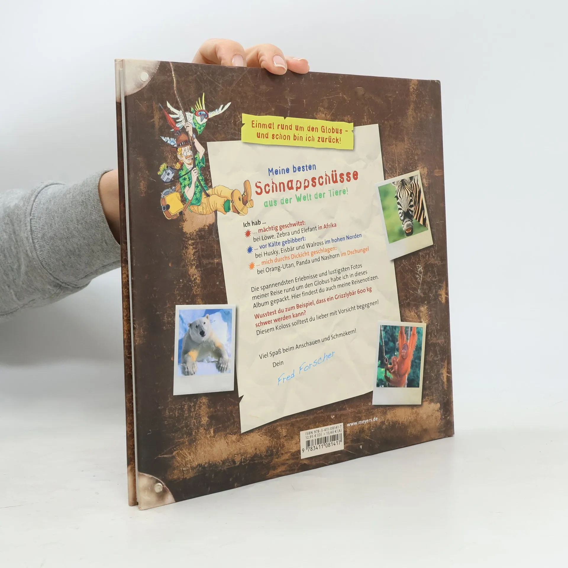 In diesem Fototagebuch nimmt Fred Forscher Kinder ab 7 Jahren mit auf eine abenteuerliche Tiersafari: Ob fliegende Hunde, tanzende Schweine oder vor sich hin dösende Kängurus – hier können Tierfans die witzigsten Schnappschüsse seiner Reise bestaunen. Beim Schmökern geht es einmal um die Welt: von zu Hause in den hohen Norden, nach Afrika, in den Dschungel und den australischen Busch. Kurzweilige Tagebuchaufzeichnungen, skurrile Anekdoten und knifflige Bildrätsel sorgen für jede Menge Lesespaß. In Steckbriefen finden Kinder außerdem die wichtigsten Informationen zu ihren Lieblingstieren.