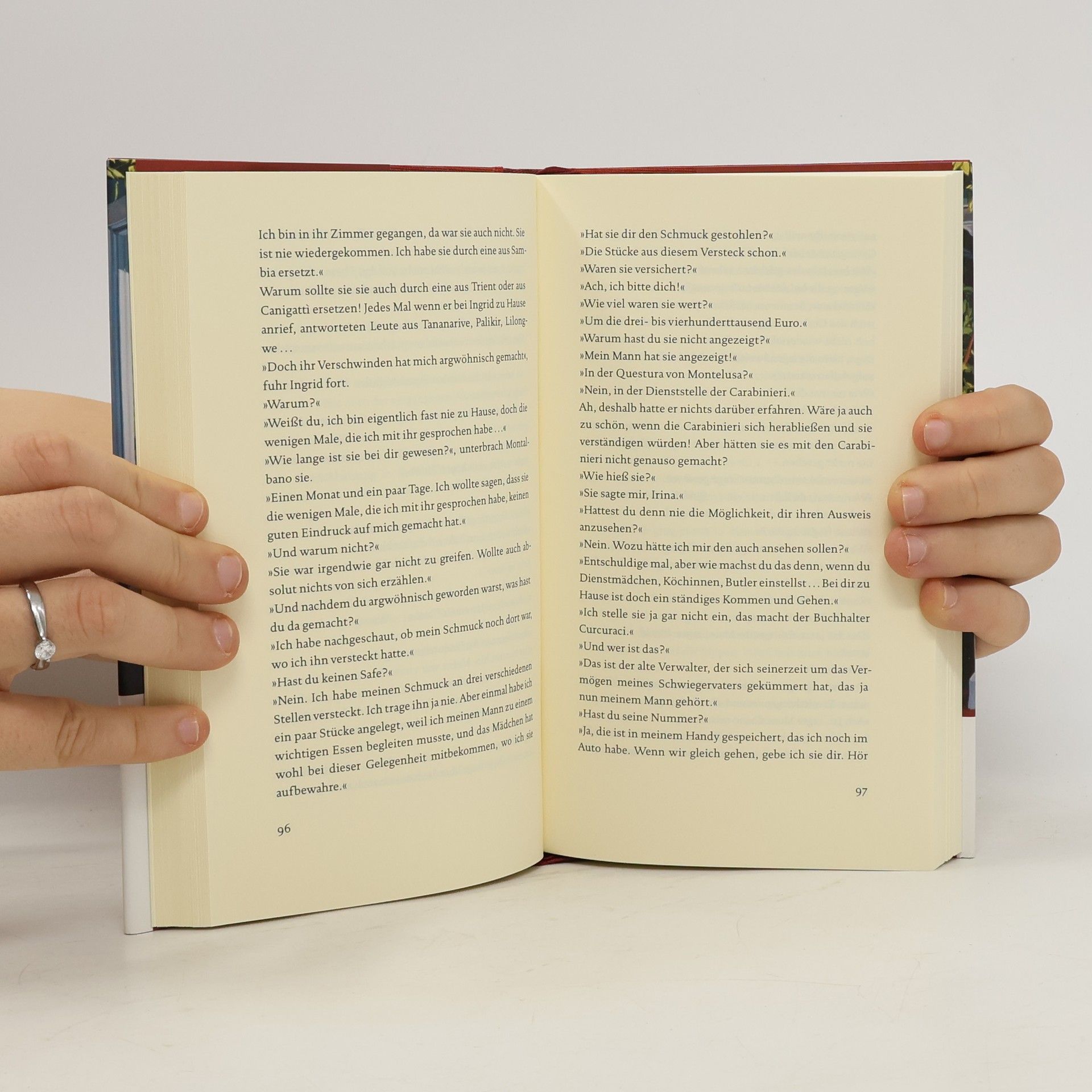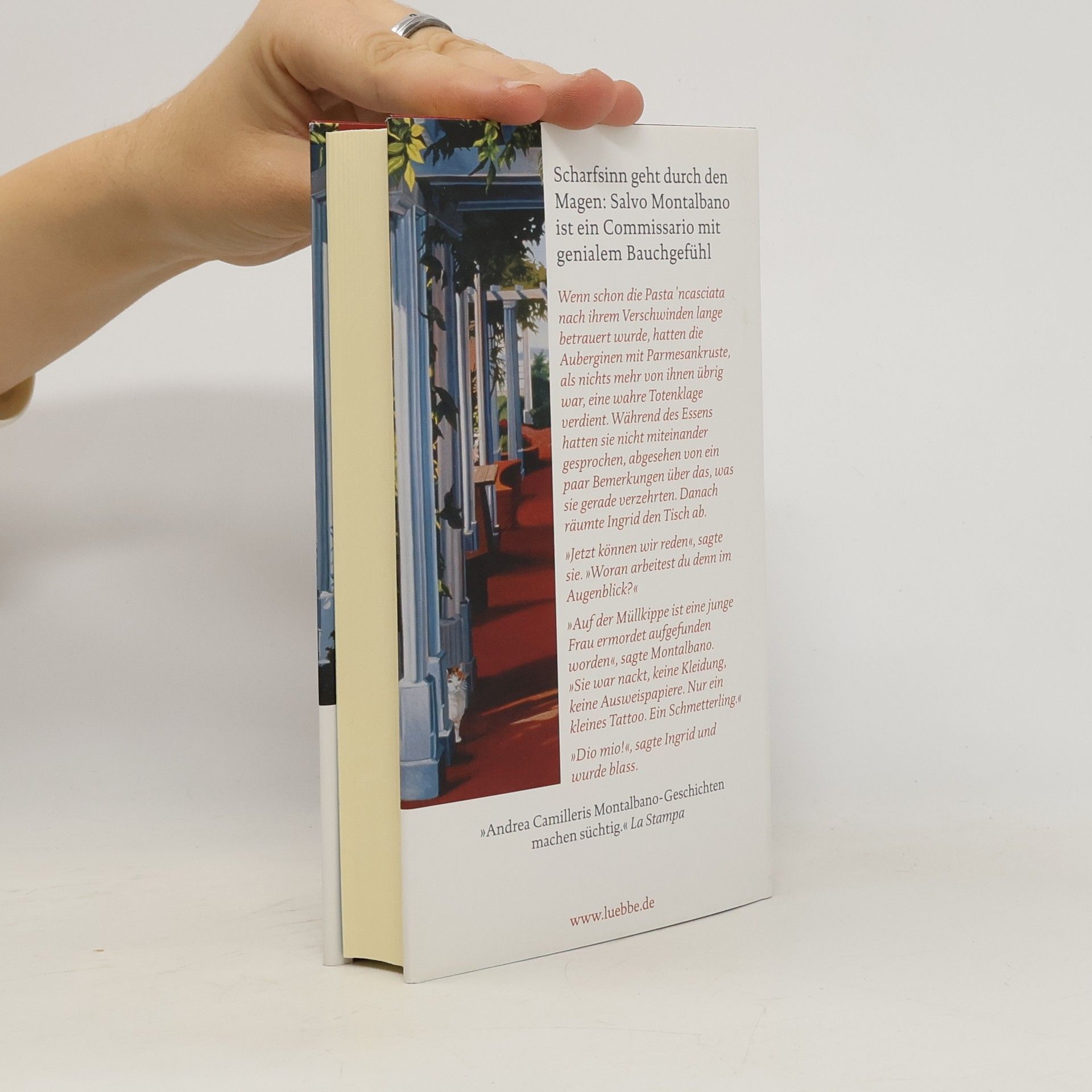 Wenn schon der Pasta 'ncasciata nach ihrem Verschwinden lange nachgetrauert wurde, hatten die Auberginen mit Parmesankruste, als nichts mehr von ihnen übrig war, eine wahre Totenklage verdient. Während des Essens hatten sie nicht miteinander gesprochen, abgesehen von ein paar Bemerkungen über das, was sie gerade verzehrten. Danach räumt Ingrid den Tisch ab. »Jetzt können wir reden«, sagte sie. »Woran arbeitest du denn im Augenblick?« »Auf der Müllkippe ist eine junge Frau ermordet aufgefunden worden«, sagte Montalbano. »Sie war nackt, keine Kleidung, keine Ausweispapiere. Nur ein kleines Tattoo. Ein Schmetterling.« »Dio mio!«, sagte Ingrid und wurde blass.
