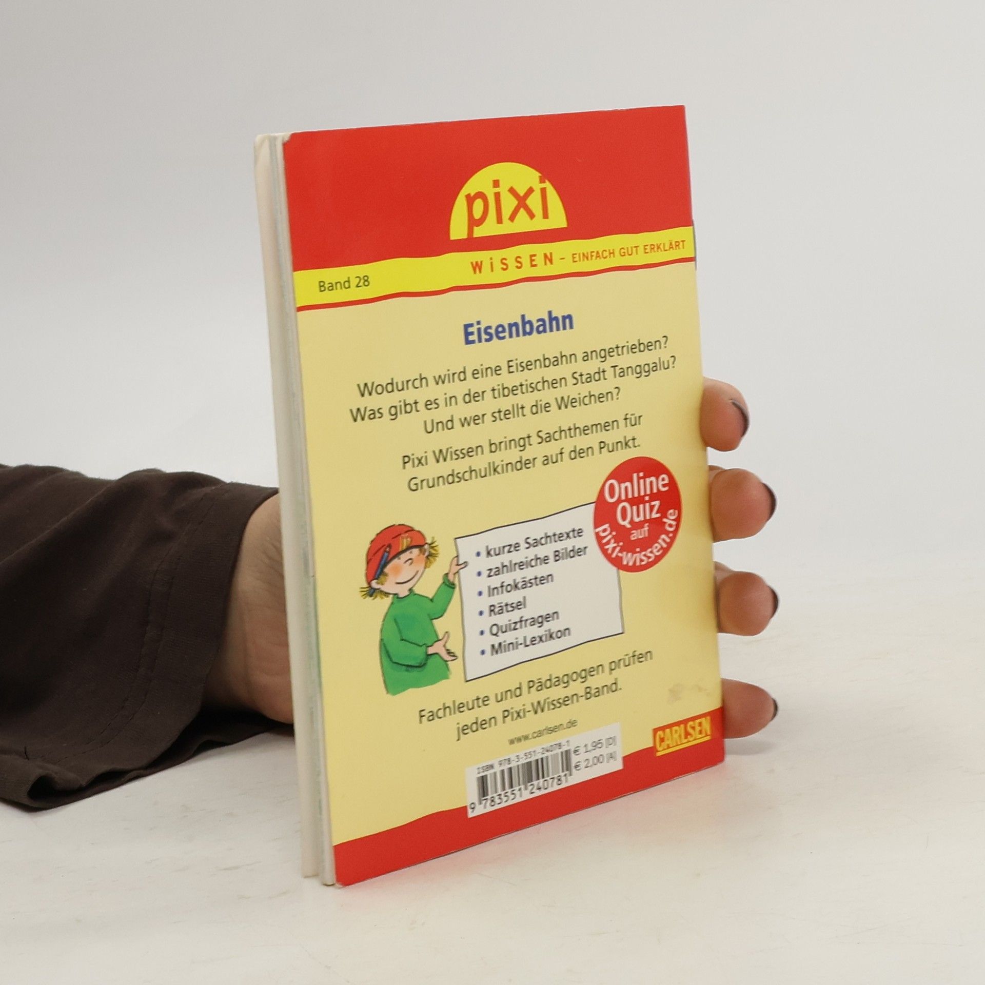 Wodurch wird eine Eisenbahn angetrieben? Welche Besonderheit bietet die tibetische Stadt Tanggalu? Und wer stellt beim Zugverkehr die Weichen? Antworten zu diesen und vielen anderen Themen stehen im Pixi Wissen Band 28. Pixi Wissen bringt Sachthemen für Grundschulkinder auf den Punkt. Kurze, informative Texte vermitteln zusammen mit zahlreichen hochwertigen Bildern Einblicke und Überblicke. Infokästen, Quizfragen und interessante Fakten lockern die Seiten auf. Ganz einfach erfahren Grundschüler mehr über ihre Lieblingsthemen, das Lesen wird zum Vergnügen. Fachleute und Pädagogen prüfen jeden Pixi Wissen-Band. Pixi Wissen - zum Sammeln, zum Mitnehmen, zum Lernen Einfach gut erklärt.