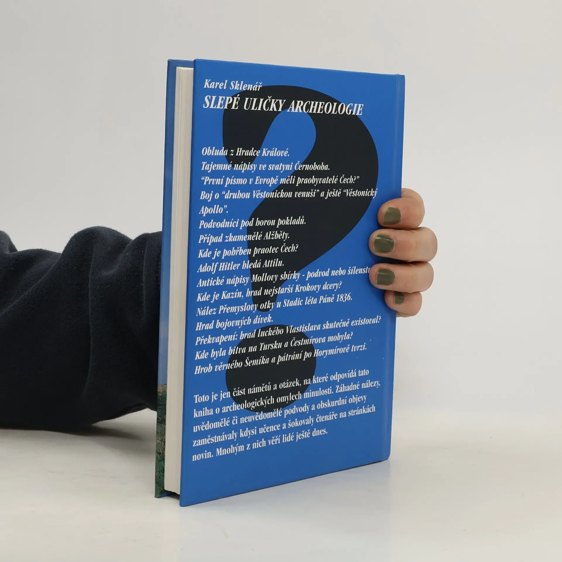 V knížce, která představuje „jakýsi malý výběrový slovník archeologických omylů minulosti“, seznamuje autor s řadou zajímavých problémů, jimž světová a zejména česká archeologie věnovala značnou pozornost, ale které pro vlastní vědecké poznání nemají praktický význam. Vypráví o nálezech pravěkého písma, o domnělých památkách paleolitu, o hrobech slavných osobností, o římských památkách v Čechách a na Moravě, o archeologických falzech aj.