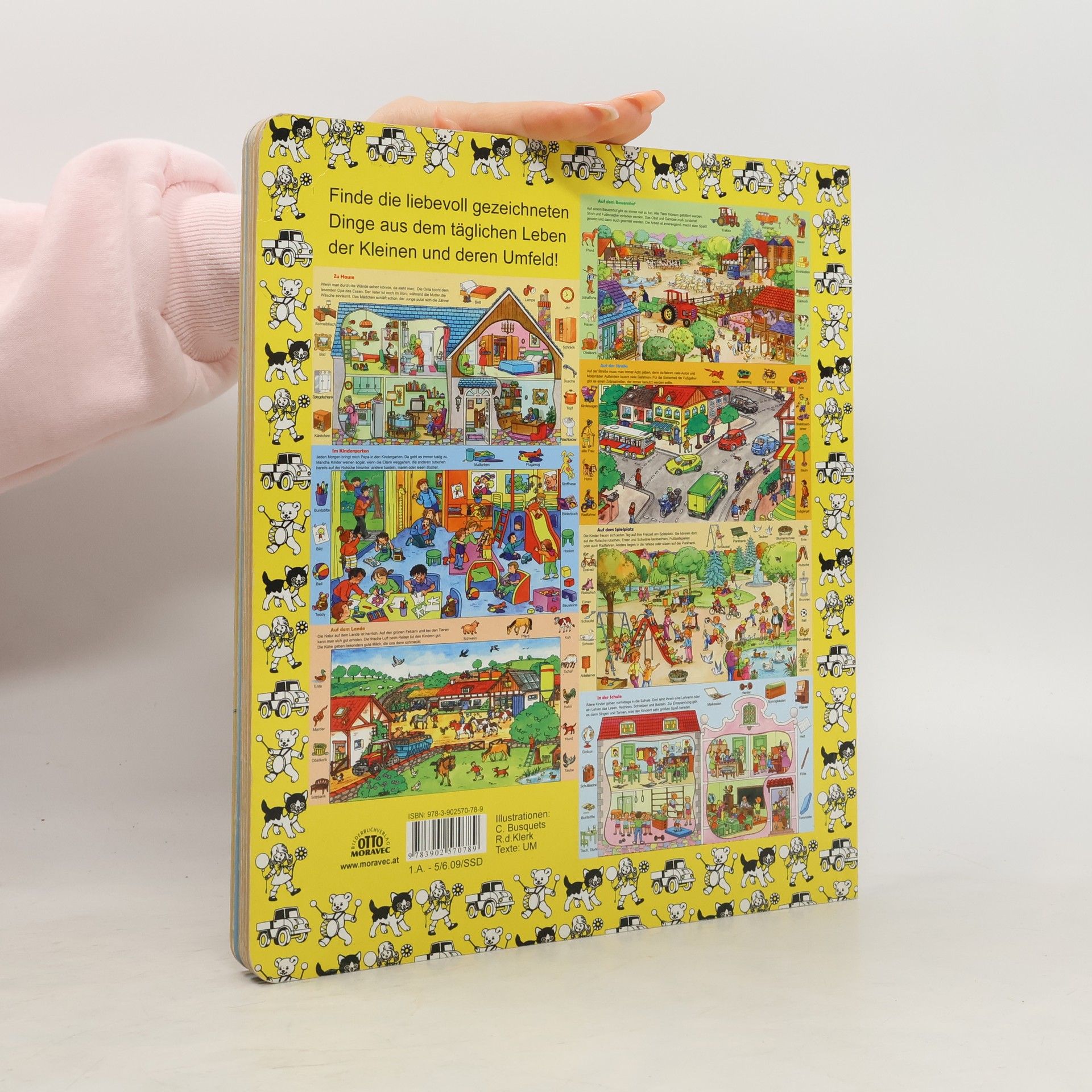 Bildwörterbuch zu folgenden Themen: auf dem Bauernhof, zu Hause, auf dem Lande, auf dem Spielplatz, auf der Straße, im Kindergarten, in der Schule, Carlos Busquets