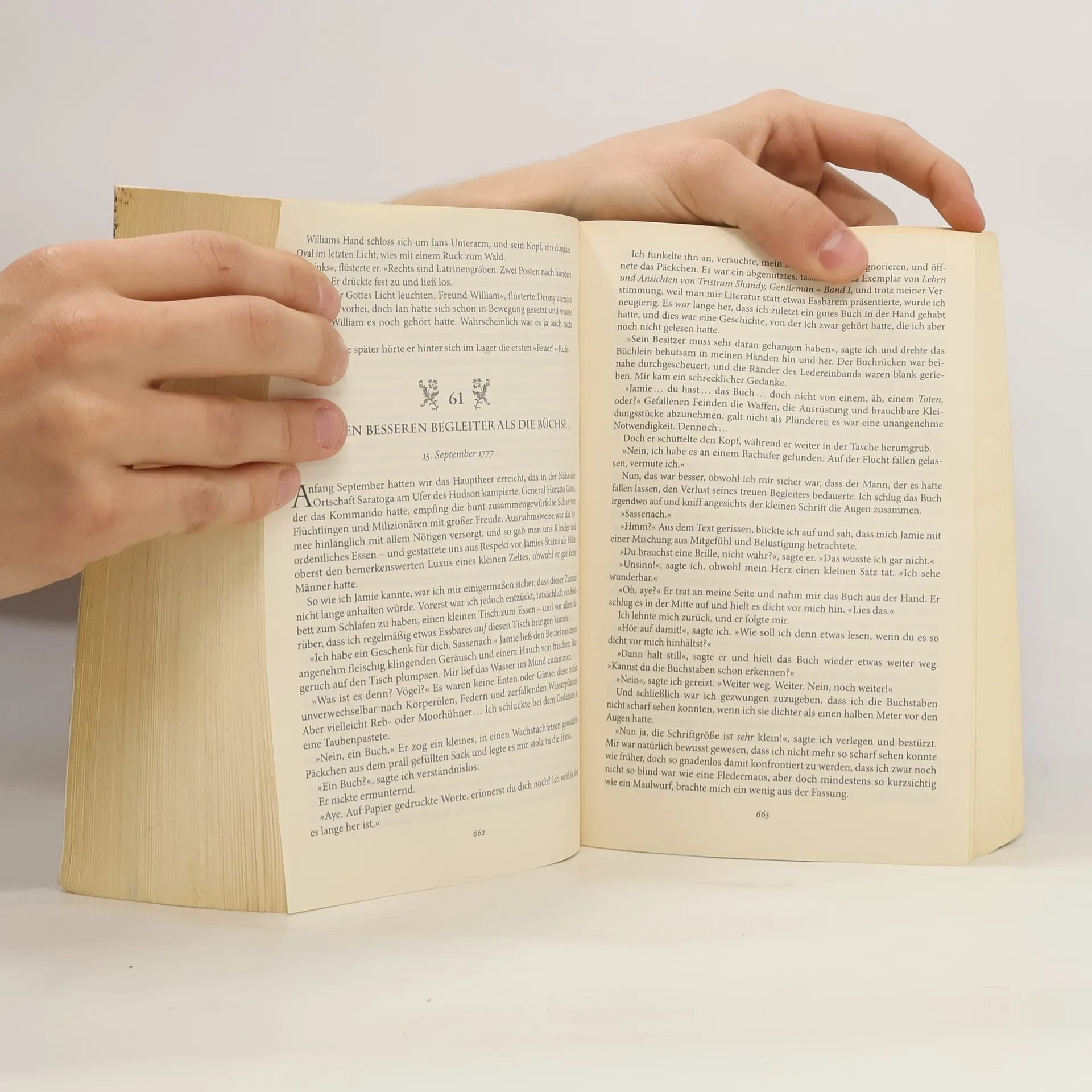 Die Feder ist mächtiger als das Schwert 1777 – die Zeichen stehen schlecht für einen Sieg der Kolonien im Unabhängigkeitskrieg gegen die Briten. Nur Claire Randall, die Zeitreisende aus dem 20. Jahrhundert, und ihr geliebter Mann, der schottische Rebell Jamie Fraser, wissen, wie er ausgehen wird … Jamie weigert sich, zur Waffe zu greifen, doch er will mit dem gedruckten Wort in die revolutionären Kämpfe eingreifen. Dazu braucht er seine Druckerpresse, und die steht immer noch in Edinburgh. Während es in den Straßen der amerikanischen Kolonien schon nach Pulverdampf riecht, macht sich Jamie bereit für eine Rückkehr in die schottischen Highlands, mit Claire an seiner Seite.