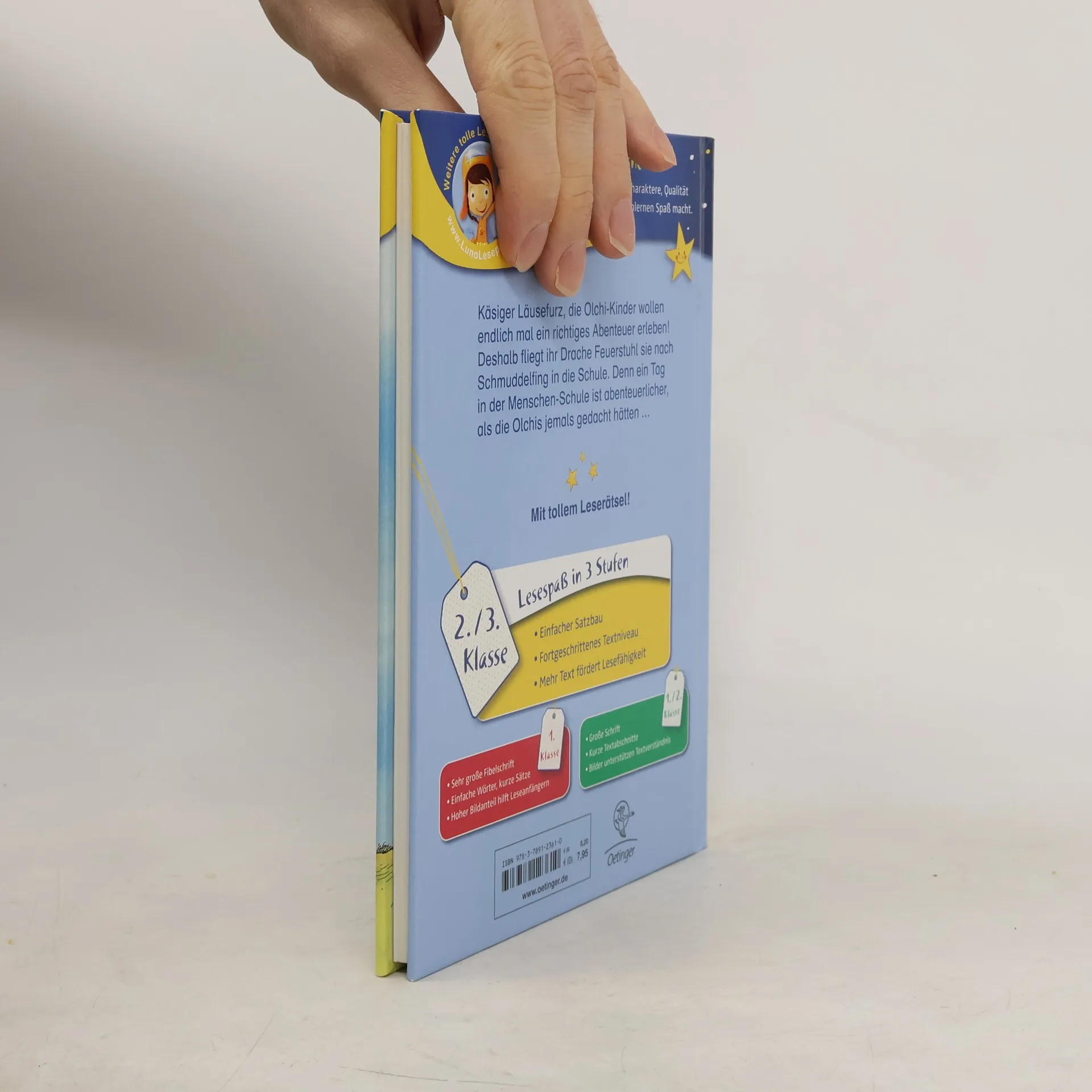 Was Olchi-Opa in seiner Jugend konnte, können Olchi-Kinder von heute schon lange, Ratten-Schwanz-und-Kröten-Furz! Also satteln sie den Reisedrachen und ab geht die Post. Nicht nach Australien, wie damals bei Olchi-Opa, sondern nur in die Grundschule von Schmuddelfing. Aber was die Olchi-Kinder da mit den Menschen-Kindern erleben - und die Menschen-Kinder mit den Olchi-Kindern -, ist mindestens genauso aufregend wie Olchi-Opas Abenteuer mit den Kängurus. Lesen lernen mit „Büchersterne“ für die 2./3. Klasse: einfacher Satzbau, fortgeschrittenes Textniveau und ein höherer Textanteil, der die Lesefähigkeit geübter Leseanfänger fördert. Dazu ein Leserätsel im Anhang.