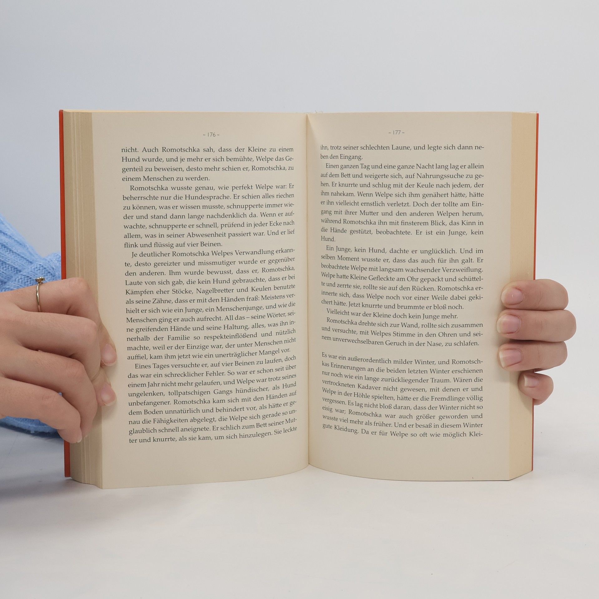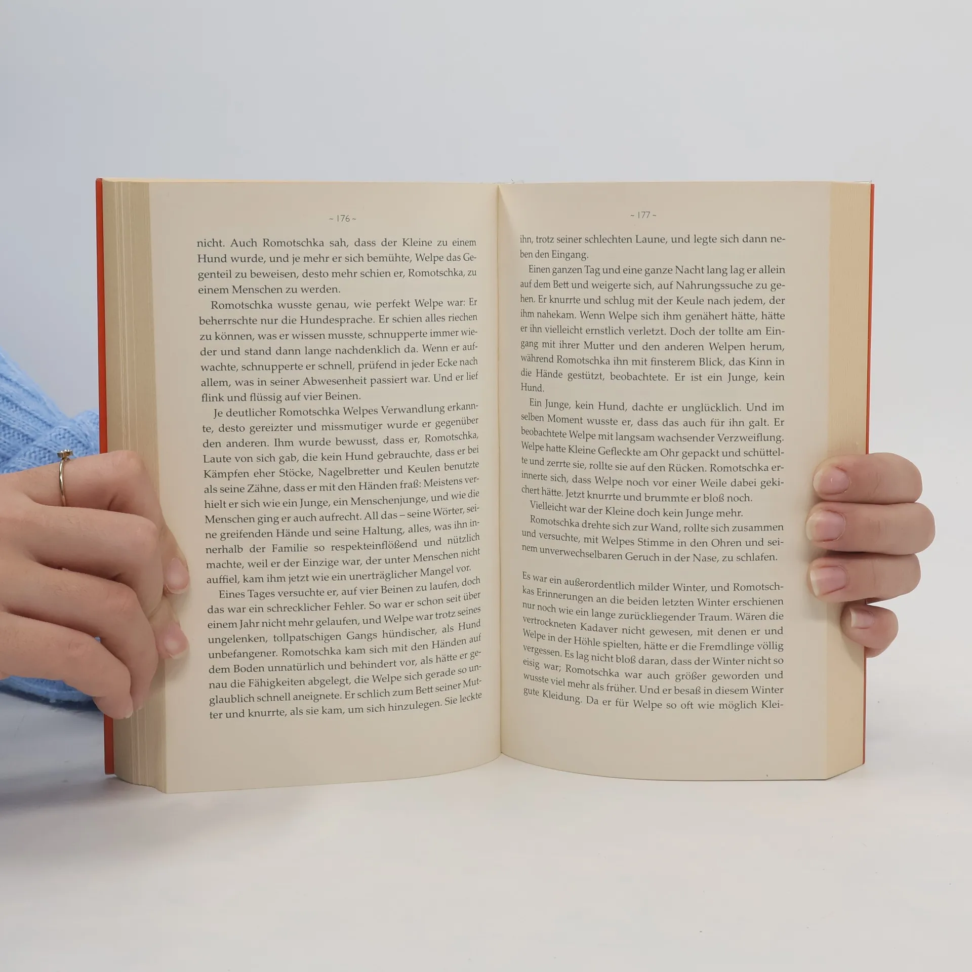 Moskau: Ein vierjähriger Junge erwacht in einer kalten leeren Wohnung. Er wartet auf den Onkel, doch der kommt nicht nach Hause. Auch seine Mutter nicht, deren Ermahnungen er im Ohr hat. Der Junge hat Angst vor dem Onkel, der ihm verboten hat, sein Zimmer zu verlassen. Doch er ist hungrig, faßt Mut und verläßt die Wohnung. Der Junge, Romochka, ist allein. Es schneit, die Menschen beachten ihn nicht, nur ein Hund nähert sich ihm, aggressiv, dann neugierig. Romochka folgt dem Hund, und der Hund – die Hündin – gestattet ihm zu folgen. Hin zu ihrer Höhle in einem verlassenen Gebäude. Zu seiner neuen Familie. Romochkas Leben als Hund beginnt.