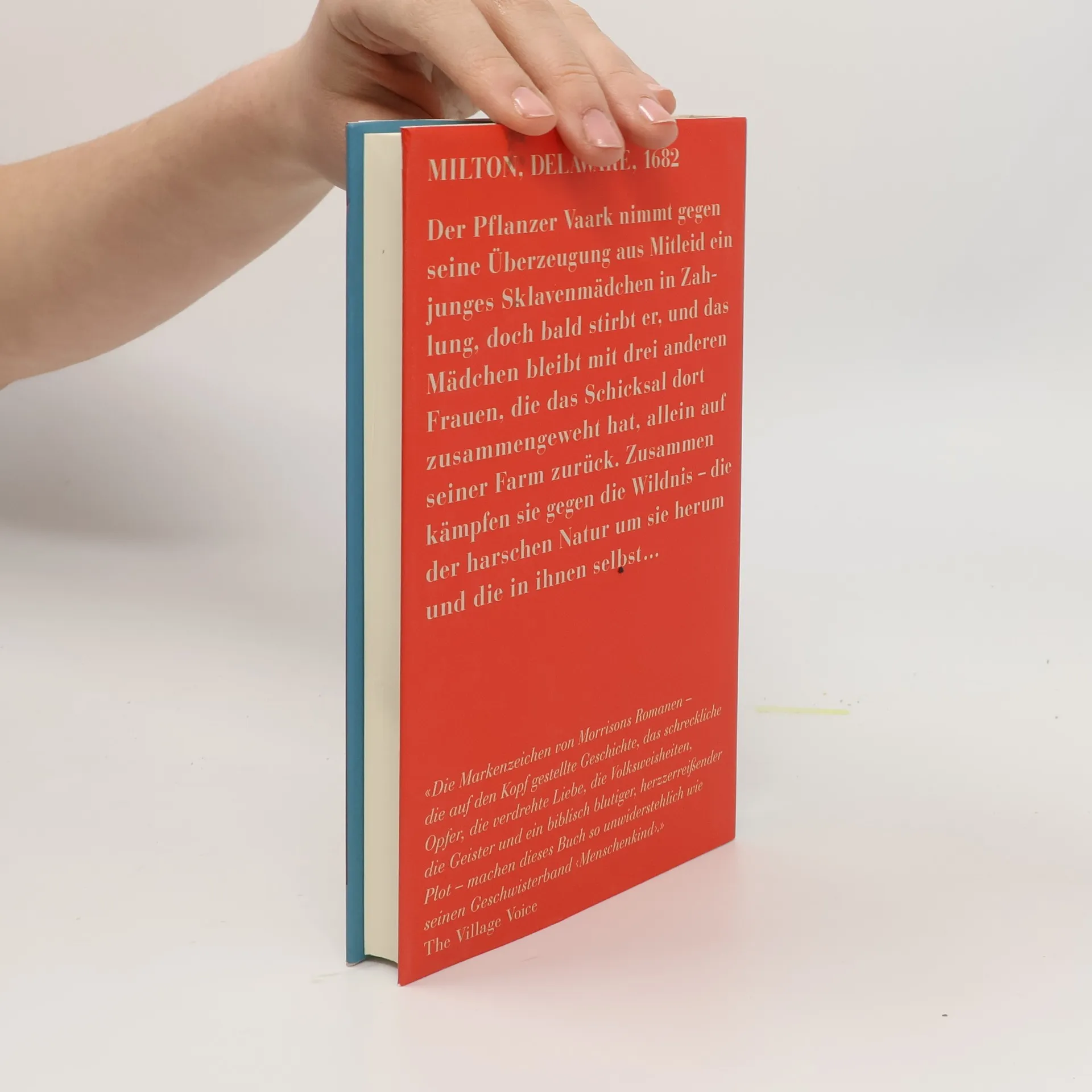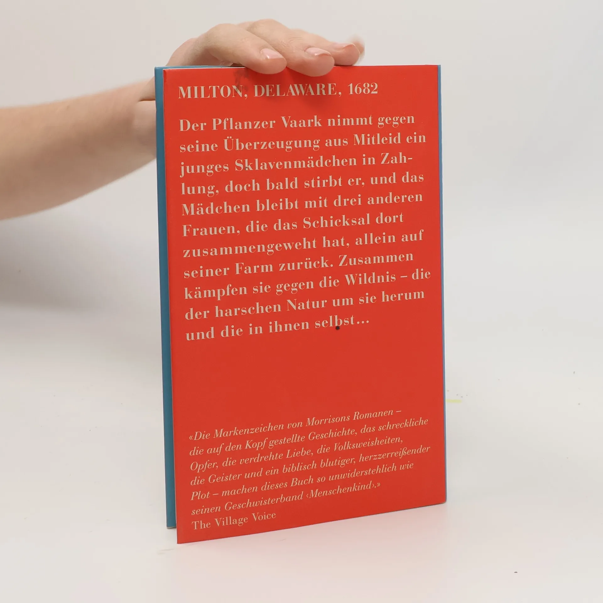 MILTON, DELAWARE, 1682 Der Pflanzer Vaark nimmt gegen seine Überzeugung aus Mitleid ein junges Sklavenmädchen in Zahlung, doch bald stirbt er, und das Mädchen bleibt mit drei anderen Frauen, die das Schicksal dort zusammengeweht hat, allein auf seiner Farm zurück. Zusammen kämpfen sie gegen die Wildnis – die der harschen Natur um sie herum und die in ihnen selbst …« Die Markenzeichen von Morrisons Romanen – die auf den Kopf gestellte Geschichte, das schreckliche Opfer, die verdrehte Liebe, die Volksweisheiten, die Geister und ein biblisch blutiger, herzzerreißender Plot – machen dieses Buch so unwiderstehlich wie seinen Geschwisterband ‹ Menschenkind ›.» The Village Voice