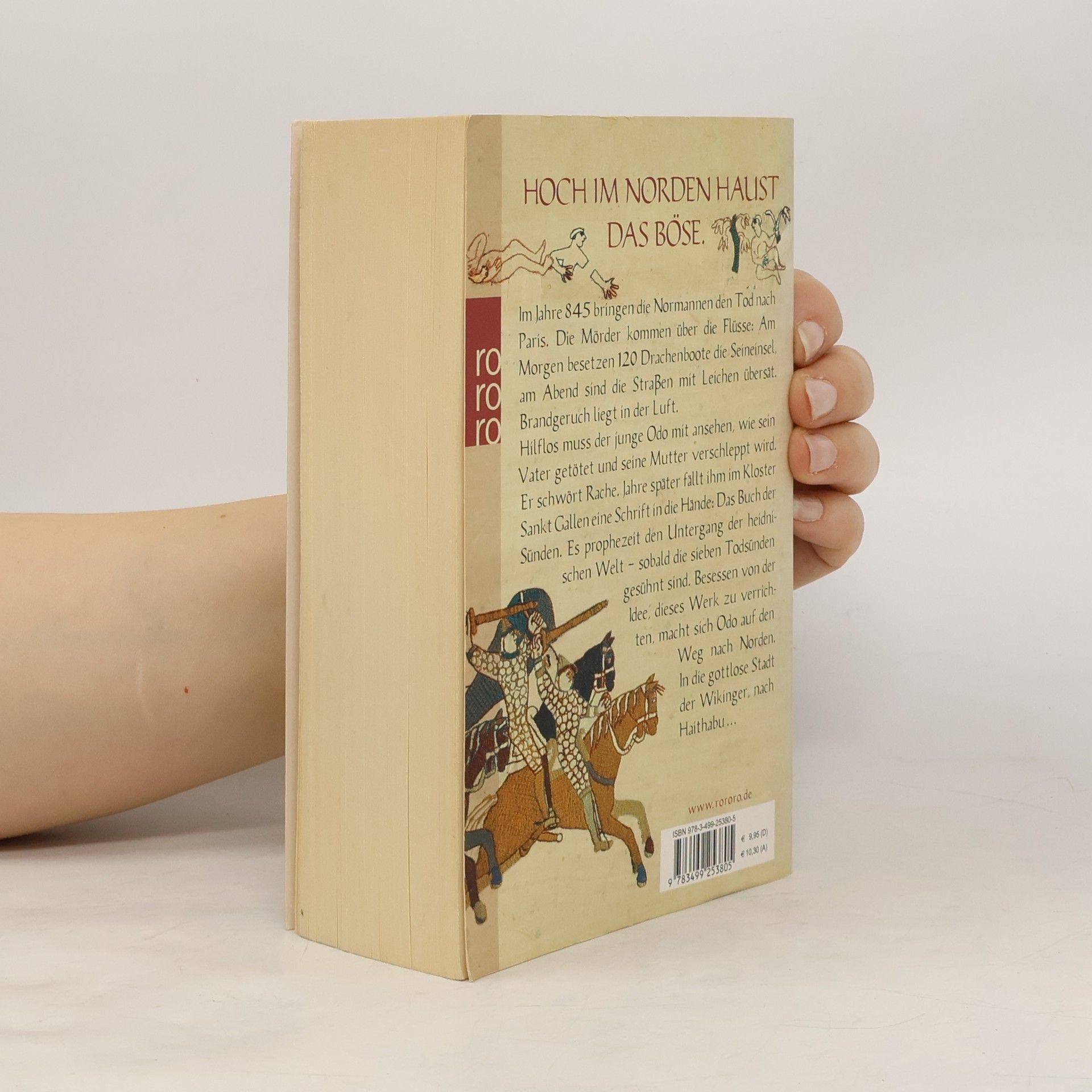 HOCH IM NORDEN HAUST DAS BÖSE Im Jahre 845 bringen die Normannen den Tod nach Paris. Die Mörder kommen über die Flüsse: Am Morgen besetzen 120 Drachenboote die Seineinsel, am Abend sind die Straßen mit Leichen übersät. Brandgeruch liegt in der Luft. Hilflos muss der junge Odo mit ansehen, wie sein Vater getötet und seine Mutter verschleppt wird. Er schwört Rache. Jahre später fällt ihm im Kloster Sankt Gallen eine Schrift in die Hände: Das Buch der Sünden. Es prophezeit den Untergang der heidnischen Welt sobald die sieben Todsünden gesühnt sind. Besessen von der Idee, dieses Werk zu verrichten, macht sich Odo auf den Weg nach Norden. In die gottlose Stadt der Wikinger, nach Haithabu ...