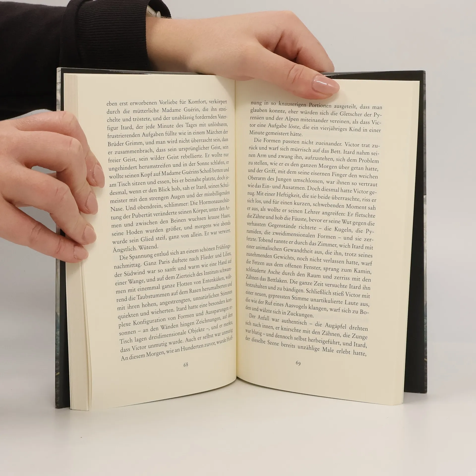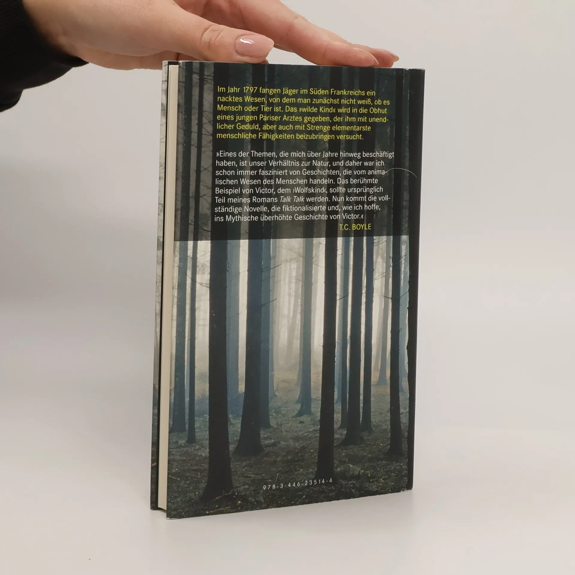 Ein Mensch? Ein Tier? Oder irgendetwas dazwischen? Neben Kaspar Hauser war Victor von Aveyron der berühmteste Fall eines „Wolfskinds“. Eine nackte Kreatur, die sich, in Südfrankreich von Jägern entdeckt, auf einem Baum versteckt. Er kann nicht sprechen, isst Nüsse und Wurzeln und verabscheut gekochte Speisen. Ist sein merkwürdiges Verhalten kulturell oder biologisch bedingt? Ist der Mensch - frei nach Rousseau - von Natur aus gut, oder prägt erst die Erziehung sein Wesen? Boyle, der in den USA lebende Autor, hat sich des Falles Victor von Aveyron angenommen. In seinem zutiefst ergreifenden Porträt eines Wolfskindes geht er der subtilen Grenze nach, an der sich entscheidet, wer Mensch und wer Tier ist.