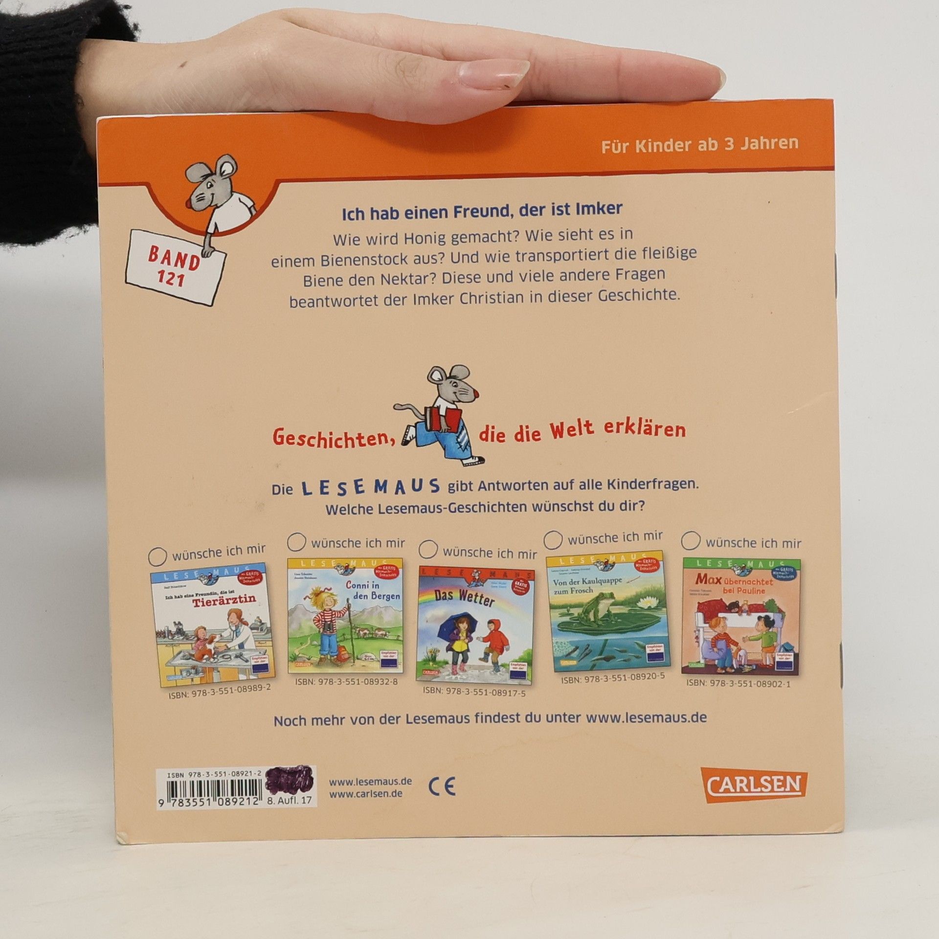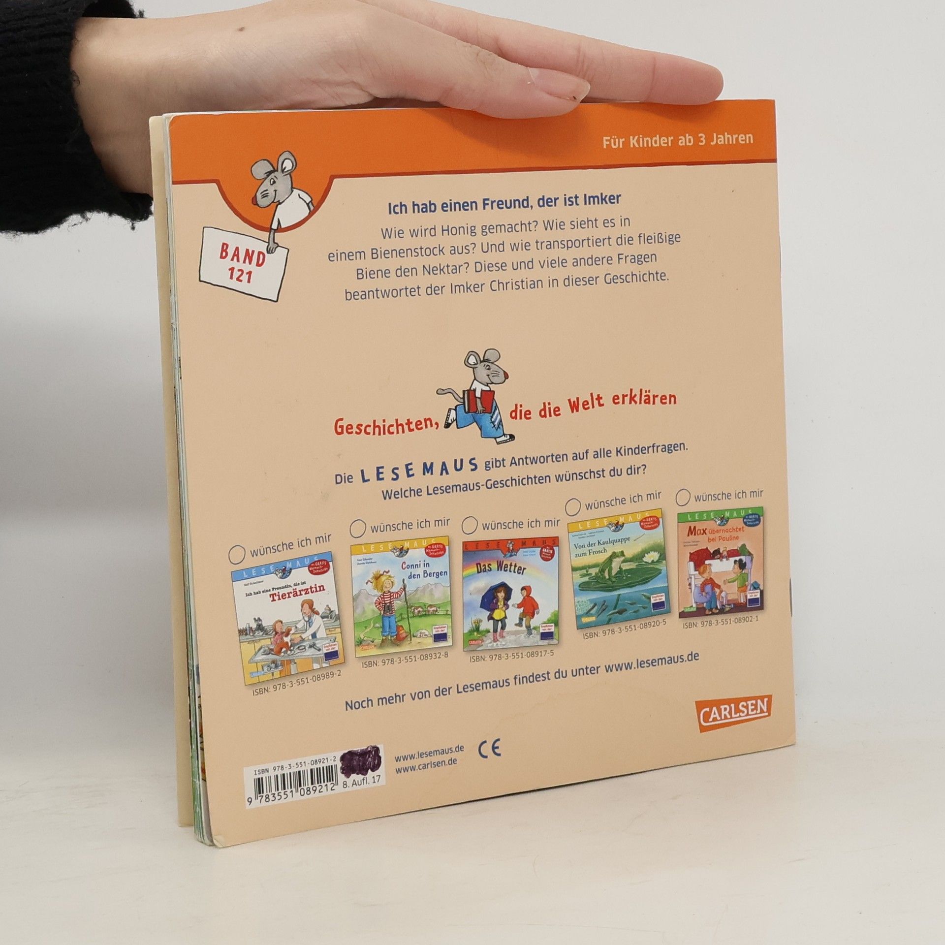*** Spannendes Sachbilderbuch über die Arbeit eines Imkers *** Wie wird Honig gemacht? Wie sieht es in einem Bienenstock aus? Und wie transportiert die fleißige Biene den Nektar? Diese und viele andere Fragen beantwortet der Imker Christian in dieser Geschichte. Eine kindgerecht erzählte Sachgeschichte zum gemeinsamen Anschauen und Vorlesen. *** LESEMAUS – Geschichten, die die Welt erklären! *** Die Bilderbücher für Kinder ab 3 Jahren sind ideal zum gemeinsamen Anschauen und Vorlesen. Verständliche Texte und hochwertige Illustrationen vermitteln erstes Sachwissen zu wichtigen Themen aus dem Kinderalltag. Empfohlen von der Stiftung Lesen.