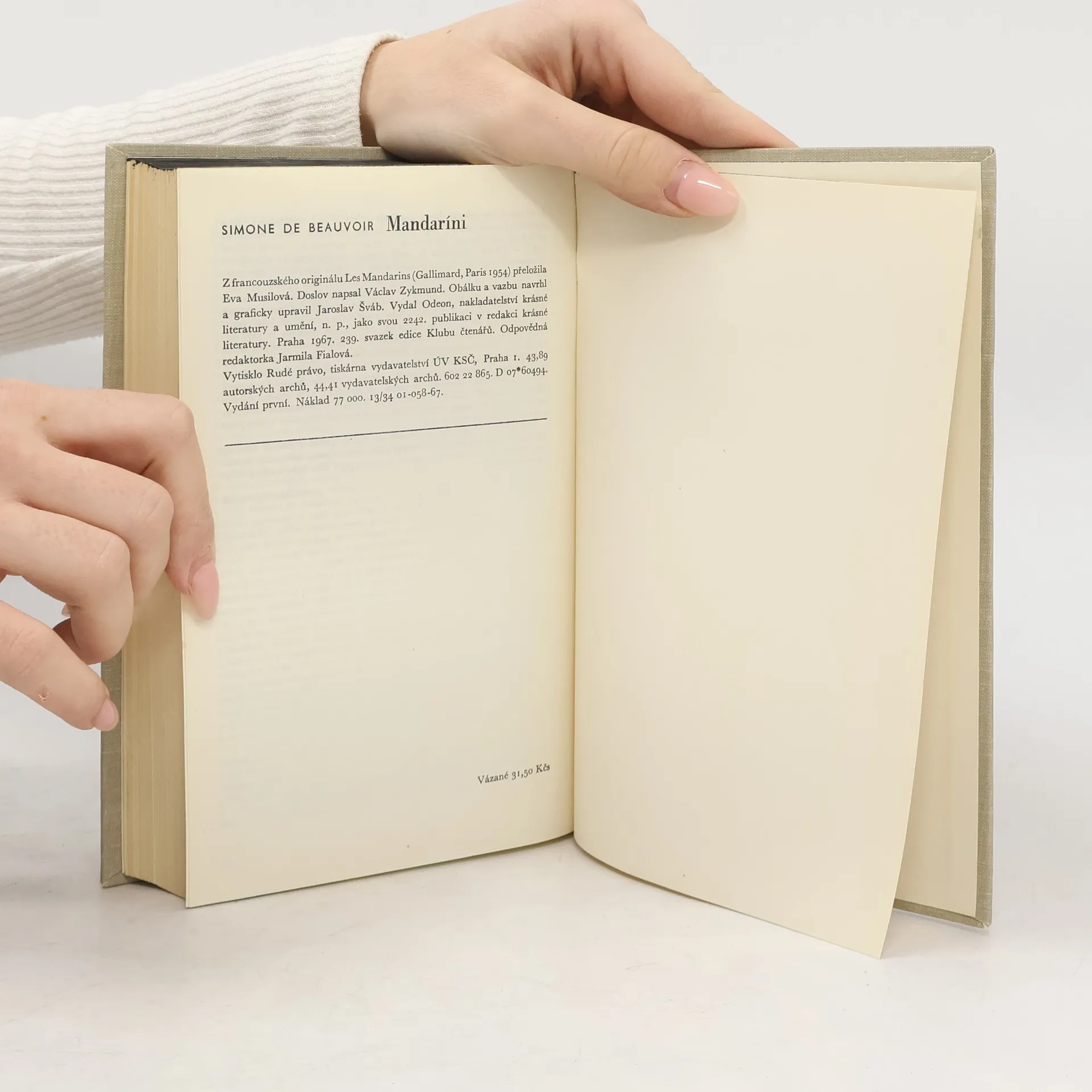 Román zachycující prostředí levicových intelektuálů v letech padesátých ve Francii. Dvě z hlavních mužských postav zobrazují s jistou mírou transpozice Sartra a Camuse a jedna z postav ženských autorku samu. Autorka se zde na příbězích těchto postav a zejména na zmíněné postavě ženskézamýšlí nad postavením moderní ženy, nad její závislostí na muži a nad její potřebou oprostit se od tuhých společenských konvencí. Takto se dochází k tzv. "mandarínskému štěstí", které vede k rozporům a konfliktům.