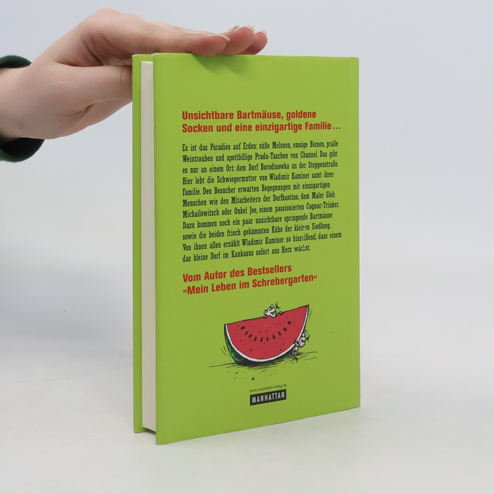 Kaukasisch. Komisch. Kaminer. Aus dem Schrebergarten in den Kaukasus – ein echter Kaminer! Es ist das Paradies auf Erden: süße Melonen, emsige Bienen, pralle Weintrauben und spottbillige Prada-Taschen von Channel. Das gibt es nur an einem besonderen Ort: dem Kaukasus. Hier lebt die Schwiegermutter von Wladimir Kaminer samt ihrer Familie in Borodinowka an der Steppenstraße, einem Ort der Lebensfreude, Abenteuer und Begegnungen mit einzigartigen Menschen. Von ihnen erzählt Wladimir Kaminer so hinreißend, dass sie einem sofort ans Herz wachsen: Neben der Schwiegermutter wären da noch Onkel Joe, die Mitarbeiter der Dorfkantine, der Maler Gleb Michailowitsch oder der Imker Juri. Dazu ein paar unsichtbare springende Bartmäuse sowie die beiden frisch gekämmten Kühe der kleinen Siedlung. Als dann auch noch das deutsche Fernsehen kommt, um die Dokumentation 'Kaminer Goes Kaukasus' zu drehen, steht Borodinowka kopf …