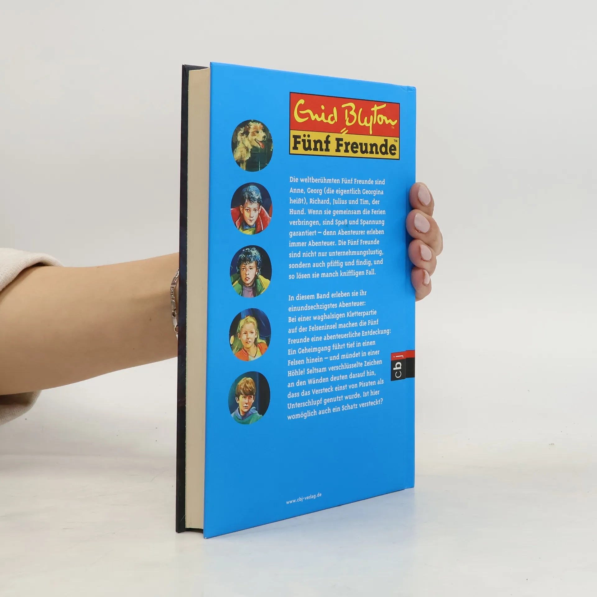 Bei einer waghalsigen Kletterpartie auf der Felseninsel machen die Fünf Freunde eine abenteuerliche Entdeckung: Ein Geheimgang führt tief in einen Felsen hinein – und mündet in einer Höhle! Seltsam verschlüsselte Zeichen an den Wänden deuten darauf hin, dass das Versteck einst von Piraten als Unterschlupf genutzt wurde. Jetzt ist die Kombinationsgabe der Fünf gefragt, die tatsächlich herausfinden, dass ein Nachfahre der Piraten immer noch lebt – und offenbar einen wertvollen Schatz hütet ... Ausstattung: Mit s/w Illustrationen