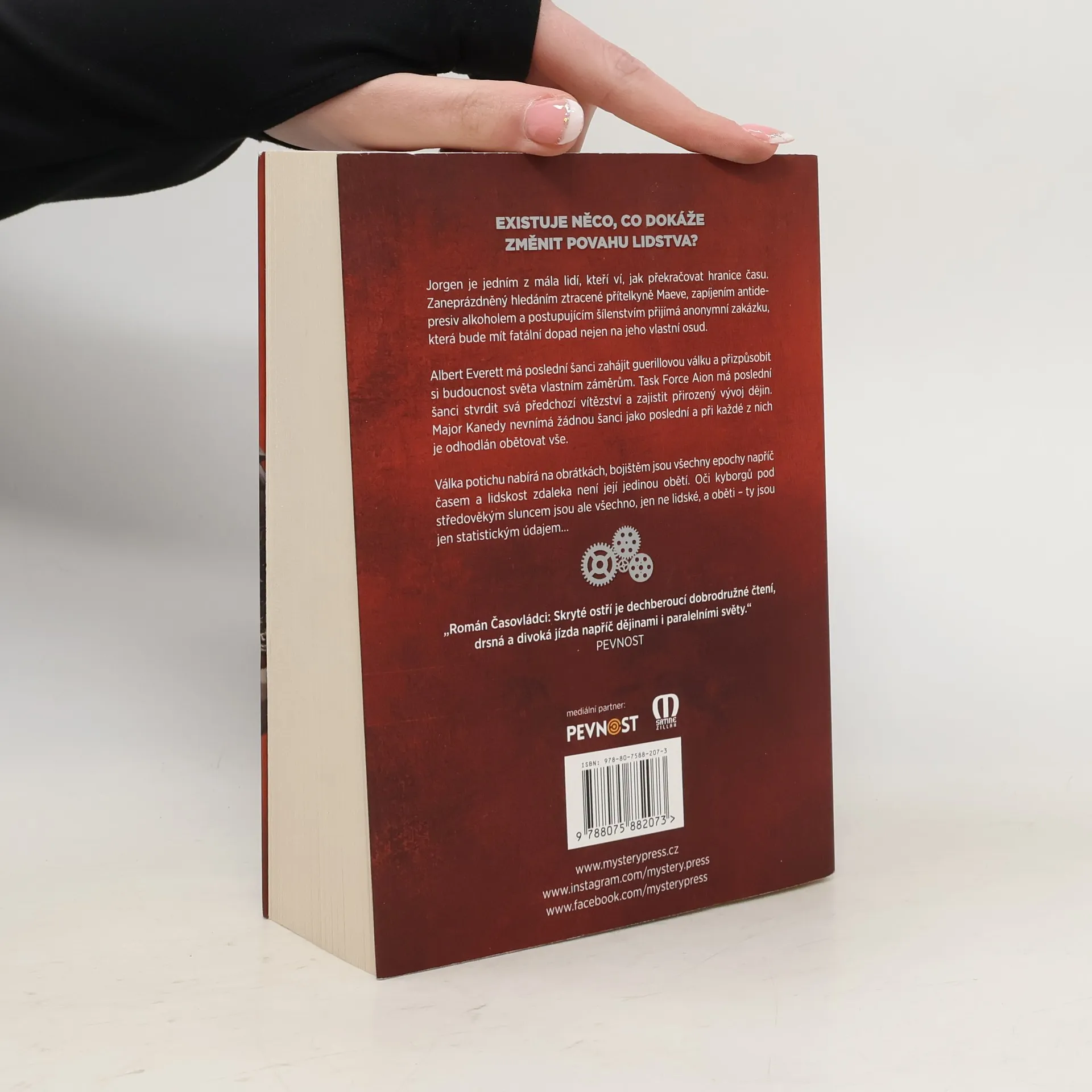 EXISTUJE NĚCO, CO DOKÁŽE ZMĚNIT POVAHU LIDSTVA? Jorgen je jedním z mála lidí, kteří ví, jak překračovat hranice času. Zaneprázdněný hledáním ztracené přítelkyně Maeve, zapíjením antidepresiv alkoholem a postupujícím šílenstvím přijímá anonymní zakázku, která bude mít fatální dopad nejen na jeho vlastní osud. Albert Everett má poslední šanci zahájit guerillovou válku a přizpůsobit si budoucnost světa vlastním záměrům. Task Force Aion má poslední šanci stvrdit svá předchozí vítězství a zajistit přirozený vývoj dějin. Major Kanedy nevnímá žádnou šanci jako poslední a při každé z nich je odhodlán obětovat vše. Válka potichu nabírá na obrátkách, bojištěm jsou všechny epochy napříč časem a lidskost zdaleka není její jedinou obětí. Oči kyborgů pod středověkým sluncem jsou ale všechno, jen ne lidské, a oběti – ty jsou jen statistickým údajem… ____ „Román Časovládci: Skryté ostří je dechberoucí dobrodružné čtení, drsná a divoká jízda napříč dějinami i paralelními světy.“ – PEVNOST