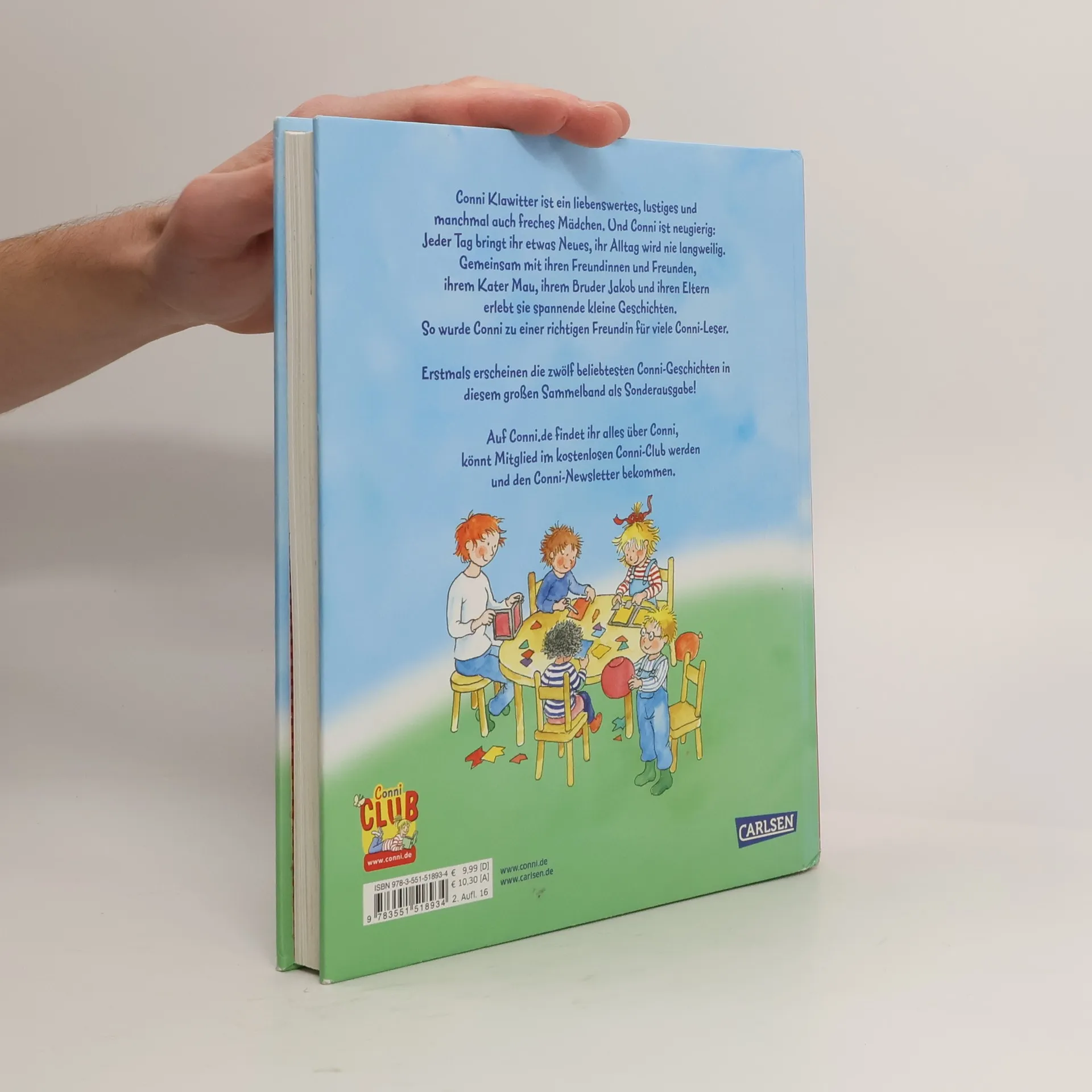 Conni Klawitter ist ein liebenswertes und machmal auch freches Mädchen. Und Conni ist neugierig: jeder Tag bringt ihr etwas Neues, ihr Alltag wird nie langweilig. Gemeinsam mit ihren Freundinnen und Freunden, ihrem Kater Mau, ihrem Bruder Jakob und ihren Eltern erlebt sie spannende kleine Geschichte. So wurde Conni zu einer richtigen Freundin für alle Conni-Leser. Dieser große Conni-Sammelband enthält folgende 12 Geschichten: Conni auf dem Bauernhof Conni kommt in den Kindergarten Conni macht Seepferdchen Conni tanzt Conni backt Pizza Conni hat Geburtstag Conni lernt reiten Conni kommt in die Schule Conni feiert Weihnachten Conni bekommt eine Katze Conni zieht um Conni geht Laterne laufen
