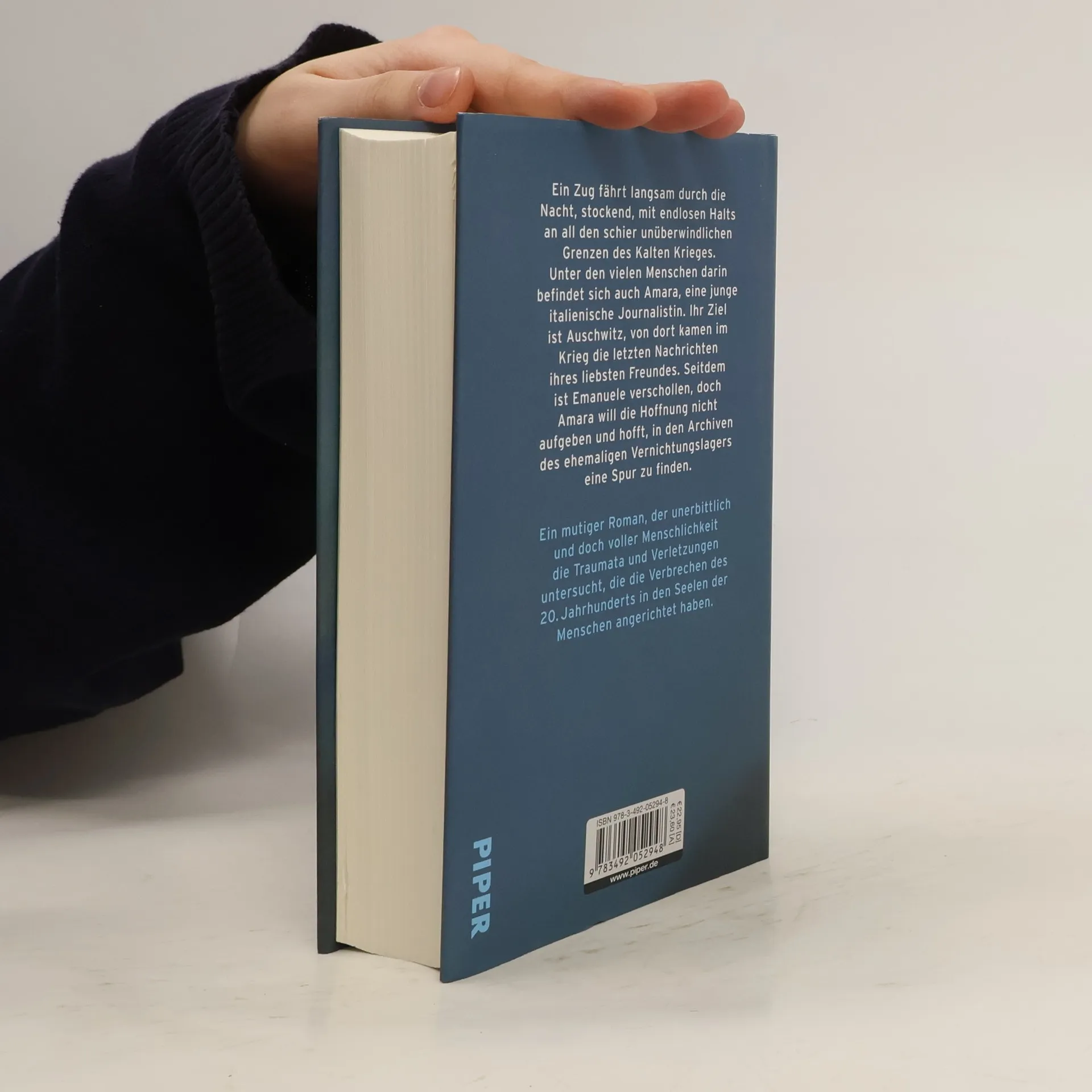 Man schreibt das Jahr 1956. In einem Zug, der sich im Schneckentempo über die Grenzen des Kalten Krieges quält, sitzt Amara, eine junge italienische Reporterin. Ihr Chef hat sie für eine Recherche nach Auschwitz geschickt. Sie hofft, dort auch Hinweise auf einen 1943 verschollenen Jungen zu finden: Emanuele war mehr als nur ein Kindheitsfreund, er war Amaras große Liebe. Seit ihr ein Bündel rätselhafter Briefe zugespielt worden ist, hat sie wieder Hoffnung, dass er überlebt haben könnte … Auf der schier endlosen Zugfahrt bietet einer der Mitreisenden Amara seine Hilfe an. Sie zögert, doch schon bald ist sie froh, den 'Mann im Hirschpullover' an ihrer Seite zu wissen, denn in Polen zeigt man sich alles andere als kooperativ. Ein mutiger Roman, der unerbittlich und doch voller Menschlichkeit die Traumata und Verletzungen untersucht, die die Verbrechen des 20. Jahrhunderts in den Seelen der Menschen angerichtet haben.