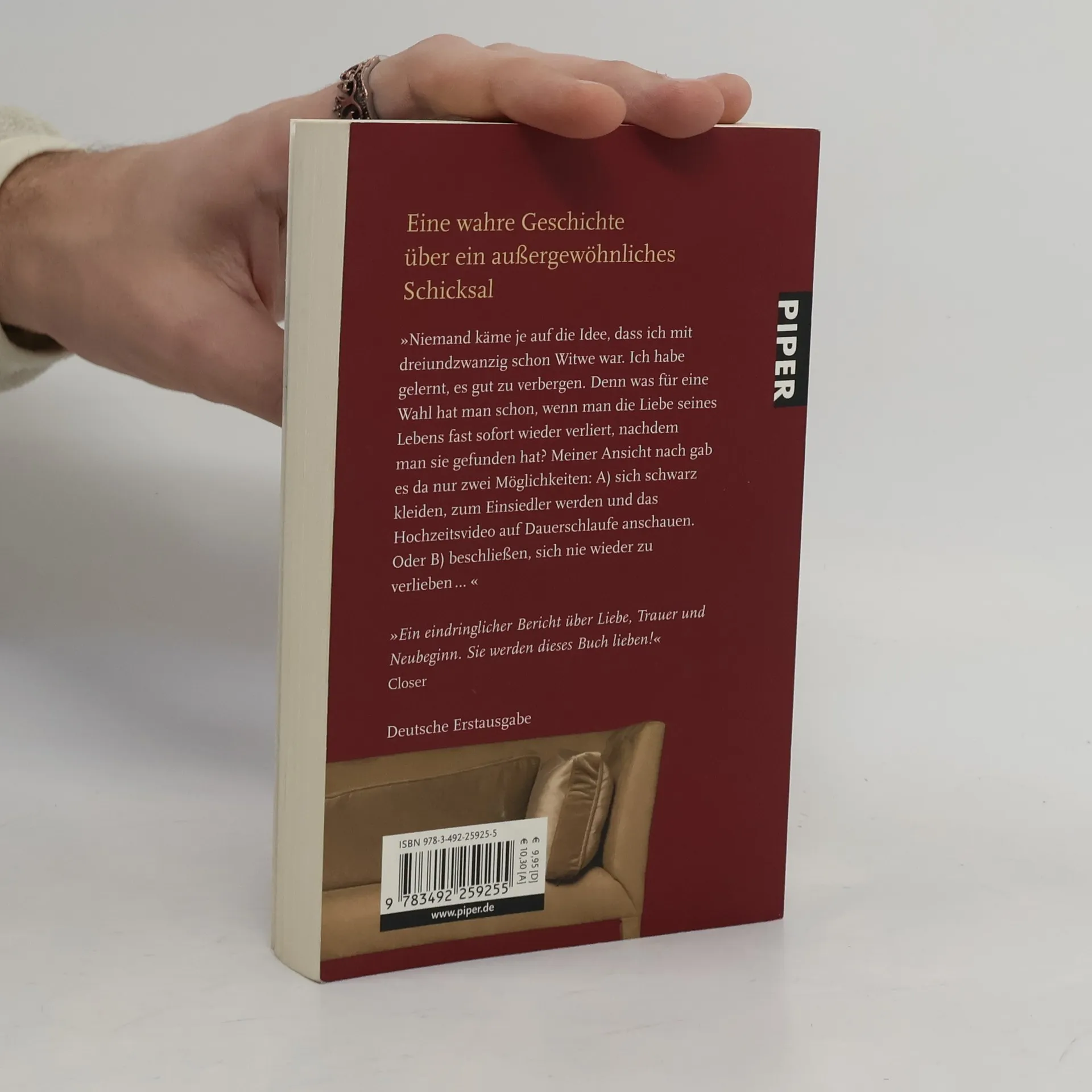 'Niemand käme je auf die Idee, dass ich mit dreiundzwanzig schon Witwe war. Ich habe gelernt, es gut zu verbergen. Denn was für eine Wahl hat man schon, wenn man die Liebe seines Lebens fast sofort wieder verliert, nachdem man sie gefunden hat? Meiner Ansicht nach gab es da nur zwei Möglichkeiten: A) sich schwarz kleiden, zum Einsiedler werden und das Hochzeitsvideo auf Dauerschlaufe anschauen. Oder B) beschließen, sich nie wieder zu verlieben, und eine einfache, unkomplizierte Alternative wählen: Sex. '
