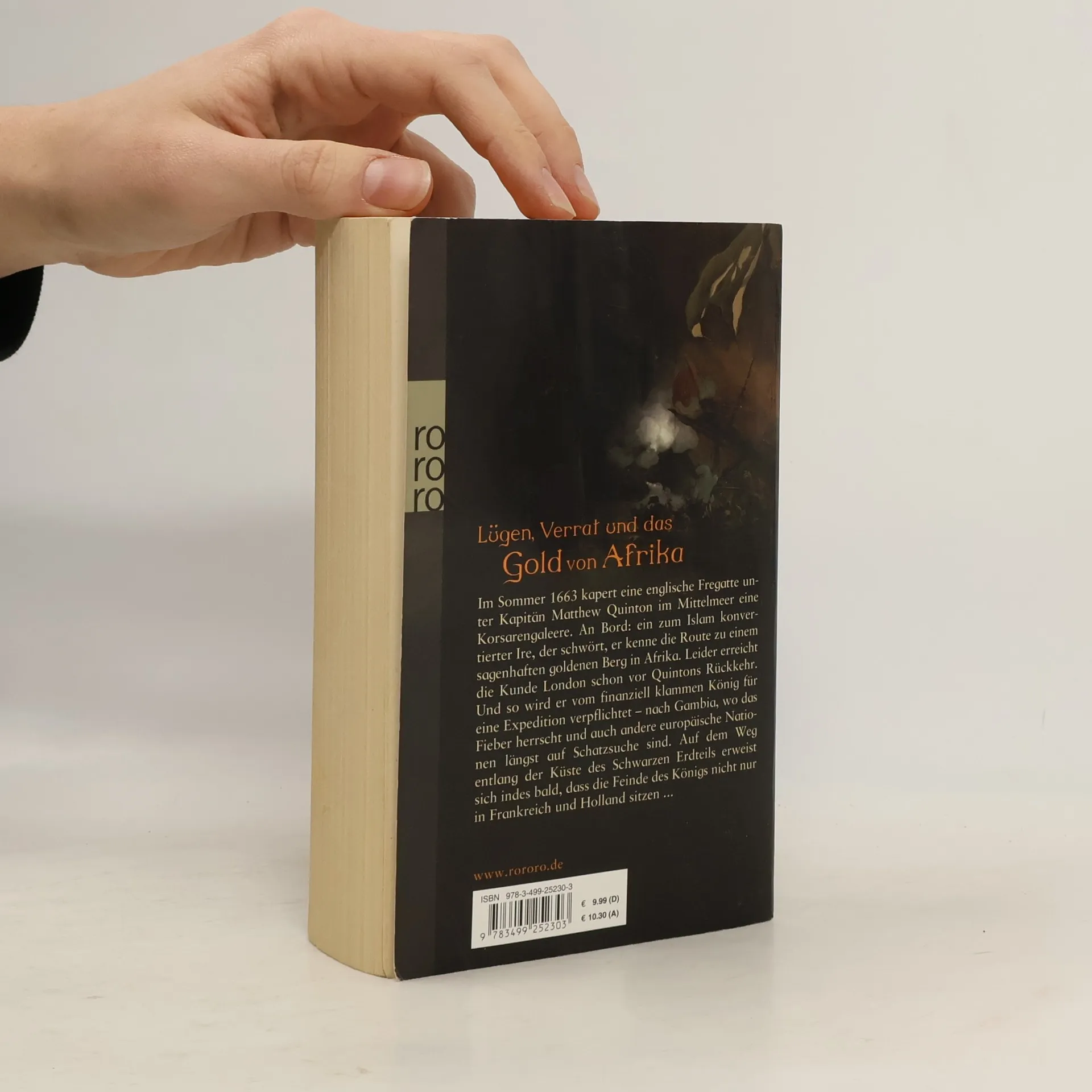 Lügen, Verrat und das Gold von Afrika. Im Sommer 1663 kapert eine englische Fregatte unter Kapitän Matthew Quinton im Mittelmeer eine Korsarengaleere. An Bord: ein zum Islam konvertierter Ire, der schwört, er kenne die Route zu einem sagenhaften goldenen Berg in Afrika. Leider erreicht die Kunde London schon vor Quintons Rückkehr. Und so wird er vom finanziell klammen König für eine Expedition verpflichtet – nach Gambia, wo das Fieber herrscht und auch andere europäische Nationen längst auf Schatzsuche sind. Auf dem Weg entlang der Küste des Schwarzen Erdteils erweist sich indes bald, dass die Feinde des Königs nicht nur in Frankreich und Holland sitzen ...