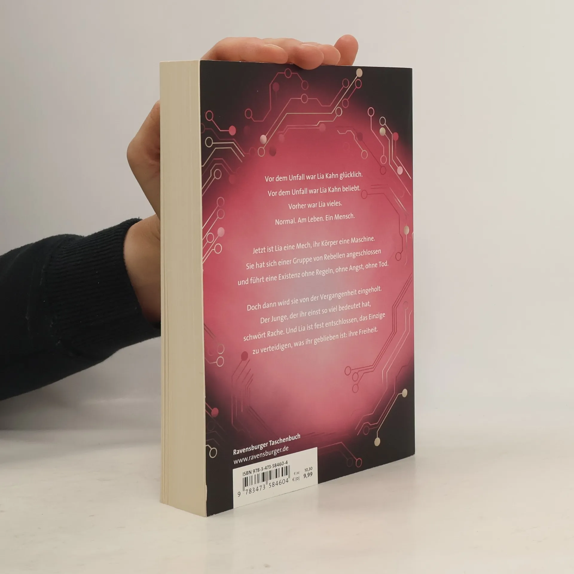 Vor dem tödlichen Unfall war Lia glücklich. Beliebt. Verliebt. Ein Mensch. Jetzt existiert Lia Kahn nur noch in einer menschenähnlichen Maschine, in der ihr Bewusstsein gespeichert ist. Sie ist ein „Mech“. Lia hat ihr Schicksal akzeptiert und sogar Gefallen an der sorgenfreien Existenz als Mech gefunden: Wer nichts mehr zu verlieren hat, braucht auch nichts zu fürchten. Aber die Angst kehrt zurück, denn ausgerechnet der Junge, den sie einst liebte, will alle Mechs auslöschen.