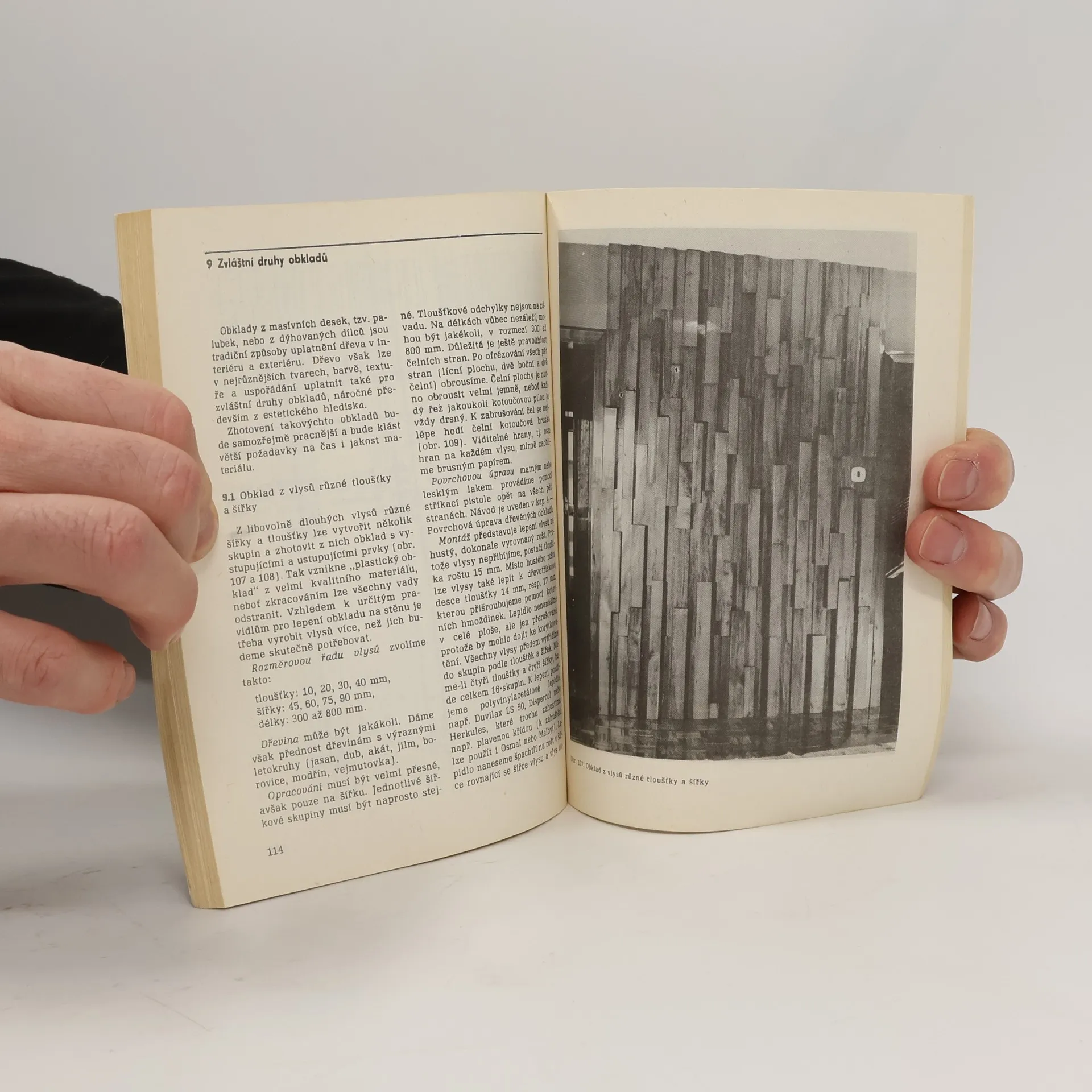 Kniha obsahuje různé způsoby uplatnění dřeva jako obkladového materiálu v interiéru i exteriéru. Popisuje vlastnosti dřeva, jeho povrchovou úpravu, přípravu podkladu pro obkladové dílce, obklady z masivních desek, dýhovaných dílců, aglomerovaných desek a atypické formy obkladů.