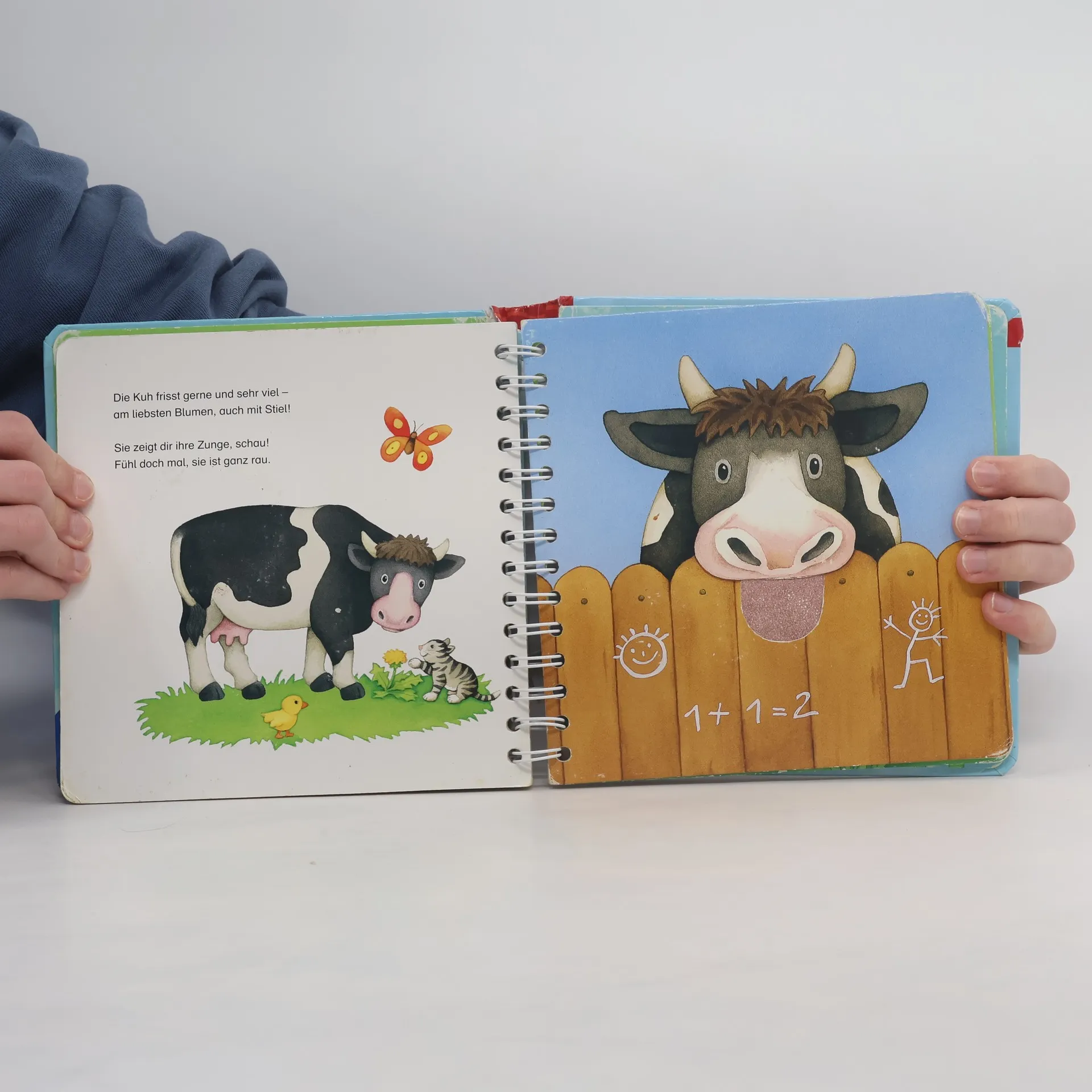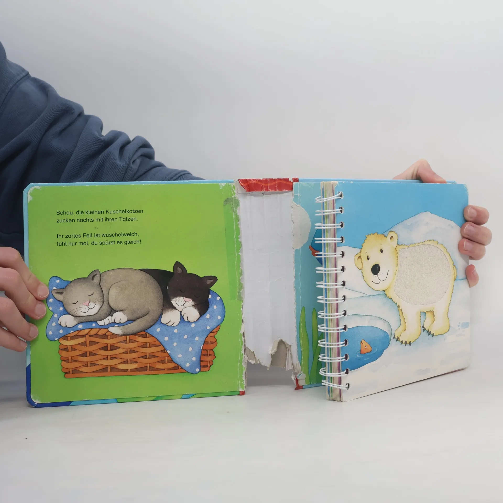 Großer Fühlspaß für die Allerkleinsten! Hier können kleine Kinderhände verschiedene Streicheltiere entdecken und fühlen. Begleitet von kurzen Reimen lädt das großformatige Fühlbuch zum Anschauen, Streicheln und Spielen ein. Komm und streichle das kuschelige Fell der kleinen Schmusekatze! Kraule das Bärchen an den Ohren! Und entdecke, wie rau sich die Zunge der Kuh anfühlt! In diesem Fühlbuch erleben Kinder ab 18 Monaten ihre ersten Lieblingstiere hautnah. Neun große und abwechslungsreiche Stoffelemente und lustige Reime laden zum Anfassen, Fühlen und Spielen ein. Dank der Spiralbindung und der stabilen Buchdecke liegt das Buch gut offen. So können es auch kleine Babys schon selbstständig ansehen.