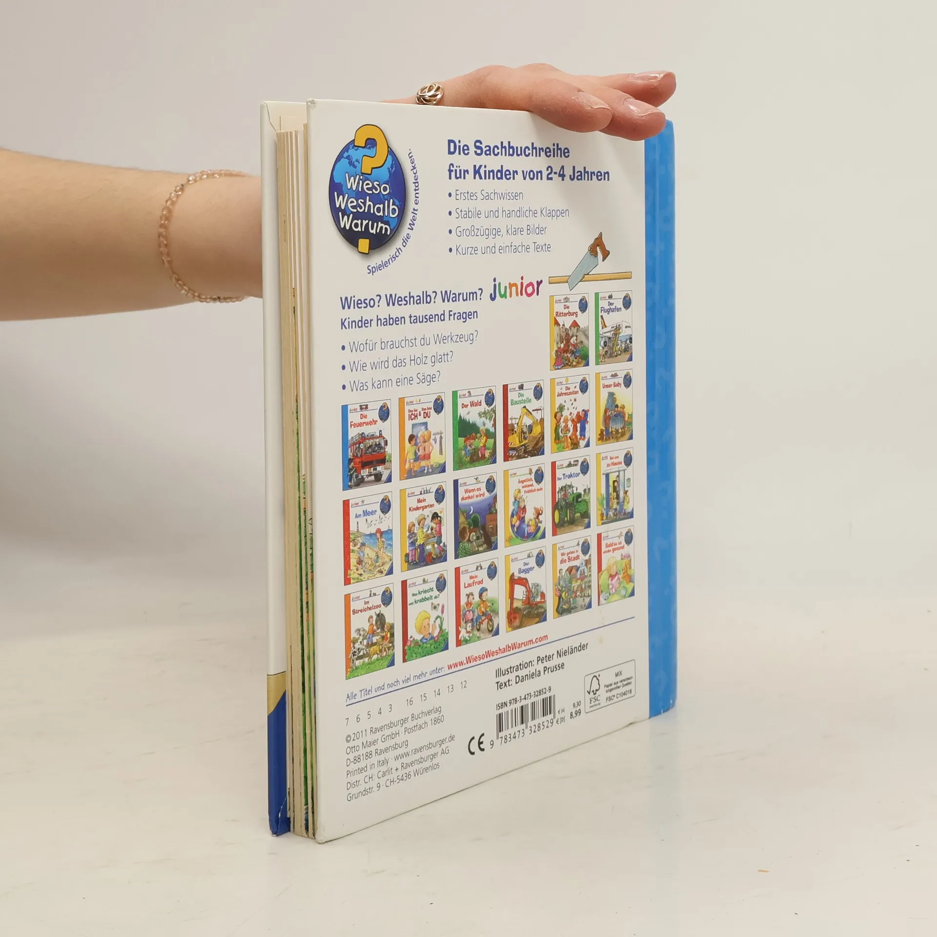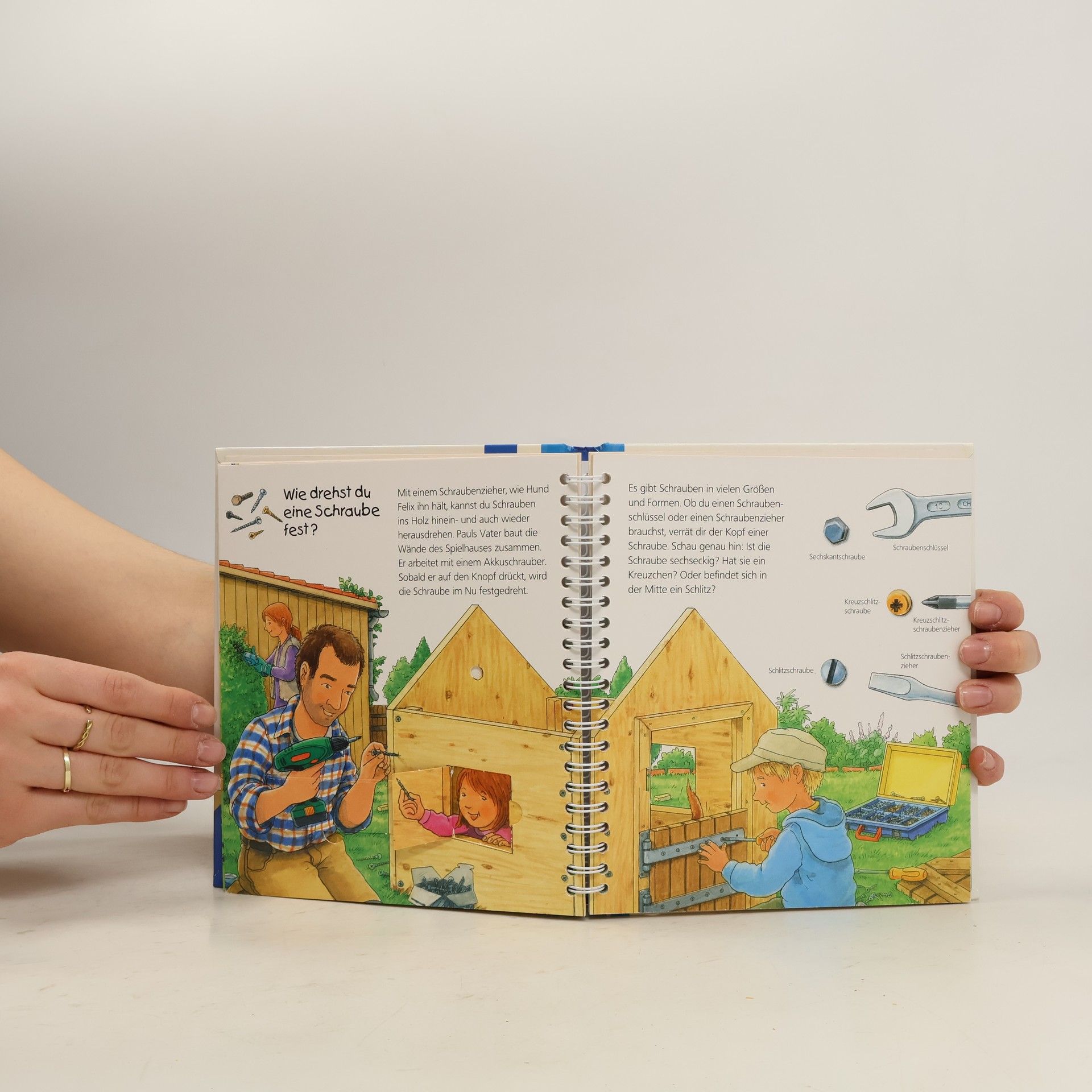 Sägen, Hämmern, Bohren und Schrauben – das macht großen Spaß, will aber auch gelernt sein. Paul und seine jüngere Schwester Lea bauen zusammen mit ihrem Papa ein Spielhaus für den Garten. Dafür brauchen sie verschiedenes Werkzeug. Was kann eine Säge? Wie wird Holz glatt gemacht? Womit dreht man Schrauben fest? Klappen vermitteln wie Hammer, Feile, Wasserwaage und Co. funktionieren. Und wie sieht dann das fertige Spielhaus aus? Das erfahren Kinder am Ende des Buches. Wieso? Weshalb? Warum? junior Die Sachbuchreihe für Kinder von 2-4 Jahren Jeden Tag entdecken Kinder etwas Neues – und haben viele Fragen. Wann kommt die Feuerwehr? Was machen die Tiere im Winter? Warum muss ich Zähne putzen? Die beliebte Sachbuchreihe Wieso? Weshalb? Warum? junior beantwortet die Fragen der Kinder auf Augenhöhe. Sie beleuchtet unterschiedlichste Themen aus ihrer Alltags- und Interessenswelt altersgerecht und mit viel Liebe zum Detail. Die Reihe ist speziell auf kleine Hände und die Bedürfnisse der Kleinsten angepasst. Klare und liebevolle Bilder, kurze Sachtexte sowie handliche Klappen, die Bewegungen veranschaulichen und überraschende und lustige Einblicke gewähren, ermöglichen Kindern, sich ihre Themen selbst zu erschließen. Der Spaß am eigenhändigen Entdecken, die liebevolle Umsetzung und die hochwertige Ausstattung garantieren langanhaltende Freude an jedem Buch.