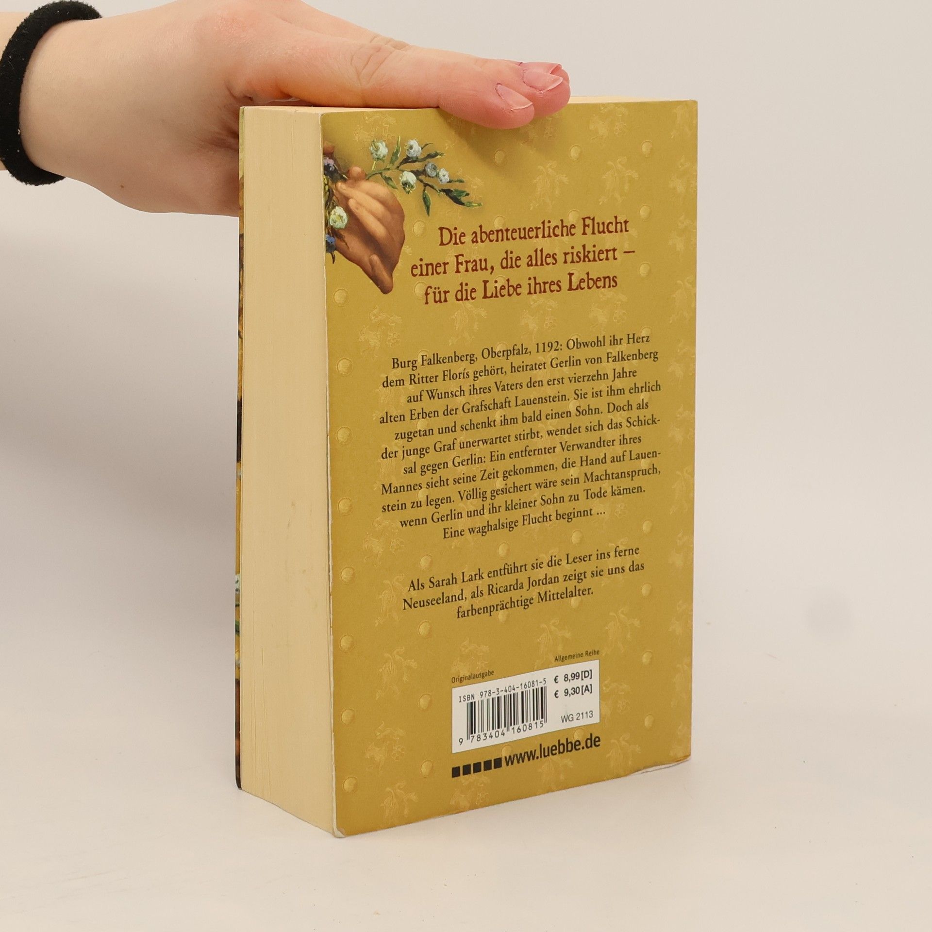 Burg Falkenberg, Oberpfalz, 1192: Obwohl ihr Herz dem Ritter Florís gehört, heiratet Gerlin von Falkenberg auf Wunsch ihres Vaters den erst vierzehn Jahre alten Erben der Grafschaft Lauenstein. Sie ist ihm ehrlich zugetan und schenkt ihm bald einen Sohn. Doch als der junge Graf unerwartet stirbt, wendet sich das Schicksal gegen Gerlin: Ein entfernter Verwandter ihres Mannes sieht seine Zeit gekommen, die Hand auf Lauenstein zu legen. Völlig gesichert wäre sein Machtanspruch, wenn Gerlin und ihr kleiner Sohn zu Tode kämen. Eine waghalsige Flucht beginnt ... Bestsellerautorin Sarah Lark schreibt als Ricarda Jordan.
