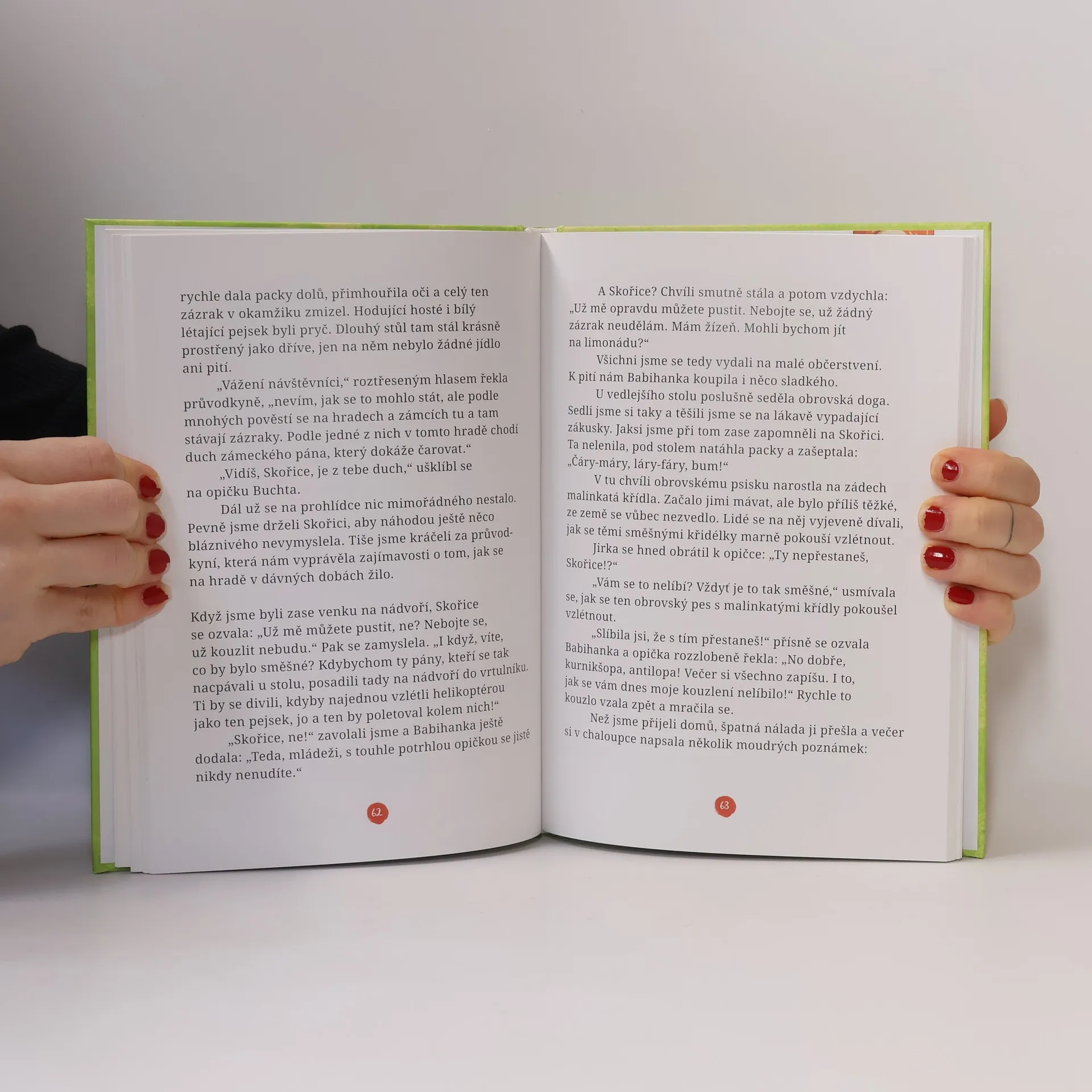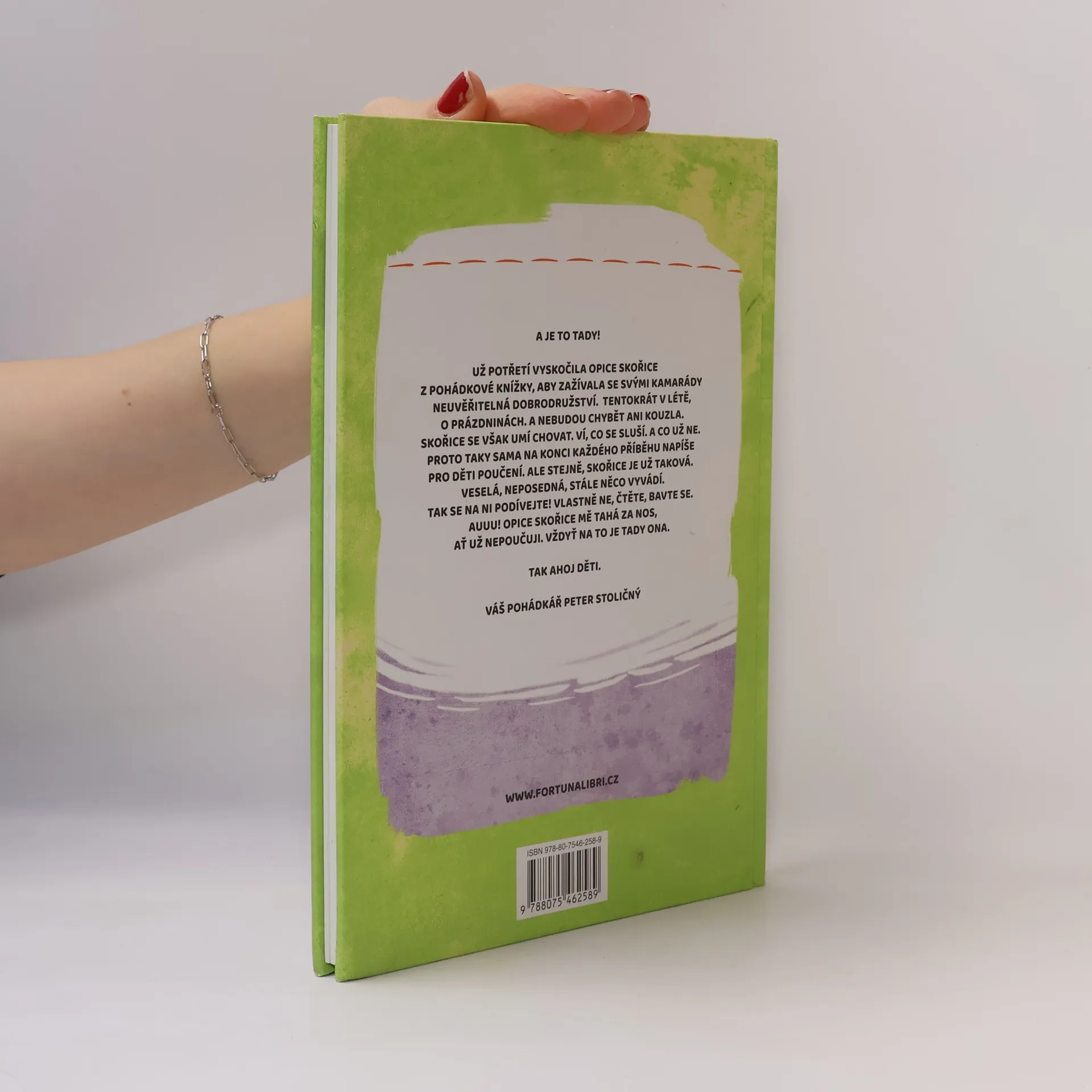 A je to tady! Už potřetí vyskočila opice Skořice z pohádkové knížky, aby zažívala se svými kamarády neuvěřitelná dobrodružství. Tentokrát v létě, o prázdninách. A nebudou chybět ani kouzla. Skořice se však umí chovat. Ví, co se sluší. A co už ne. Proto taky sama na konci každého příběhu napíše pro děti poučení. Ale stejně, Skořice je už taková. Veselá, neposedná, stále něco vyvádí. Tak se na ni podívejte! Vlastně ne, čtěte, bavte se. Auuu! Opice Skořice mě tahá za nos, ať už nepoučuji. Vždyť na to je tady ona.