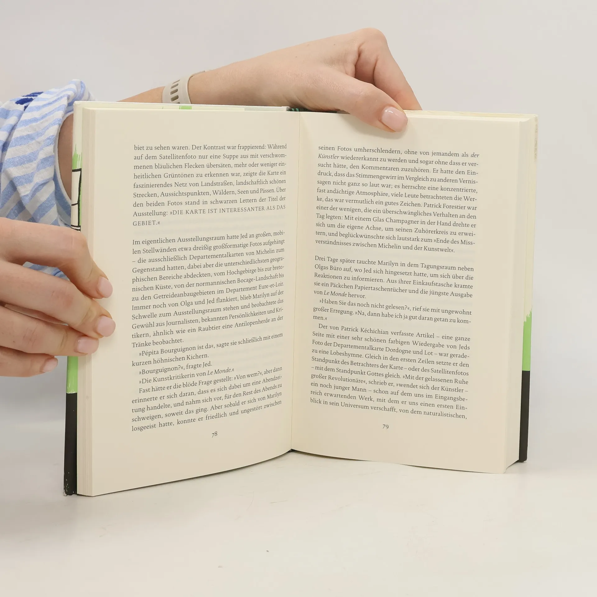Jed Martin ist Künstler. In seinen Arbeiten stellt er Straßenkarten und Satellitenbilder einander gegenüber. Zum Durchbruch verhelfen ihm jedoch Porträts. Einer der Porträtierten: „Michel Houellebecq, Schriftsteller“. In der Folge wird Jed zu einem der wichtigsten Gegenwartskünstler, Kritik und Publikum liegen ihm zu Füßen, die hübsche Olga verliebt sich in ihn. Doch dann geschieht ein grausames Verbrechen: ein Doppelmord, verübt auf so bestialische Weise, dass selbst die Einsatzkräfte schockiert sind. Im Zuge der Ermittlungen wird auch Jed befragt …Die Kunst, das Geld, die Arbeit, die Liebe zu den Frauen und den Vätern, das Leben bis hin zum – manchmal gewaltsamen – Tod: Das sind die Themen dieses großen Gesellschaftsromans, der in Frankreich als literarische Sensation gefeiert, wurde mit dem Prix Goncourt, dem renommiertesten Literaturpreis des Landes, ausgezeichnet wurde. Karte und Gebiet ist ein doppelbödiges, selbstironisches Vexierspiel, ein altmeisterlicher Geniestreich von überraschender Zartheit, ein gewichtiger Roman, der zugleich wie schwerelos wirkt. Der einstige agent provocateur und selbsternannte „Volksfeind“ erscheint darin gereift und auf so humorvolle Weise melancholisch wie nie. Karte und Gebiet wird nicht nur die Freunde Houellebecqs begeistern, sondern auch manch einen seiner Feinde.
