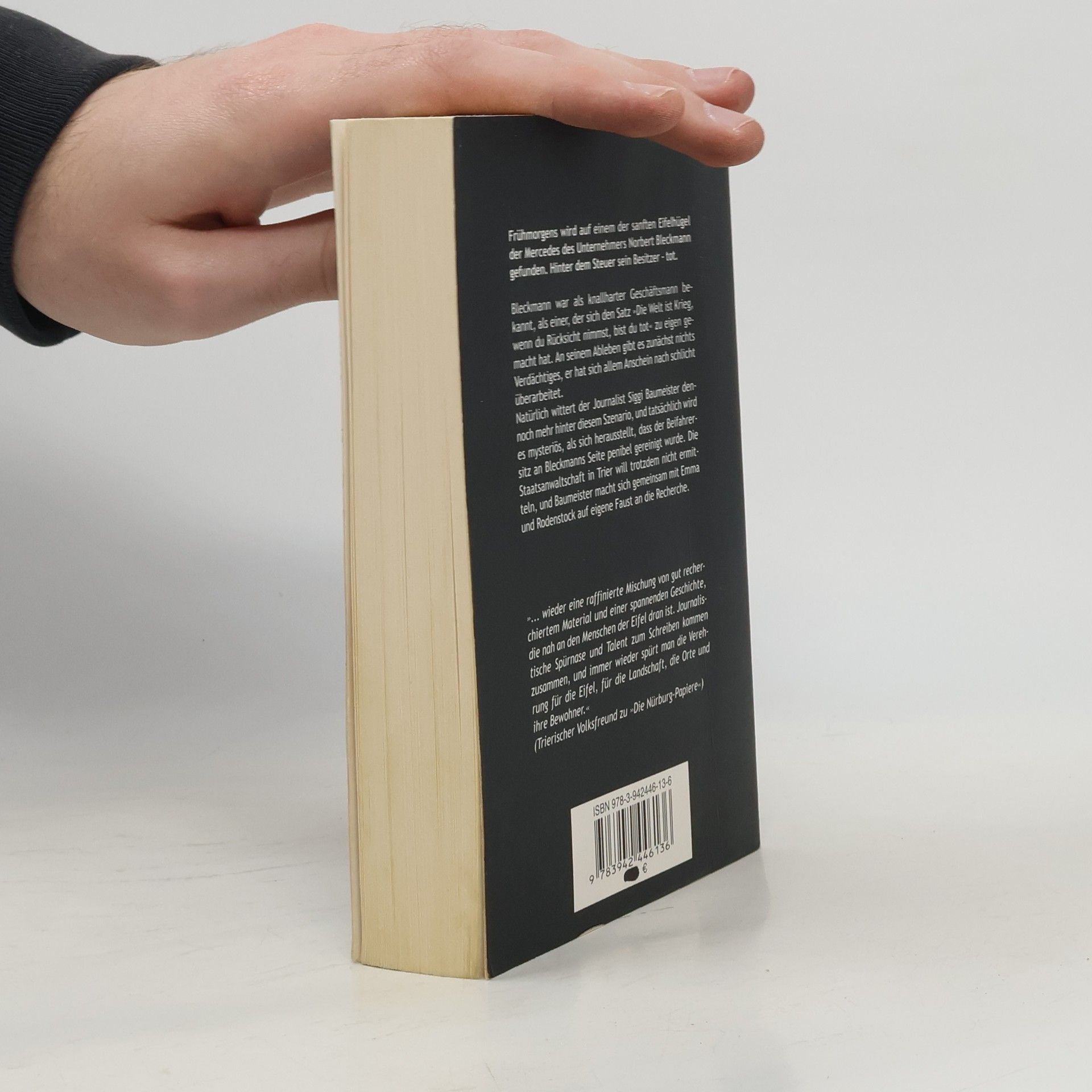 Von 2 eher unspektakulären Todesfällen lassen sich der Journalist Siggi Baumeister und seine Freundin, die ehemalige Kriminalbeamtin Rodenstock, zunächst nicht aufscheuchen. Doch die Äusserungen der jungen Witwe lassen sie vermuten, dass der Eifel wieder einmal Gefahr droht.