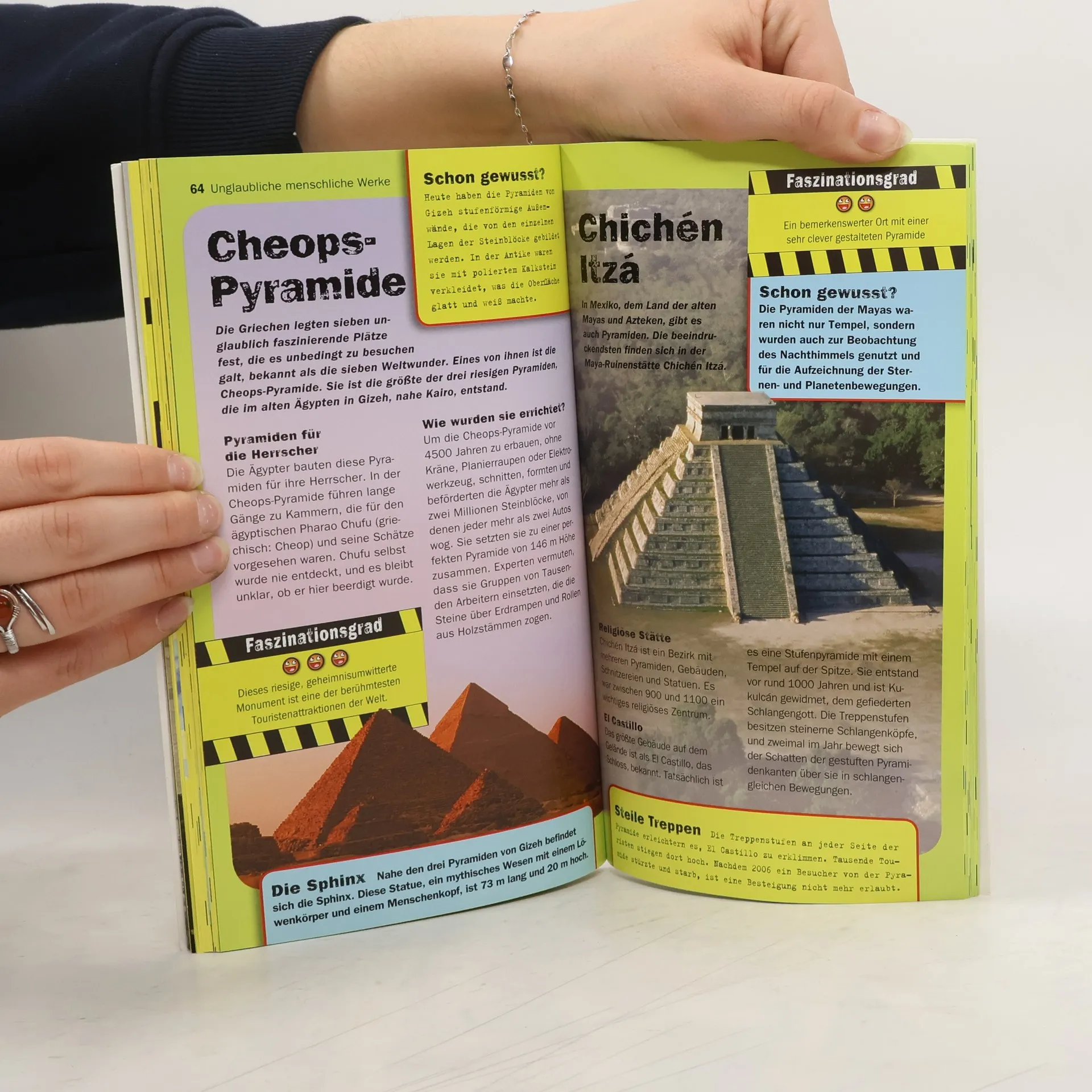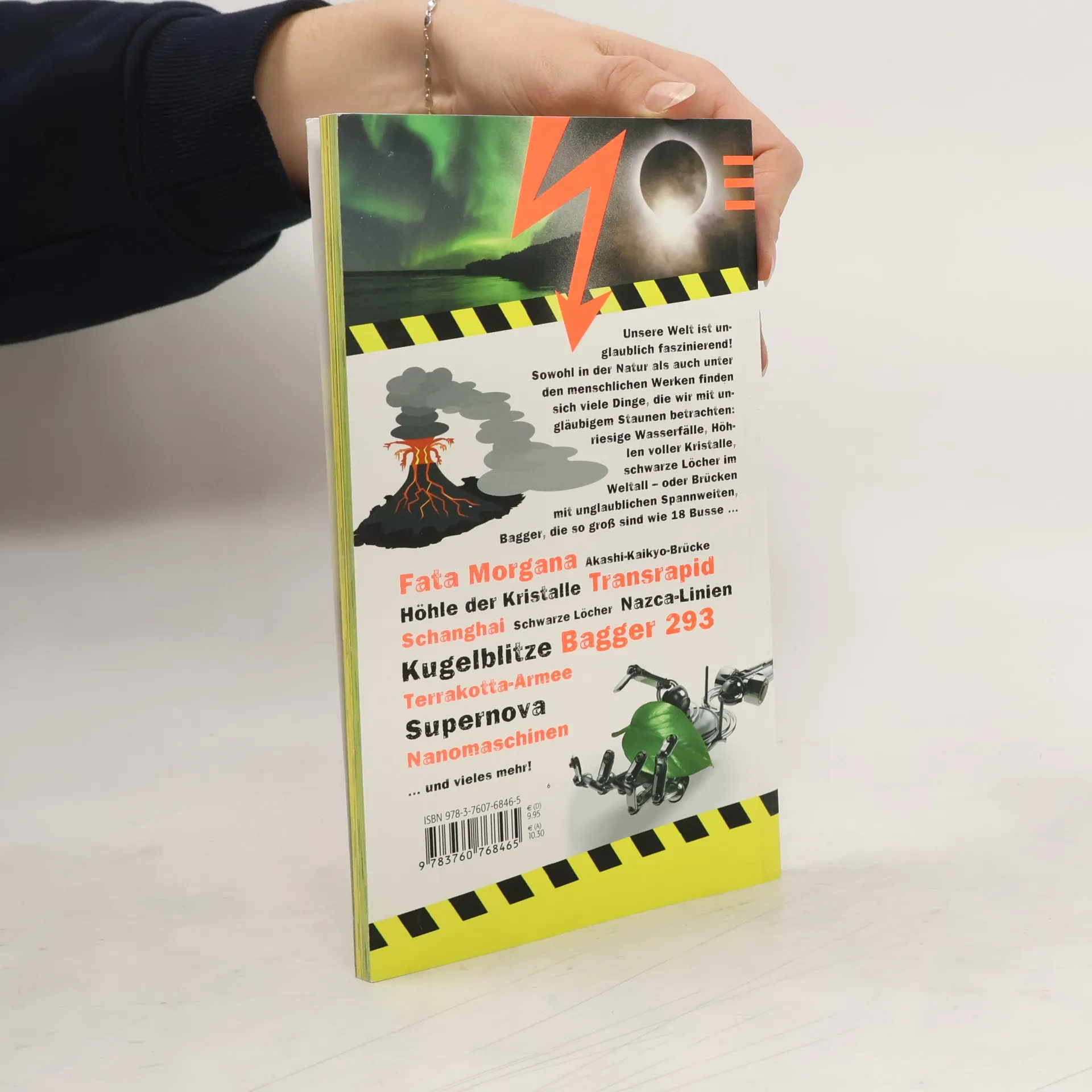 Ob im Wasser, zu Lande, in der Luft oder gar außerirdisch: Mache dich gefasst auf die 100 unglaublichsten Naturwunder und von Menschenhand geschaffenen Werke. Von den größten Kreaturen der Meere geht es über explodierende Vulkane und himmelhohe Wasserfälle bis zu den irrsinnigsten Maschinen; inklusive einer Fahrt in der rasantesten Achterbahn der Welt. Das ist cool, krass, komplett umwerfend – informative Texte und sensationelle Fotos bringen selbst »abgebrühte« Leser zum Staunen!