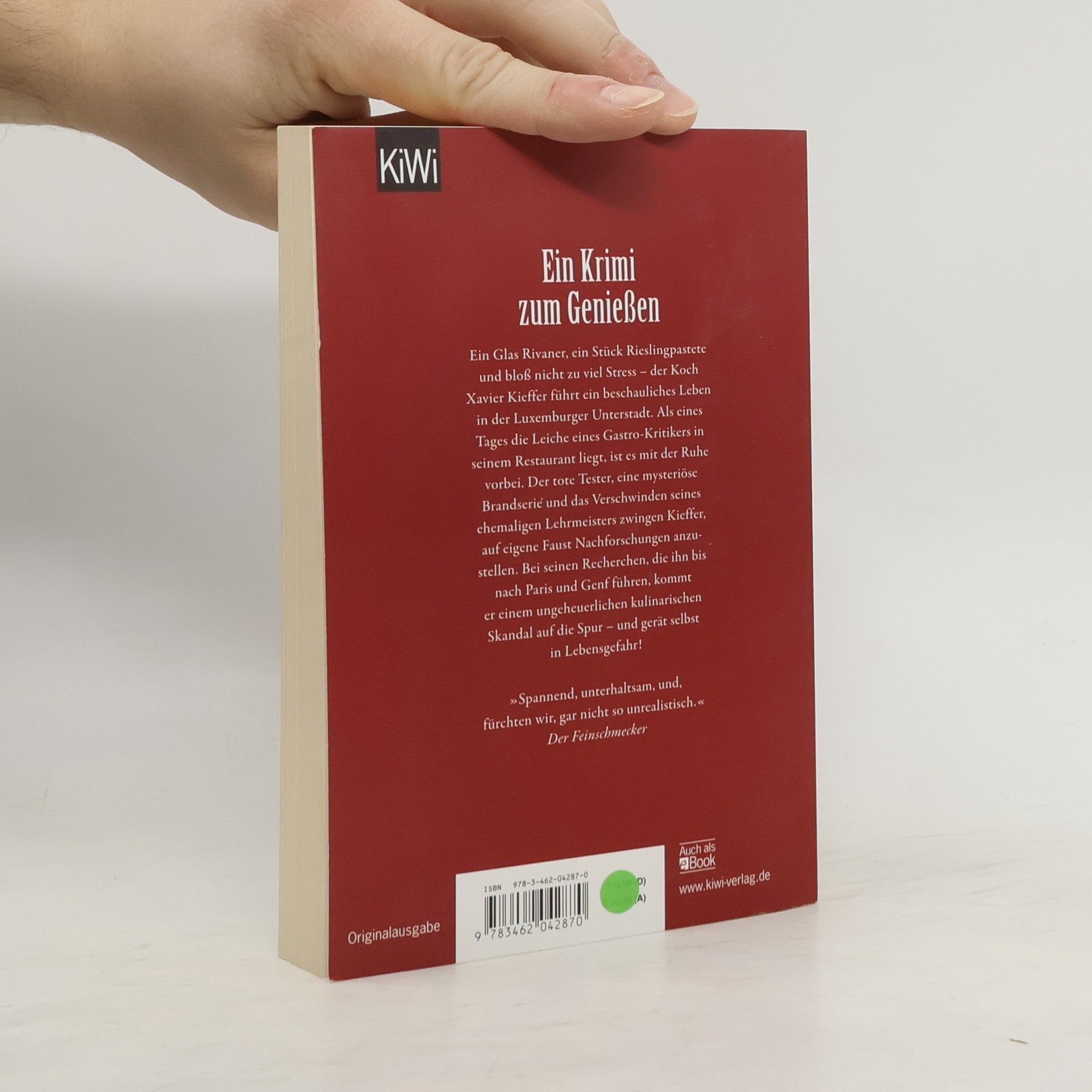 Ein Krimi zum Genießen! Der erste Fall für den kulinarischen Ermittler Xavier Kieffer. Der ehemalige Sternekoch Xavier Kieffer hat der Haute Cuisine abgeschworen und betreibt in der Luxemburger Unterstadt ein kleines Restaurant, wo er seinen Gästen Huesenziwwi, Bouneschlupp und Rieslingpaschtéit serviert. Doch dann bricht eines Tages ein renommierter Pariser Gastro-Kritiker tot in seinem Restaurant zusammen – und plötzlich steht Kieffer unter Mordverdacht. Als dann noch sein alter Lehrmeister spurlos verschwindet, beschließt der Luxemburger, die Ermittlungen selbst in die Hand zu nehmen; sie führen ihn bis nach Paris und Genf. Dabei stößt er auf eine mysteriöse, außergewöhnlich schmackhafte Frucht, auf gewissenlose Lebensmittelkonzerne und egomanische Fernsehköche. Immer tiefer taucht Kieffer in die von Konkurrenzkampf und Qualitätsdruck beherrschte Gourmetszene ein – und erkennt, was auf dem Spiel steht.