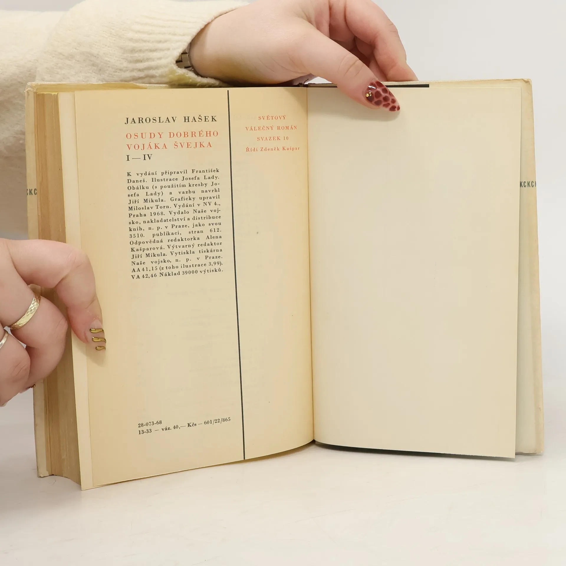 První díl "Zázemí" ze třísvazkového vydání. Sotva máme jiného spisovatele, jehož dílo kdy získalo takové proslulosti jako Haškovy "Osudy dobrého vojáka Švejka za světové války". Není to jen pro lidový, nádherný humor vyprávění, které rozesměje největšího škarohlída - je to též proto, že nesmrtelný hrdina Švejk je symbolem člověka z lidu, který si nalezl svou taktiku proti obludnosti války, proti představitelům zahnívajícího c. k. mocnářství, zkostnatělým ouřadům, pokryteckým velebníčkům, nadutým, omezeným a hrabivým důstojníkům, krátce proti všem služebníkům těch, kteří z touhy po zisku hnaly lid na válečné jatky.