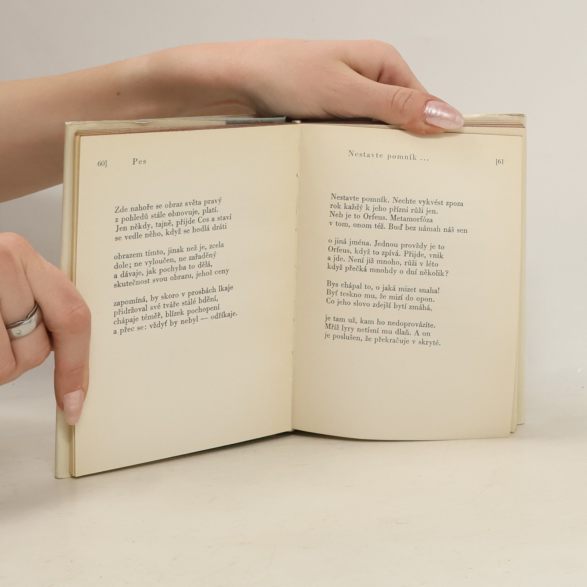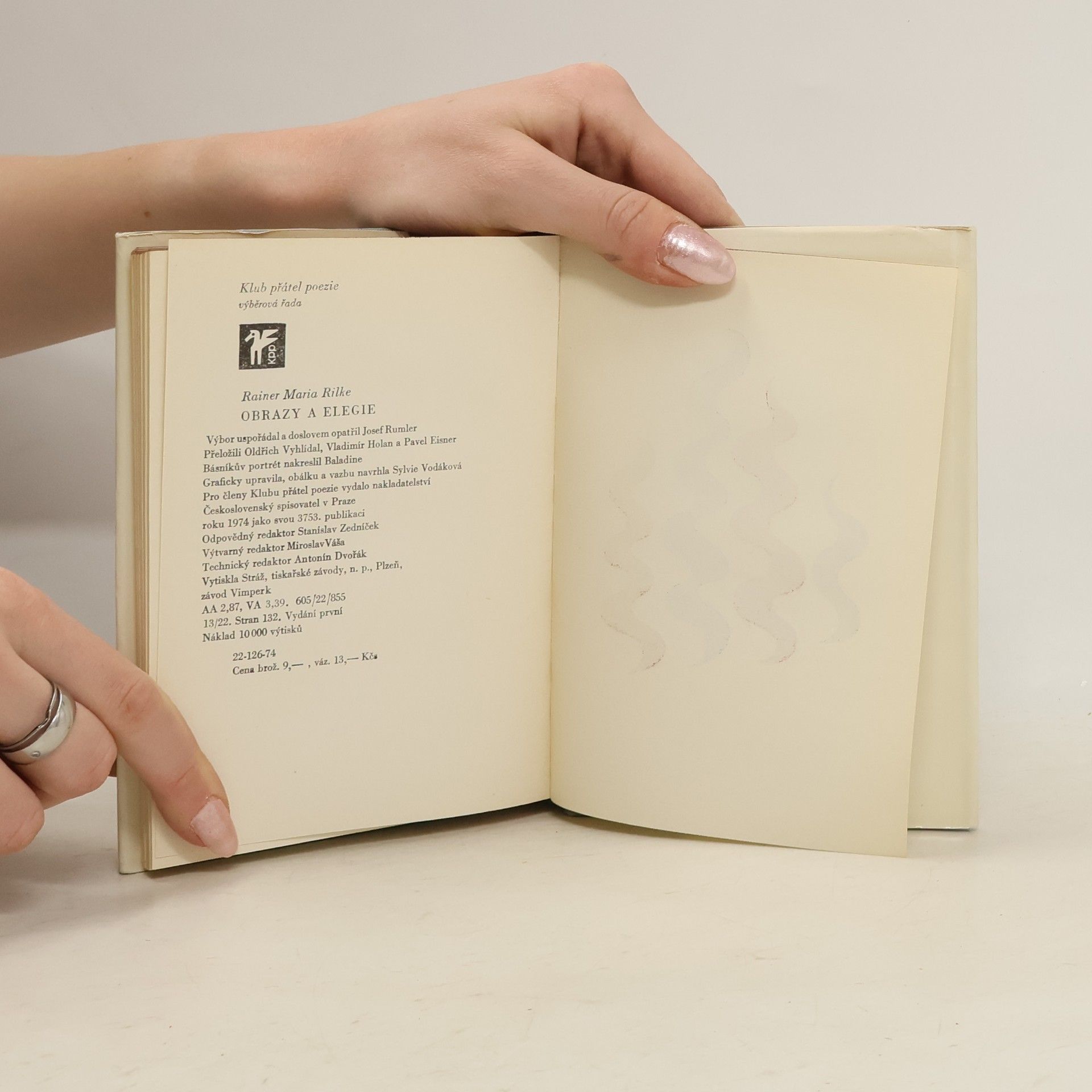 Výbor z Rilkeho básní uspořádaný Josefem Rumlerem v překladech Oldřicha Vyhlídala, Vladimíra Holana a Pavla Eisnera. Výbor z veršů vynikajícího moderního lyrika vychází v předvečer stého výročí básníkova narození. Je pokusem o ověření autorovy tvorby v novém kulturním kontextu. Obsahuje pod názvem Z domova verše o Praze a verše inspirované českou kulturní historií v překladu O. Vyhlídala, pod názvem Obrazy výběr z někdejších překladů V. Holana a překlad Duinských elegií od P. Eisnera.
