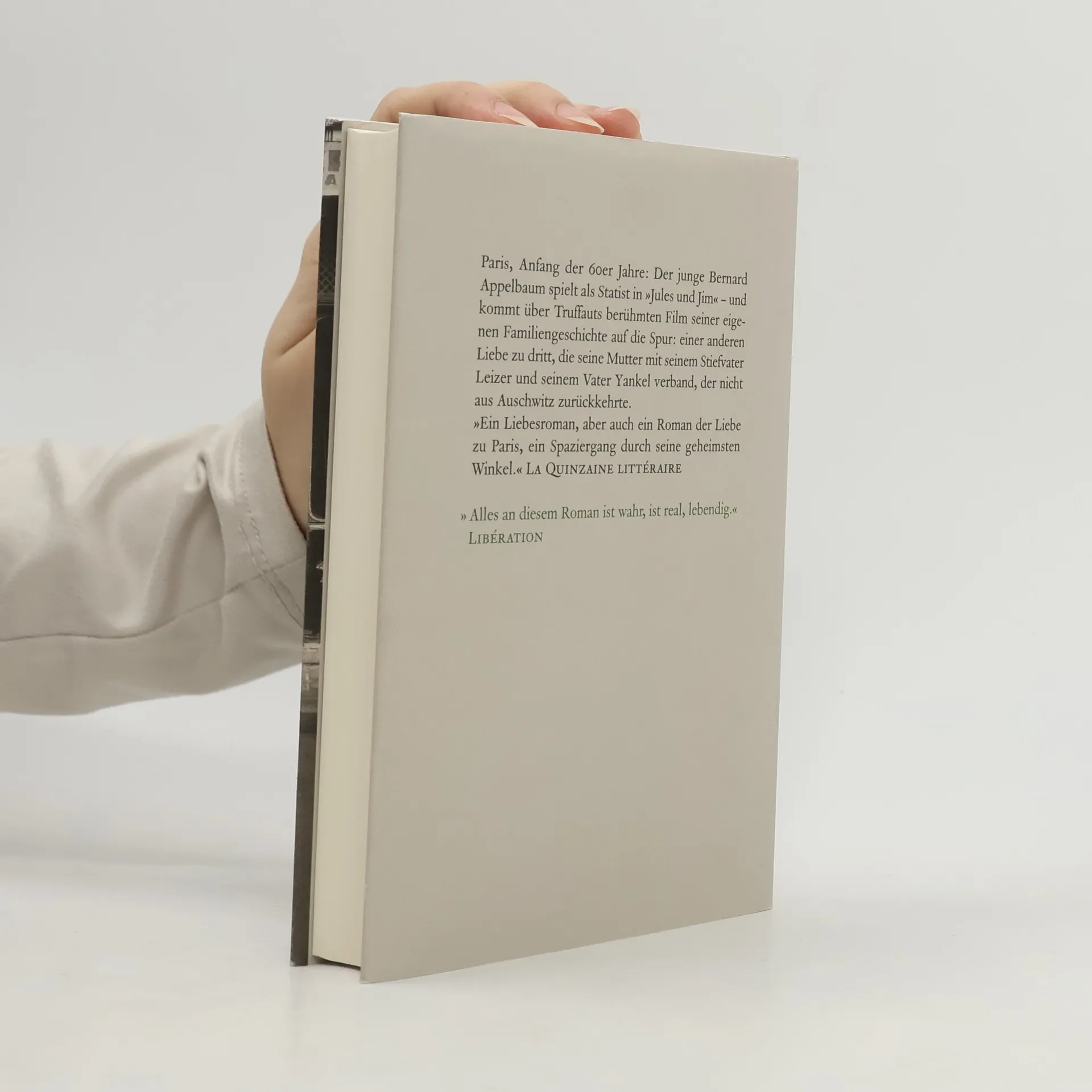 Paris, Anfang der 60er Jahre: Der junge Bernard Appelbaum bekommt eine Statistenrolle in »Jules und Jim« – durch Truffauts Assistenten, einen gewissen Robert Bober, der nach dem Krieg sein Betreuer in einem Ferienlager für jüdische Kinder war. Auch wenn die Caféhausszene mit Bernard später gestrichen wird: der Film greift tief in sein Leben ein. Denn nach der Kinopremiere erzählt ihm seine Mutter die Geschichte einer anderen Liebe zu dritt, die sie mit seinem Vater Yankel, der nicht aus Auschwitz zurückkam, und Leizer, dem früh verstorbenen Stiefvater, verband. Bernard macht sich auf die Suche: nach seinen eigenen Ursprüngen, aber auch nach den Spuren einer verdrängten Geschichte, eines von Krieg und Kollaboration gezeichneten Paris. In einer schlichten Sprache von unerhörter Eindringlichkeit hat Robert Bober ein Buch der Erinnerung geschrieben, in dem die große Geschichte und persönlichste Erinnerungen sich kreuzen und auf vielfältigste Weise ineinander laufen: lebendig und nostalgisch, traurig und lustig zugleich, wie die Bilder von Robert Doisneau.