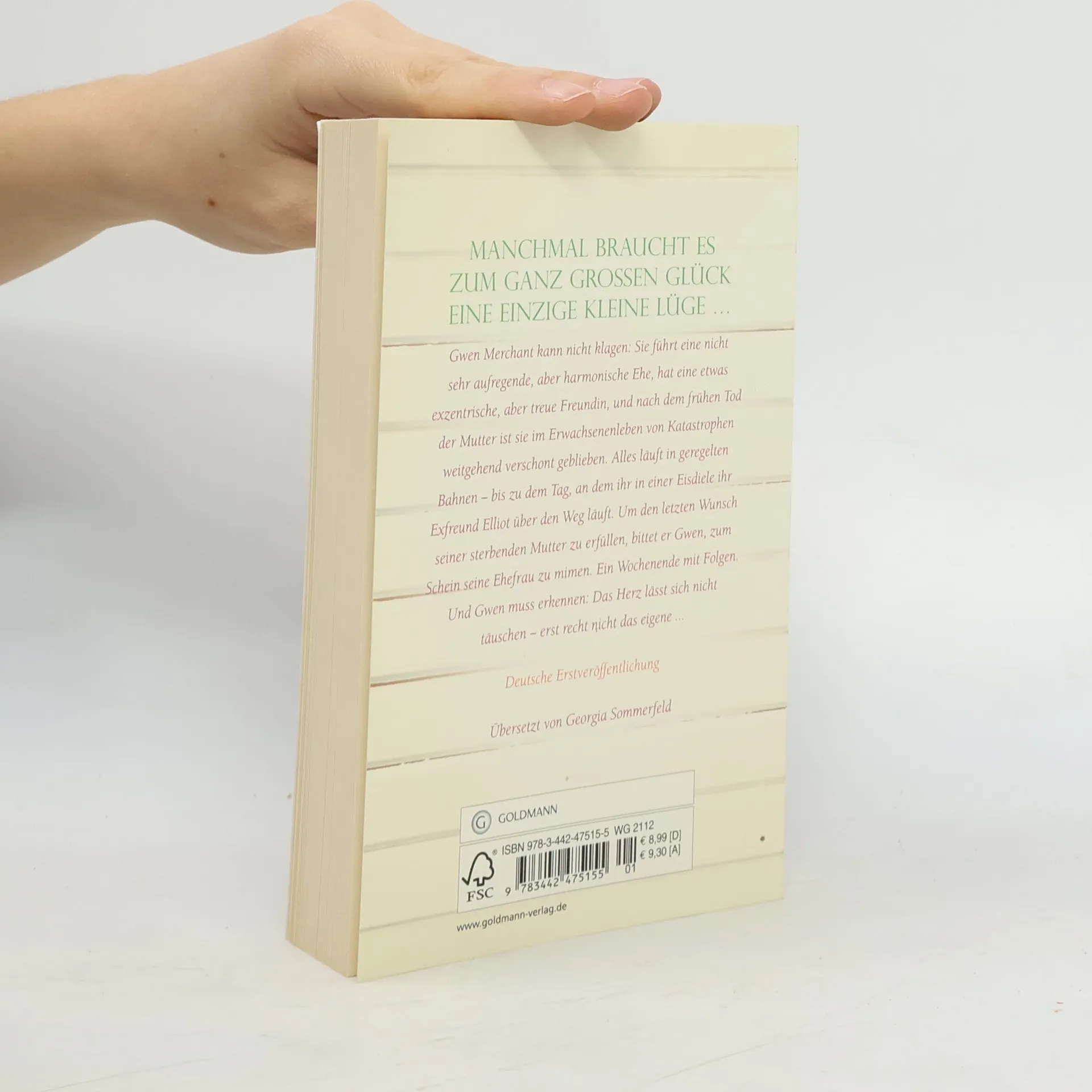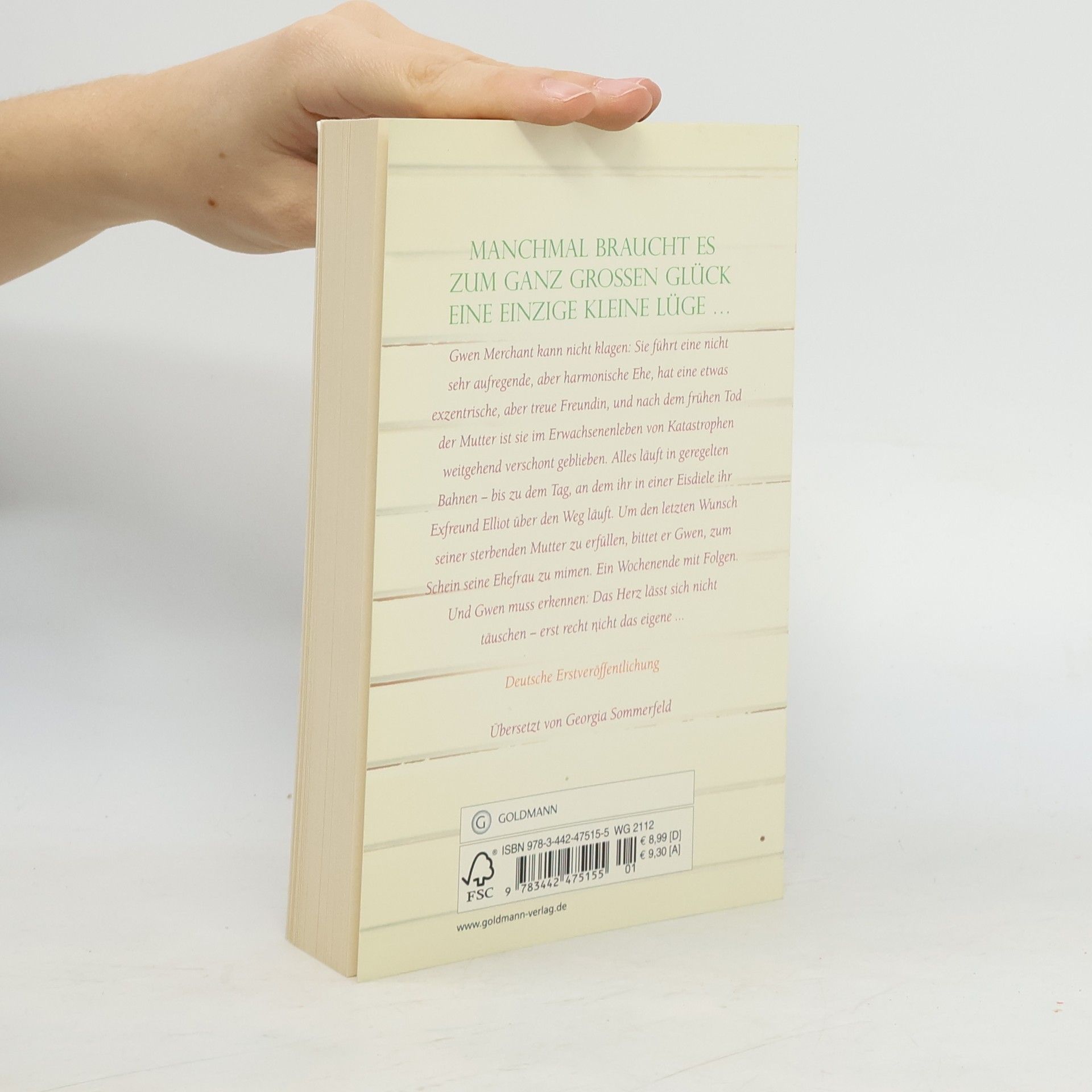 Manchmal braucht es zum ganz großen Glück eine einzige kleine Lüge Gwen Merchant kann nicht klagen: Sie führt eine nicht sehr aufregende, aber harmonische Ehe, hat eine etwas exzentrische, aber treue Freundin, und nach dem frühen Tod der Mutter ist sie im Erwachsenenleben von Katastrophen verschont geblieben. Alles läuft in geregelten Bahnen - bis zu dem Tag, an dem ihr in einer Eisdiele ihr Exfreund Elliot über den Weg läuft. Um den letzten Wunsch seiner sterbenden Mutter zu erfüllen, bittet er Gwen, zum Schein seine Ehefrau zu mimen - ein Wochenende mit Folgen. Und Gwen muss erkennen: Das Herz lässt sich nicht täuschen - erst recht nicht das eigene.