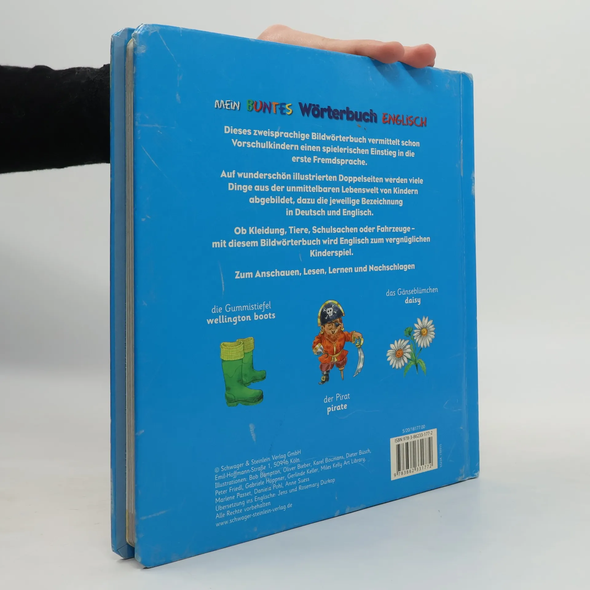 Mit diesem detailreich und liebevoll illustrierten Bildwörterbuch wird der Grundwortschatz Englisch für die Vorschule mit bekannten Begriffen aus dem Kinderalltag spielerisch gefördert. Ansprechende farbige Illustrationen wecken die kindliche Neugier.