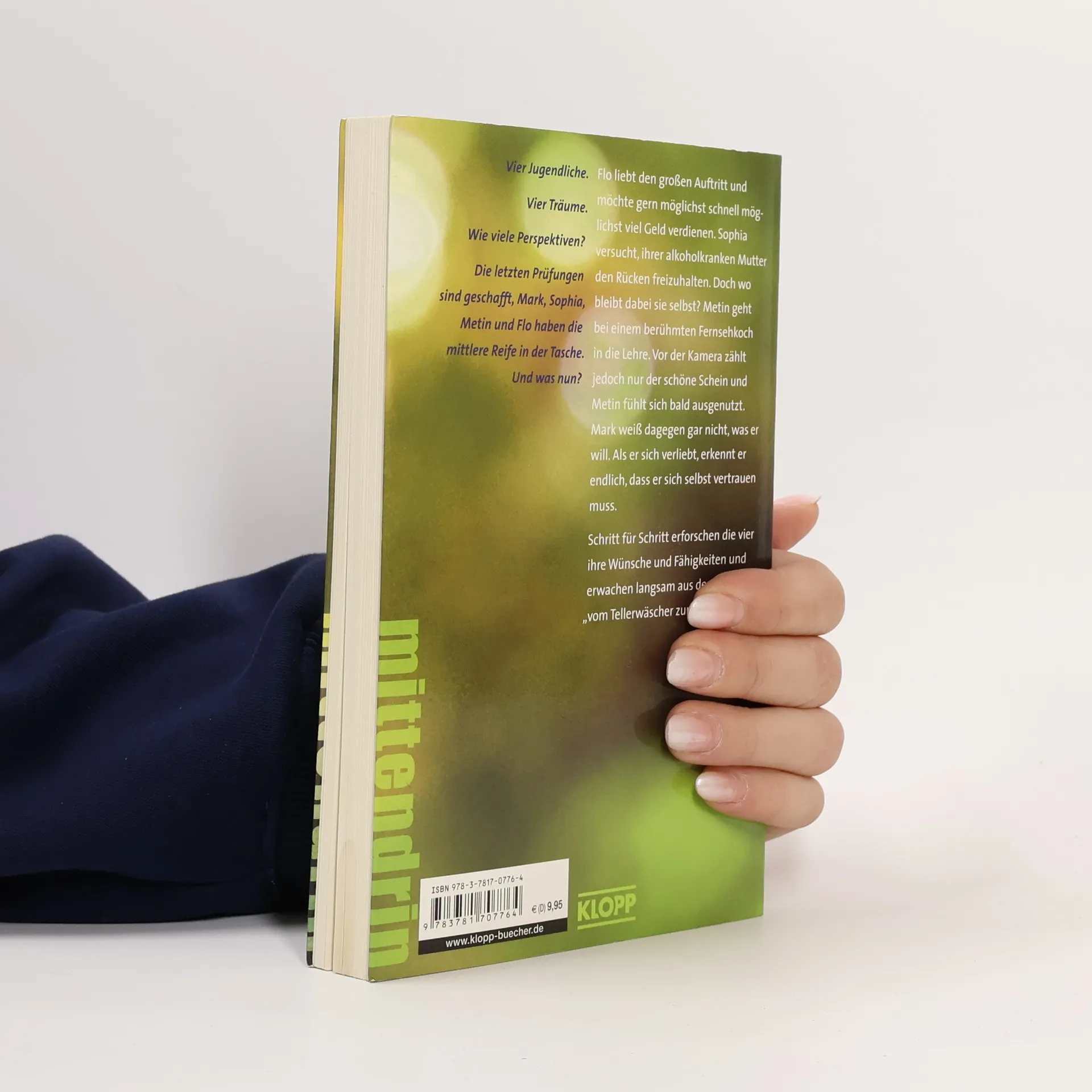 Schulabschluß geschafft – was nun? Die letzten Prüfungen sind geschafft, Mark, Sophia, Metin und Flo haben die mittlere Reife in der Tasche – und eine ungewisse Zukunft vor sich. Flo möchte gern möglichst schnell möglichst viel Geld verdienen. Bloß wie? Sophia versucht, ihrer alkoholkranken Mutter den Rücken freizuhalten. Wo bleibt sie selbst dabei? Metin wird bei einem berühmten Fernsehkoch in die Lehre gehen. Aber er fühlt sich dort bald ausgenutzt. Mark weiß noch gar nicht, was er will. Schritt für Schritt erwachen die vier aus dem Traum„vom Tellerwäscher zum Millionär“ und nehmen ihr Leben selbst in die Hand. • wichtige Themen: Jugendarbeitslosigkeit und Zukunftsangst • eindrucksvoller Entwicklungsroman