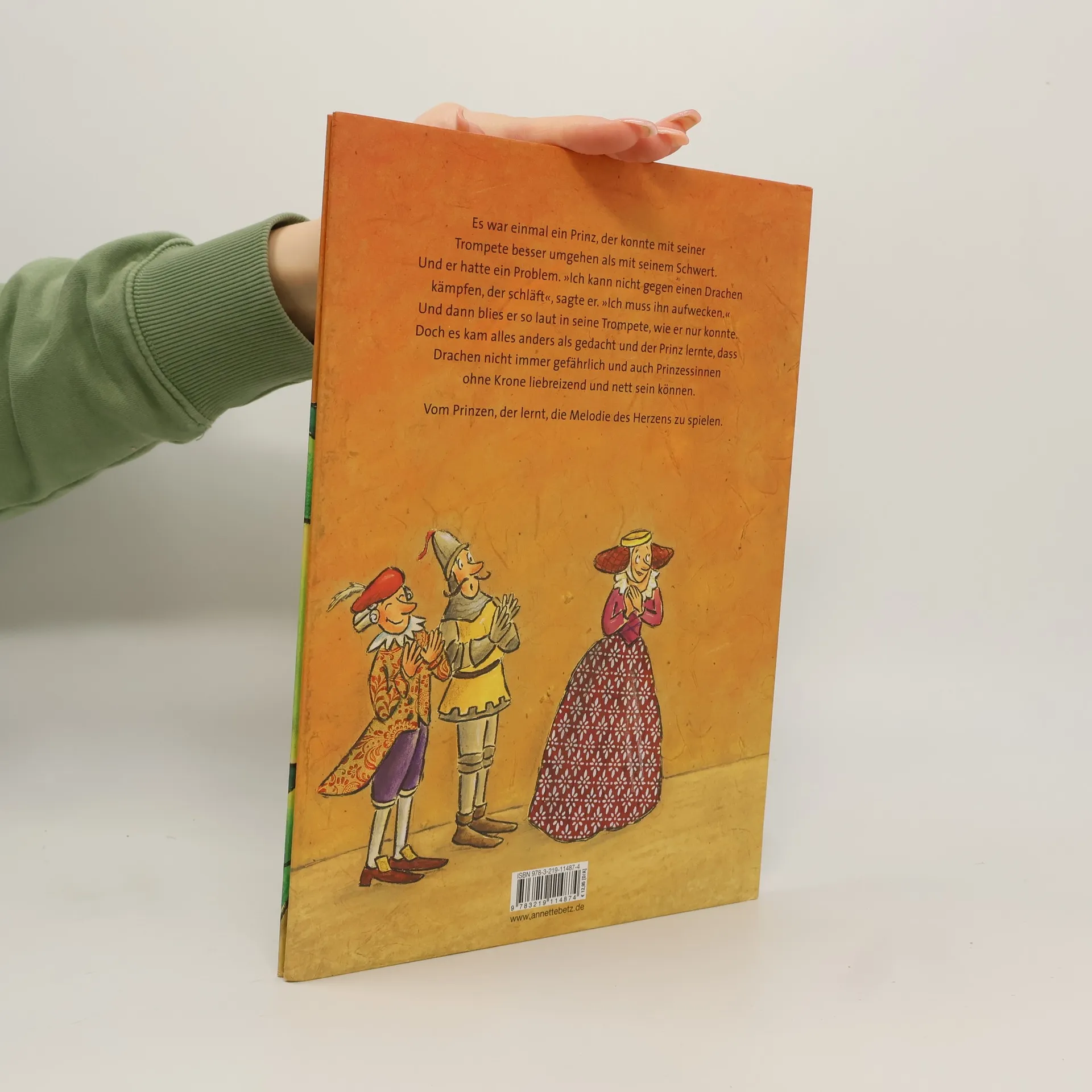 Es war einmal ein Prinz, der konnte mit seiner Trompete besser umgehen als mit seinem Schwert. Und er hatte ein Problem. 'Ich kann nicht gegen einen Drachen kämpfen, der schläft', sagte er. 'Ich muss ihn aufwecken.' Und dann blies er so laut in seine Trompete, wie er nur konnte. Doch es kam alles anders als gedacht und der Prinz lernte, dass Drachen nicht immer gefährlich und auch Prinzessinnen ohne Krone liebreizend und nett sein können. Vom Prinzen der lernt, die Melodie des Herzens zu spielen.