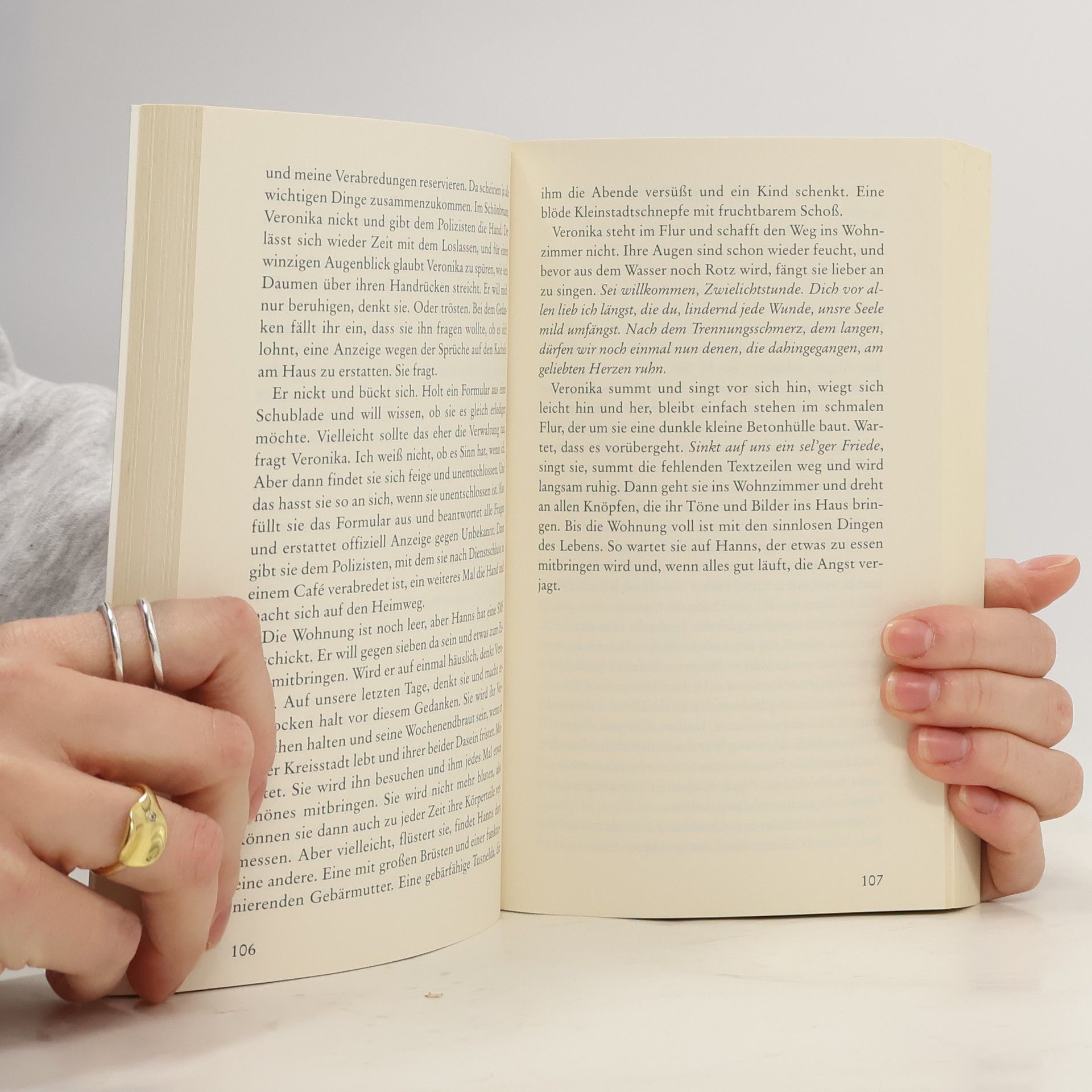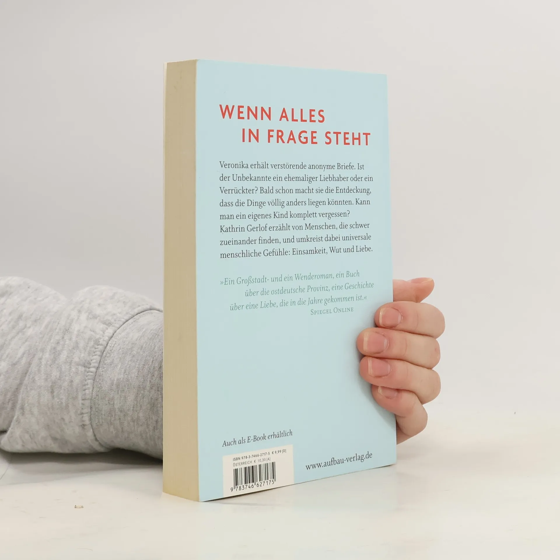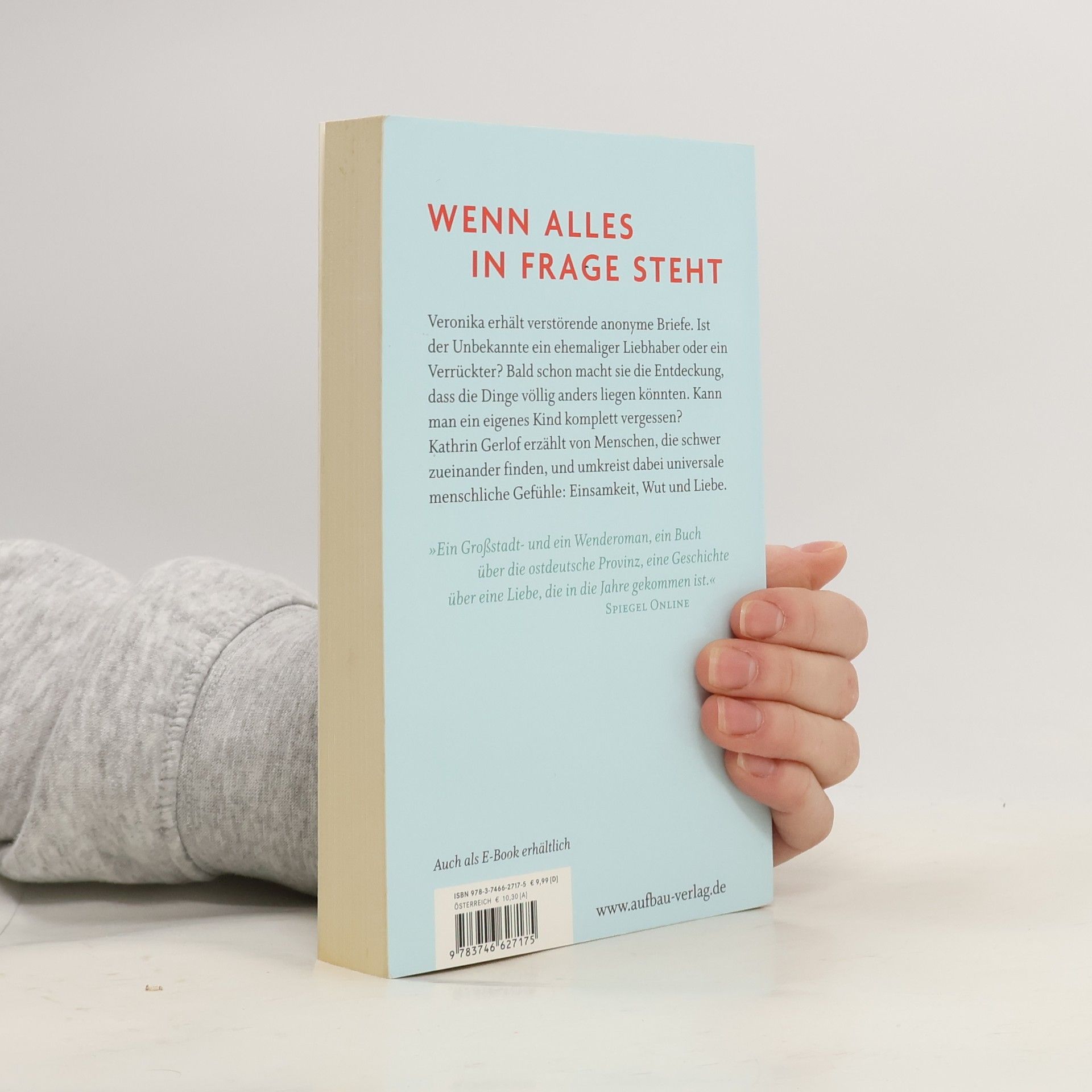 Wenn alles in Frage steht Veronika erhält anonyme Briefe. Ist es ein ehemaliger Liebhaber oder ein Verrück-ter, der ihr da schreibt? Bald schon macht sie die Entdeckung, dass die Dinge völlig anders liegen könnten. Kann man ein eigenes Kind wirklich komplett vergessen? Das langjährige Zusammenleben mit ihrem Mann Hanns steht jedenfalls vor gravie-renden Veränderungen, und das nicht nur, weil ihn seine wachsende Wut auf die Welt immer unberechenbarer werden lässt. Früher war er „Schlagzeilenkönig“, nun geht er an eine Provinzzeitung und lässt Veronika in Berlin zurück, gerade als der Briefschreiber sich immer mehr einmischt. Und dann gibt es da noch einen Mann, der mit Veronika glücklich sein möchte, auch wenn am Ende das Erwartete eine völlig unerwartete Wendung nimmt. »Ein Großstadt- und ein Wenderoman, ein Buch über die ostdeutsche Provinz, eine Geschichte über eine Liebe, die in die Jahre gekommen ist.« Spiegel Online »Eine Geschichte so spannend, dass man nicht davon lassen mag, so bewegend, dass sie einem lange im Kopf herumgeht« Neues Deutschland