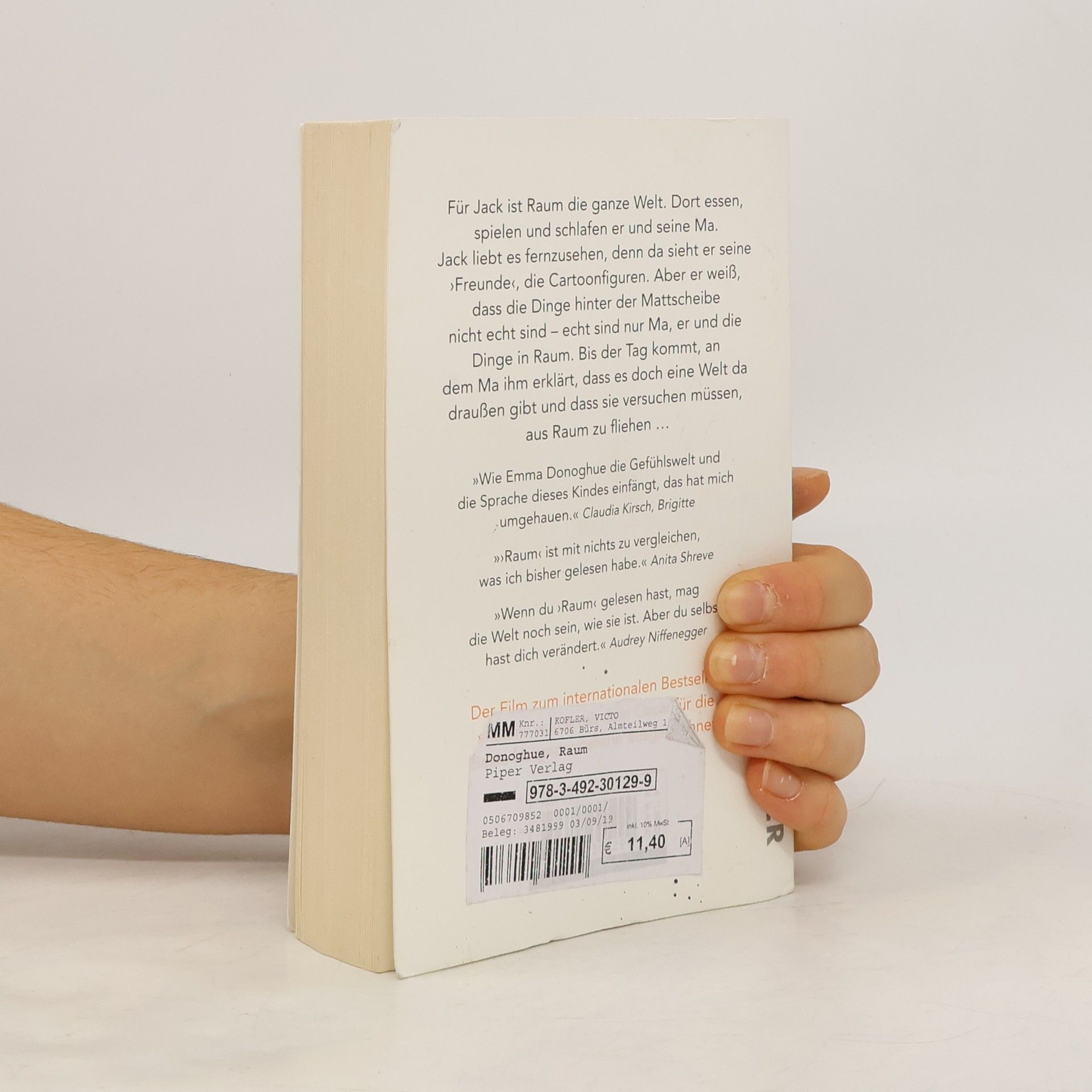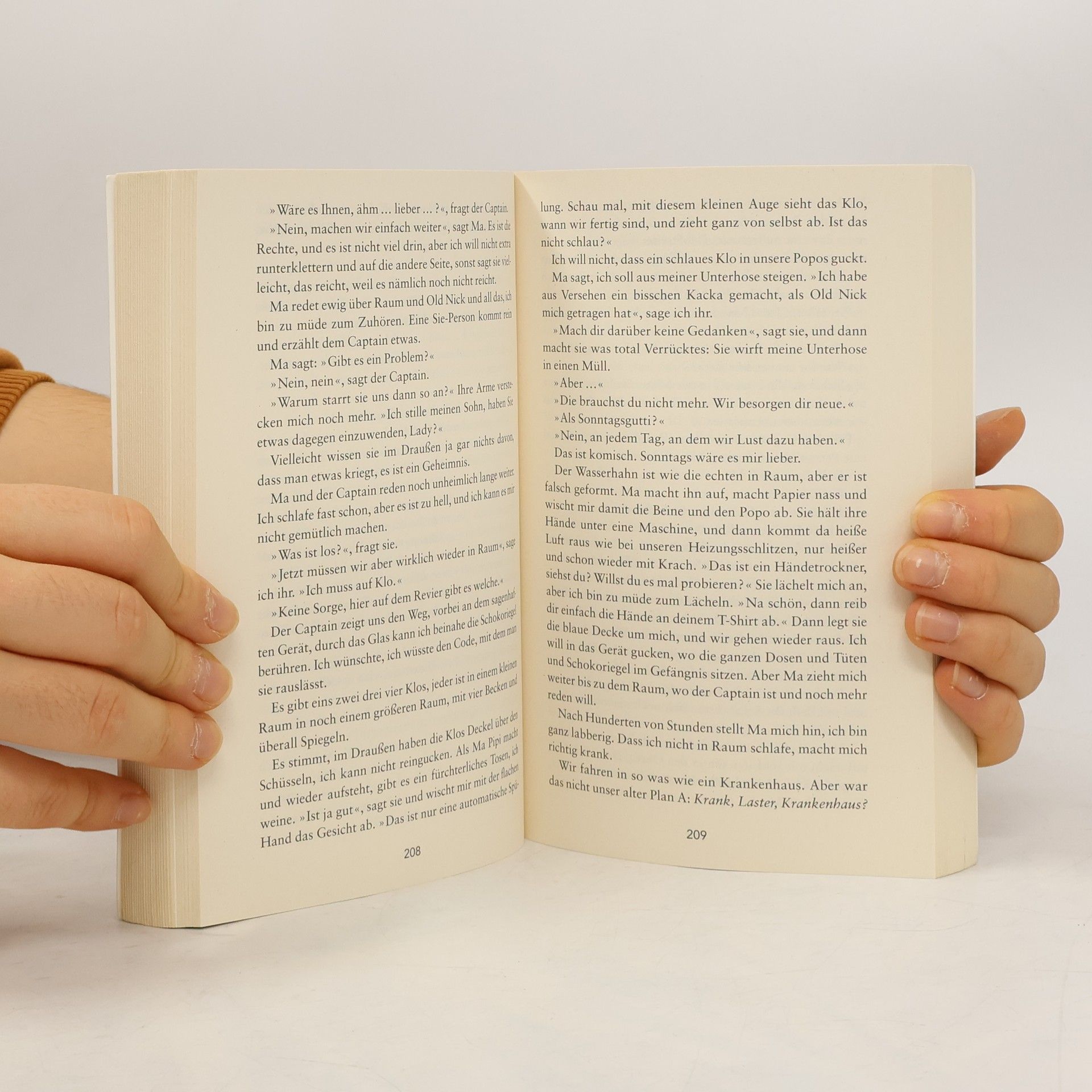 Für Jack ist Raum die ganze Welt. Dort essen, spielen und schlafen er und seine Ma. Jack liebt es fernzusehen, denn da sieht er seine »Freunde«, die Cartoonfiguren. Aber er weiß, dass die Dinge hinter der Mattscheibe nicht echt sind – echt sind nur Ma, er und die Dinge in Raum. Bis der Tag kommt, an dem Ma ihm erklärt, dass es noch eine Welt da draußen gibt und dass sie versuchen müssen, aus Raum zu fliehen …