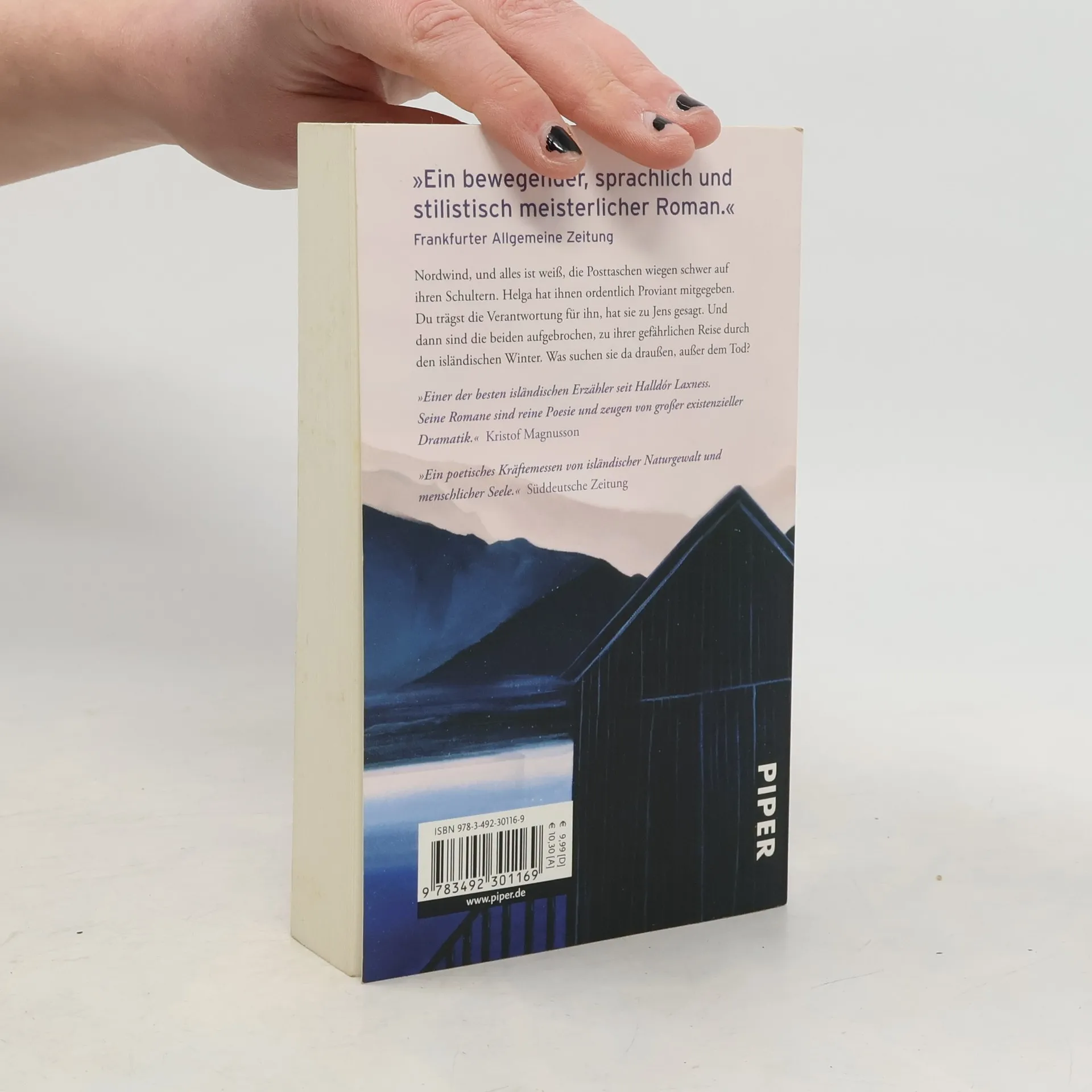 Nordwind, und alles ist weiß, die Posttaschen wiegen schwer auf ihren Schultern. Helga hat ihnen ordentlich Proviant mitgegeben. Du trägst die Verantwortung für ihn, hat sie zu Jens gesagt. Und dann sind die beiden aufgebrochen, zu ihrer gefährlichen Reise durch den isländischen Winter. Was suchen sie da draußen, außer dem Tod?