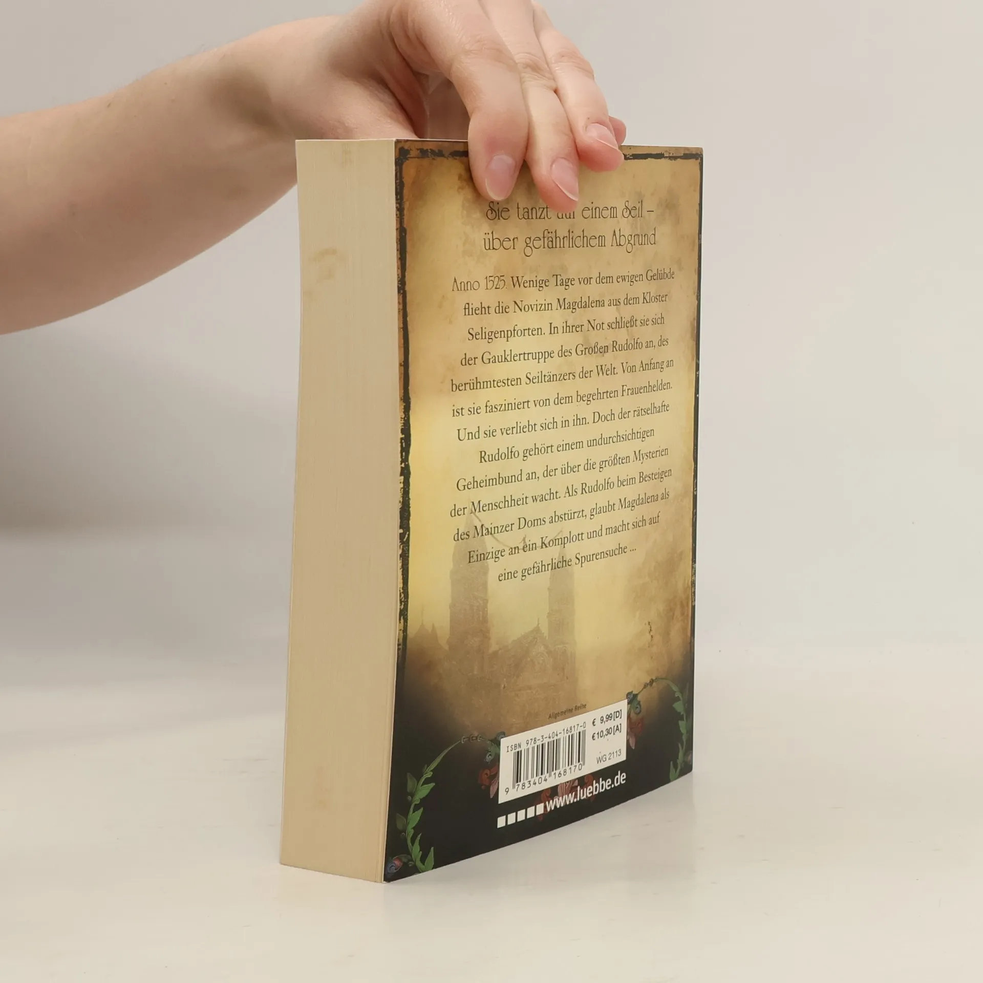 Anno 1525. Wenige Tage vor dem ewigen Gelübde flieht die Novizin Magdalena aus dem Kloster Seligenpforten. In ihrer Not schließt sie sich der Gauklertruppe des Großen Rudolfo an, des berühmtesten Seiltänzers der Welt. Von Anfang an ist sie fasziniert von dem begehrten Frauenhelden. Und sie verliebt sich in ihn. Doch der rätselhafte Rudolfo gehört einem undurchsichtigen Geheimbund an, der über die größten Mysterien der Menschheit wacht. Als Rudolfo beim Besteigen des Mainzer Doms abstürzt, glaubt Magdalena als Einzige an ein Komplott und macht sich auf eine gefährliche Spurensuche ...