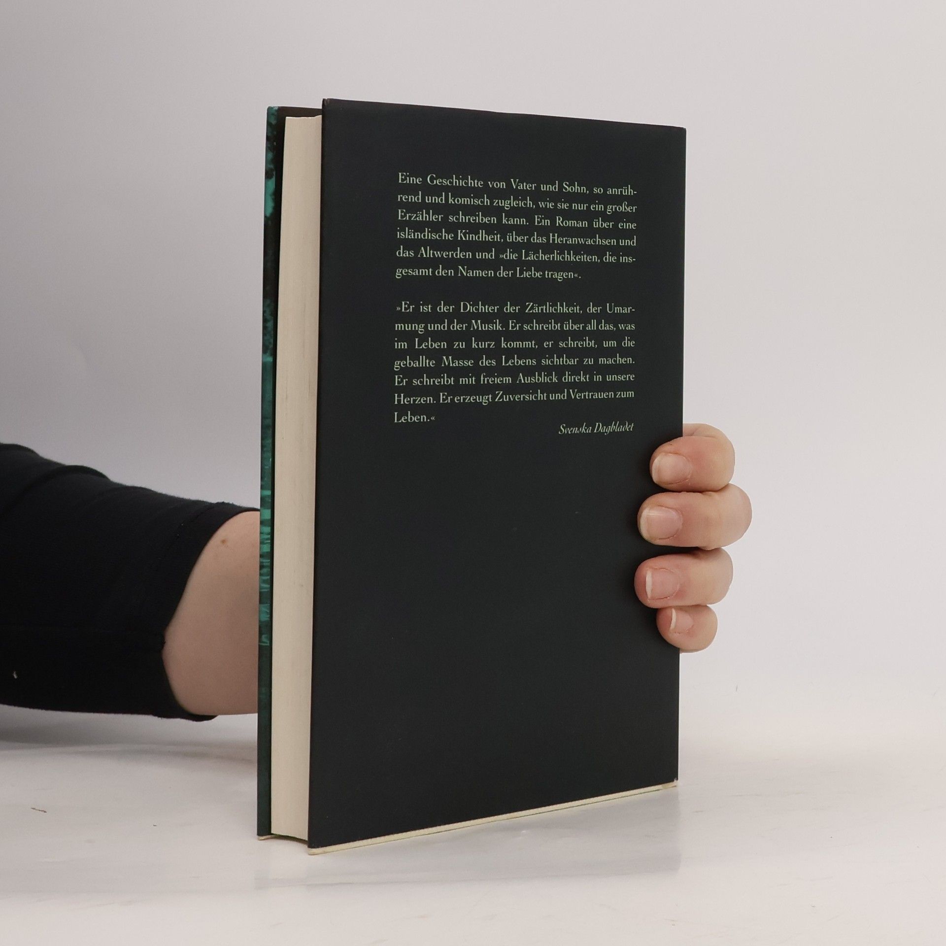 Als Hálldor den Vulkan Fretla besteigt, um die schöne Seismologin Lára zu interviewen, entsteht zwar kein brauchbares Interview, dafür wird auf einem Seehundsfell Pétur gezeugt. Lára verschwindet unmittelbar nach Péturs Geburt, und so übernimmt Hálldor die Mutterstelle. Ein Roman über eine isländische Kindheit, über das Heranwachsen und Älterwerden und »die Lächerlichkeiten, die insgesamt den Namen der Liebe tragen«. »Eine außergewöhnliche Vater-Sohn-Beziehung: dicht und sehr poetisch, mit einer schönen Spannung zwischen isländischer Sagenwelt und sehr normaler Gegenwart.« BRIGITTE