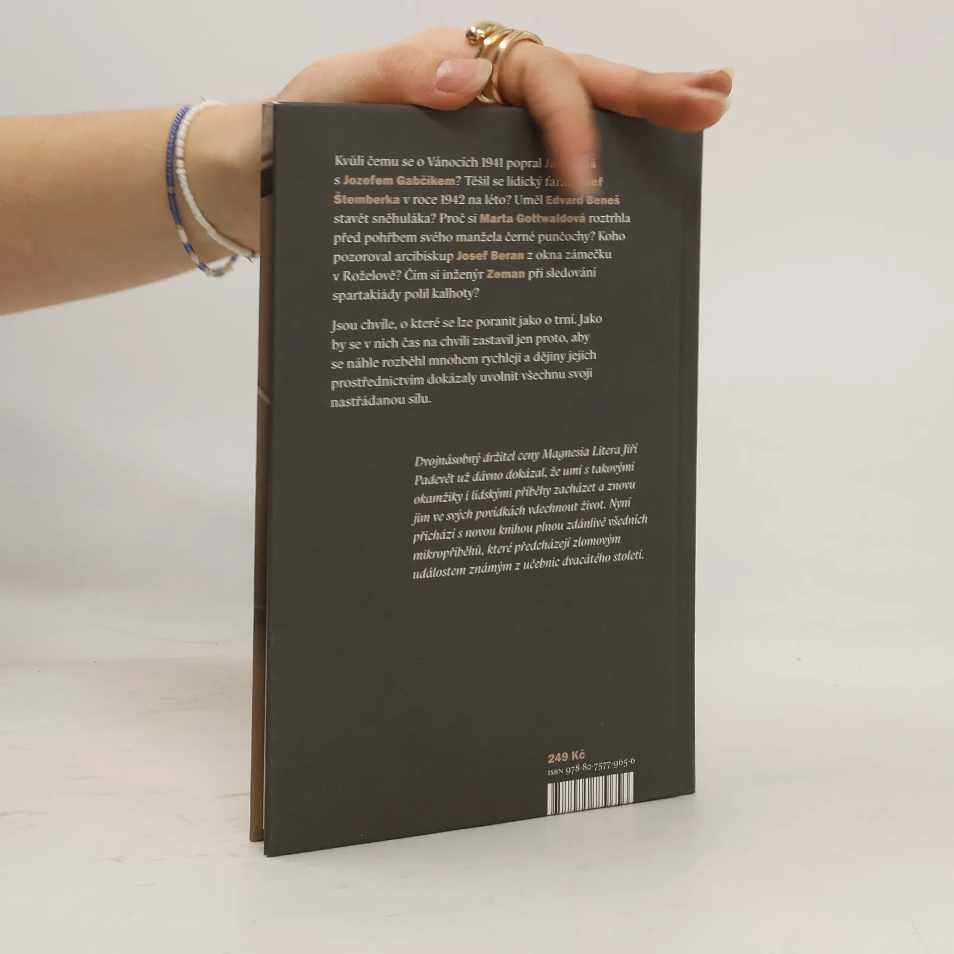 Okamžiky na první pohled banální, ale už na ten druhý osudové Jsou chvíle, o které se lze poranit jako o trní. Jako by se v nich čas na chvíli zastavil jen proto, aby se náhle rozběhl mnohem rychleji a dějiny jejich prostřednictvím dokázaly uvolnit všechnu svoji nastřádanou sílu. Hodnotit je a detailně zkoumat je však možné až s dostatečným odstupem. Někteří lidé se v nich ocitnou víceméně náhodou, jiní je sami vyhledávají. A někteří jejich síle podlehnou a jiní vytrvají. A my? Jak bychom se zachovali, kdybychom netušili, jak to všechno jednou skončí? Dvojnásobný držitel ceny Magnesia Litera Jiří Padevět už dávno dokázal, že umí s takovými okamžiky i lidskými příběhy zacházet a znovu jim ve svých črtách vdechnout život. Nyní přichází s novou knihou plnou zdánlivě všedních mikropříběhů, které předcházejí zlomovým událostem známým z učebnic dvacátého století. Tentokrát je popisuje především prostřednictvím originálních črt ze života obyčejných lidí, kterým dějiny daly velká jména.