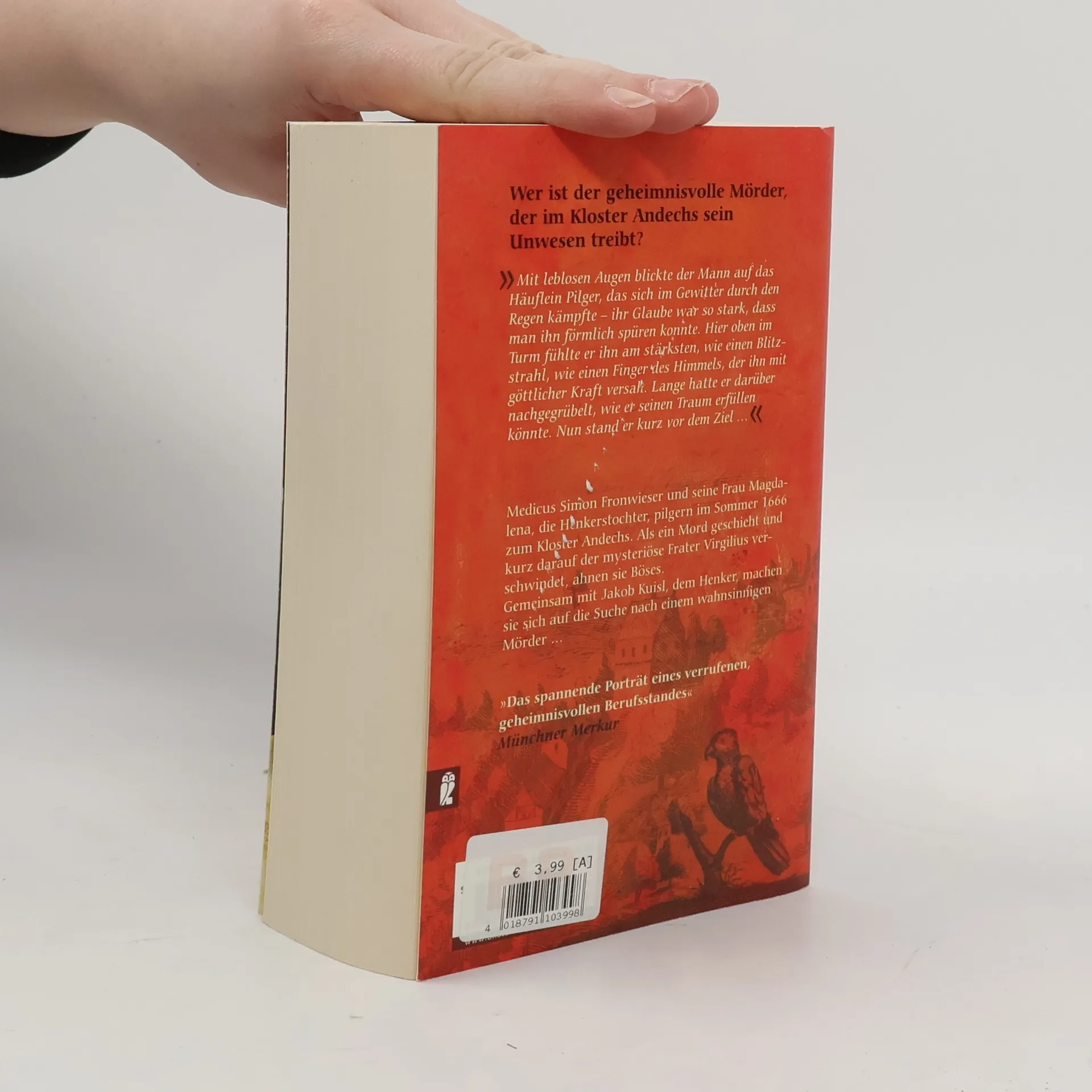 1666: Der Schongauer Medicus Simon und seine Frau Magdalena brechen zu einer Wallfahrt ins Kloster Andechs auf. Dort lernt Simon den mysteriösen Frater Virgilius kennen, der Uhrmacher und Erfinder ist. Simon ist fasziniert von den unheimlichen Automaten, die Virgilius erschaffen hat. Als der Frater verschwindet und sein Labor zerstört wird, ahnt Simon Böses und ruft Jakob Kuisl, den Schongauer Henker herbei. Gemeinsam machen sie sich auf die Suche – nach einem wahnsinnigen Mörder. »Die historisch authentischen Details bilden die Würze in seiner fantasiereich, aber stringent konstruierten Kriminalgeschichte.« Süddeutsche Zeitung Backlist: Die Henkerstochter Die Henkerstochter und der schwarze Mönch Die Henkerstochter und der König der Bettler