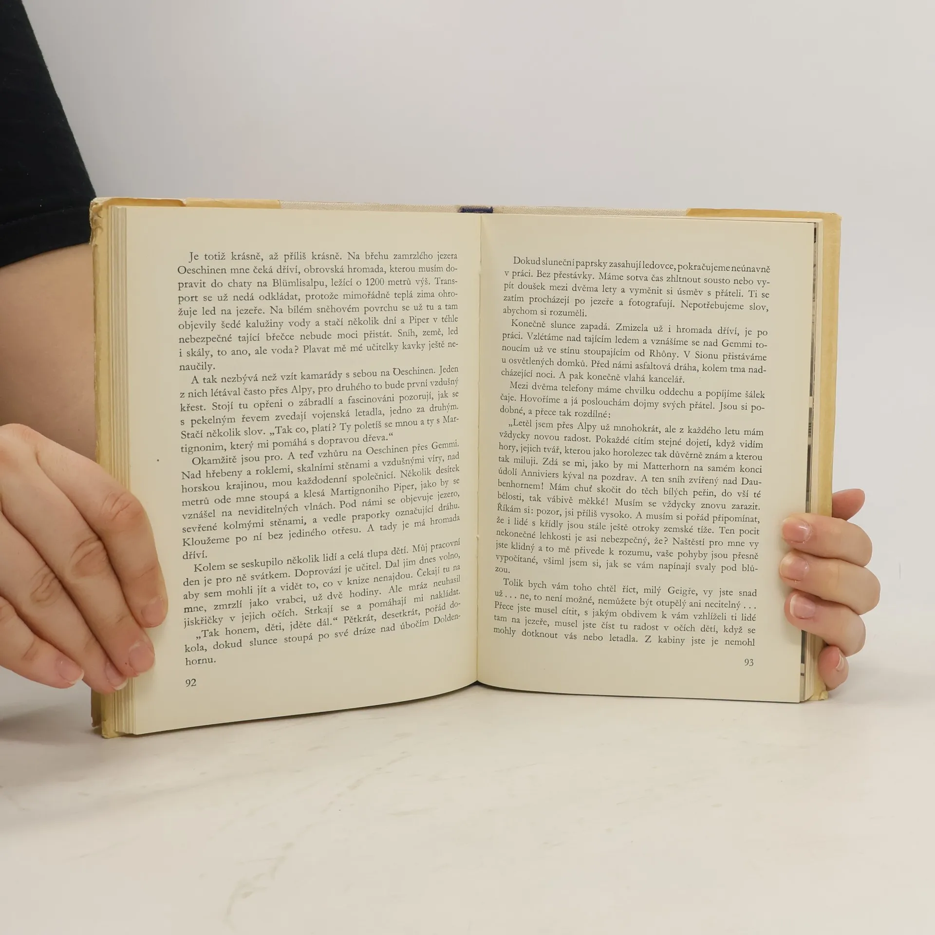 Kniha o švýcarském horském letci Hermannu Geigerovi se skládá ze dvou částí. V prvé líčí Geiger v prvé osobě odvážné a namáhavé činy, jimiž s nasazením vlastního života zachraňoval životy jiných a usnadňoval všem obyvatelům hor jejich těžký úděl. Ve druhé části opouští autor tuto formu podání, protože osou vyprávění je tu tragická srážka letounů 26.8.1966, jejíž obětí se Geiger stal. Výpověď o obětavé, nezištné a vytrvalé pomoci je přímým svědectvím možností lidského sebezapření, má silný morální akcent.