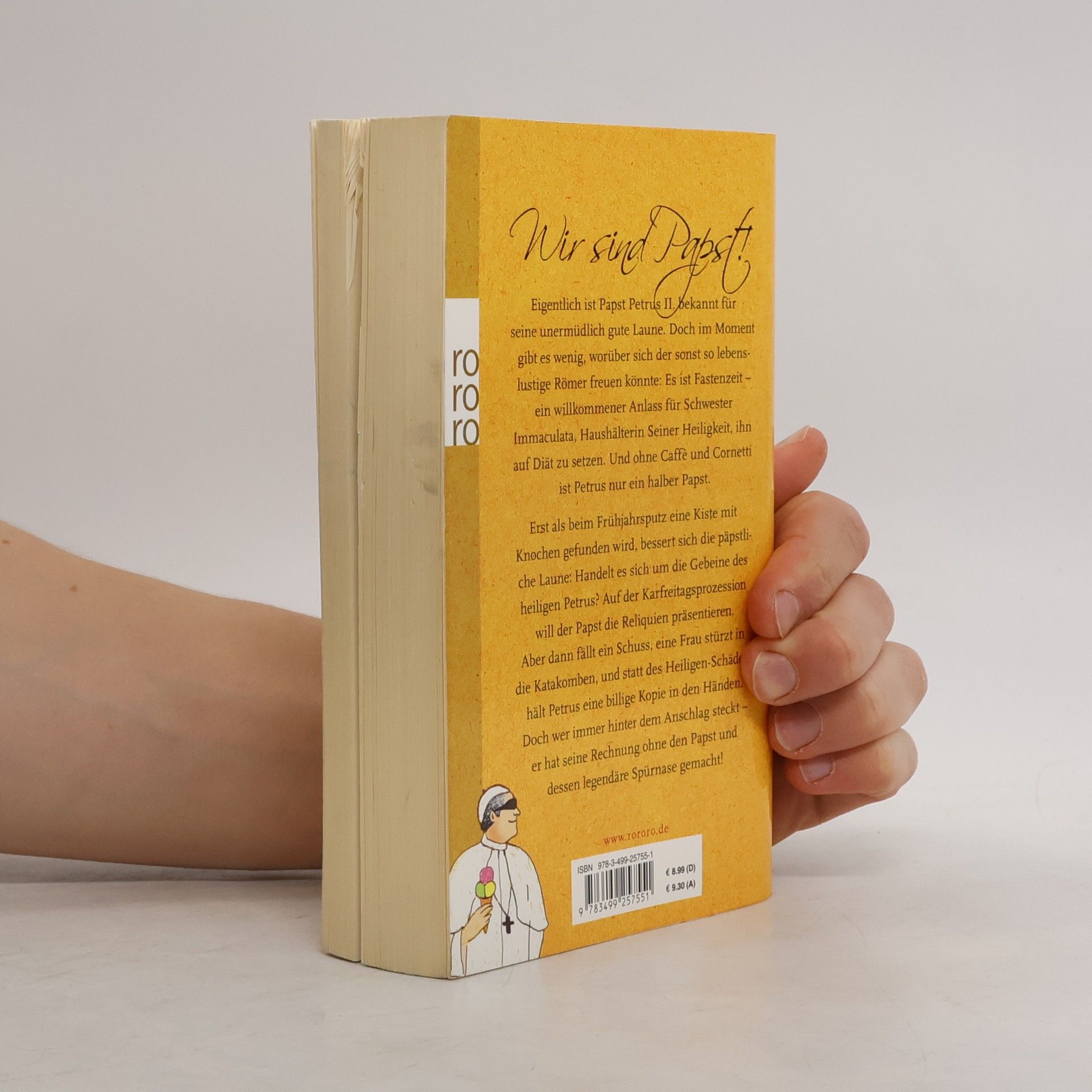 Ein Papst-Krimi Eigentlich ist Papst Petrus II. bekannt für seine unermüdlich gute Laune. Doch im Moment gibt es wenig, worüber sich der sonst so lebens-lustige Römer freuen könnte: Es ist Fastenzeit – ein willkommener Anlass für Schwester Immaculata, Haushälterin Seiner Heiligkeit, ihn auf Diät zu setzen. Und ohne Caffè und Cornetti ist Petrus nur ein halber Papst. Erst als beim Frühjahrsputz eine Kiste mit Knochen gefunden wird, bessert sich die päpstliche Laune: Handelt es sich um die Gebeine des heiligen Petrus? Auf der Karfreitagsprozession will der Papst die Reliquien präsentieren. Aber dann fällt ein Schuss, eine Frau stürzt in die Katakomben, und statt des Heiligen-Schädels hält Petrus eine billige Kopie in den Händen. Doch wer immer hinter dem Anschlag steckt – er hat seine Rechnung ohne den Papst und dessen legendäre Spürnase gemacht!