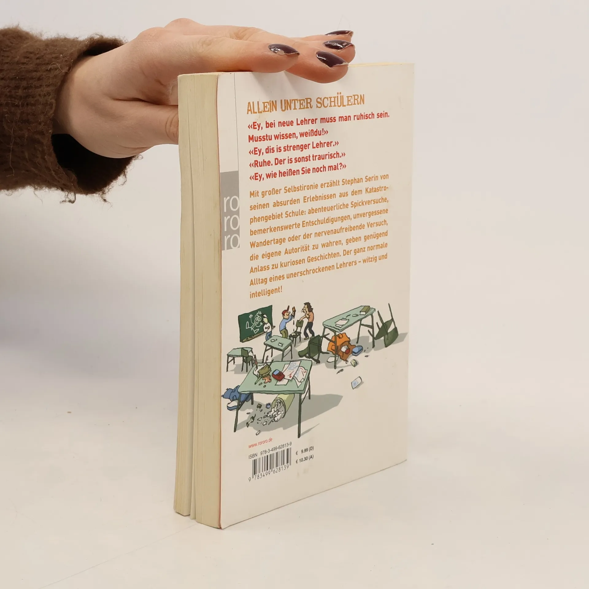 ALLEIN UNTER SCHÜLERN«Ey, bei neue Lehrer muss man ruhisch sein. Musstu wissen, weißdu!»«Ey, dis is strenger Lehrer.»«Ruhe. Der is sonst traurisch.»«Ey, wie heißen Sie noch mal?» Mit großer Selbstironie erzählt Stephan Serin von seinen absurden Erlebnissen aus dem Katastrophengebiet Schule: abenteuerliche Spickversuche, bemerkenswerte Entschuldigungen, unvergessene Wandertage oder der nervenaufreibende Versuch, die eigene Autorität zu wahren, geben genügend Anlass zu kuriosen Geschichten. Der ganz normale Alltag eines unerschrockenen Lehrers – witzig und intelligent!